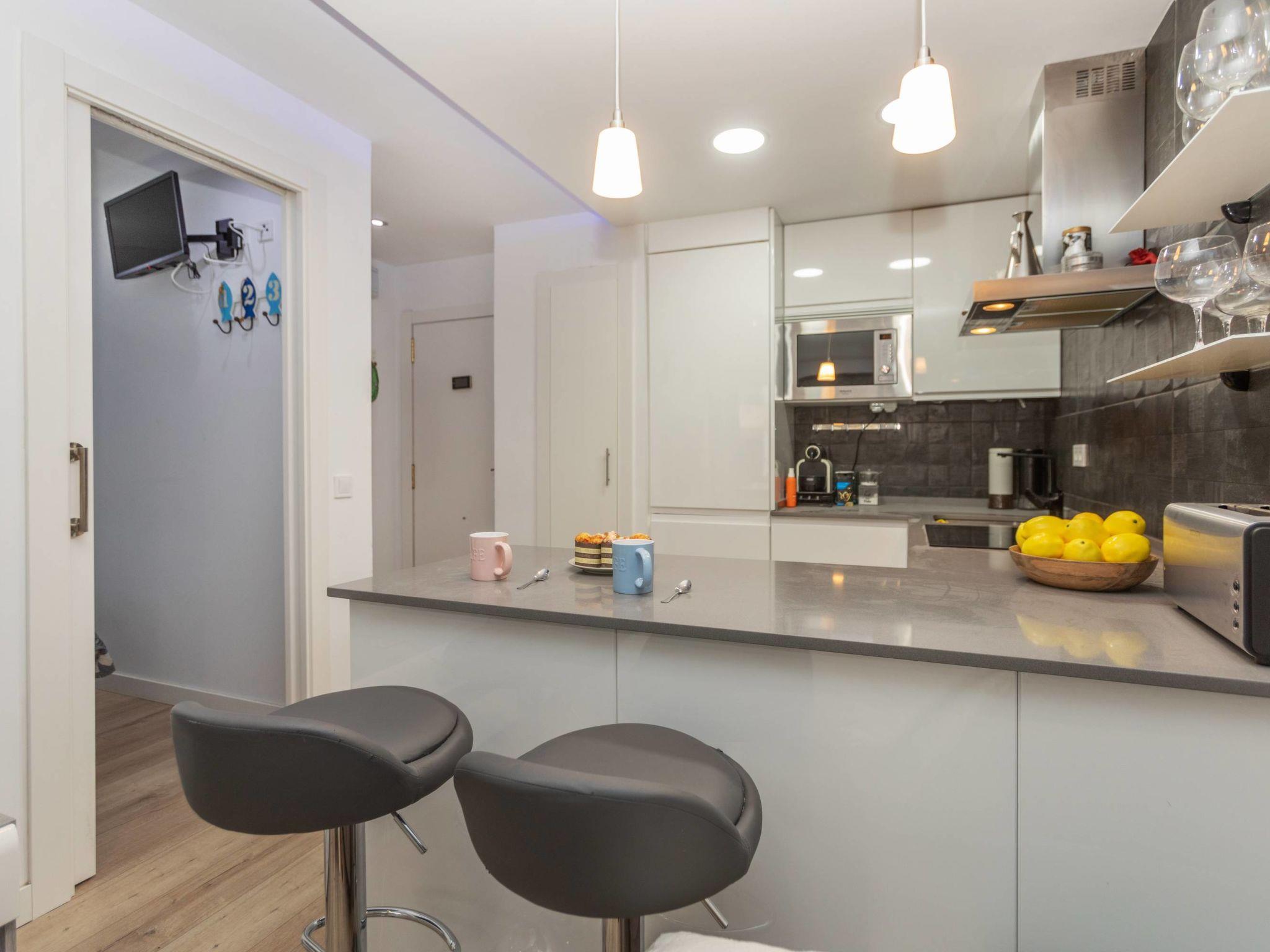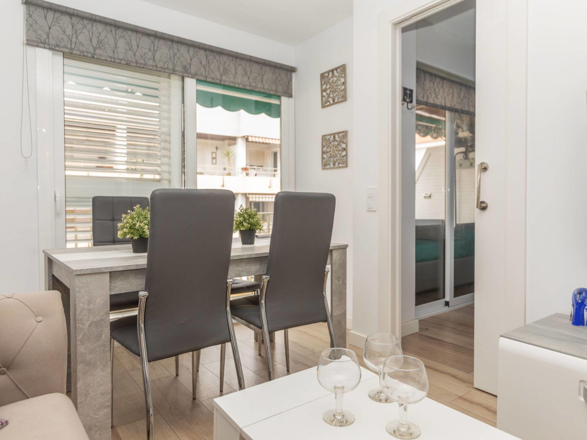 "Leon", 3-room apartment 45 m2. Very comfortable and modern furnishings: living/dining room with dining table, digital TV and air conditioning. Exit to the terrace. 2 double bedrooms, each room with 1 french bed (135 cm, length 190 cm). Open kitchen (oven, dishwasher, 3 ceramic glass hob hotplates, toaster, kettle, microwave, freezer, electric coffee machine). Shower/WC. Terrace furniture. View of the resort. Facilities: washing machine, iron. Internet (WiFi, free). Please note: TV only ES. HUTG-050440-46 // Reg. Nr.: ESFCTU00001701300037352400000000000000HUTG-050440-463