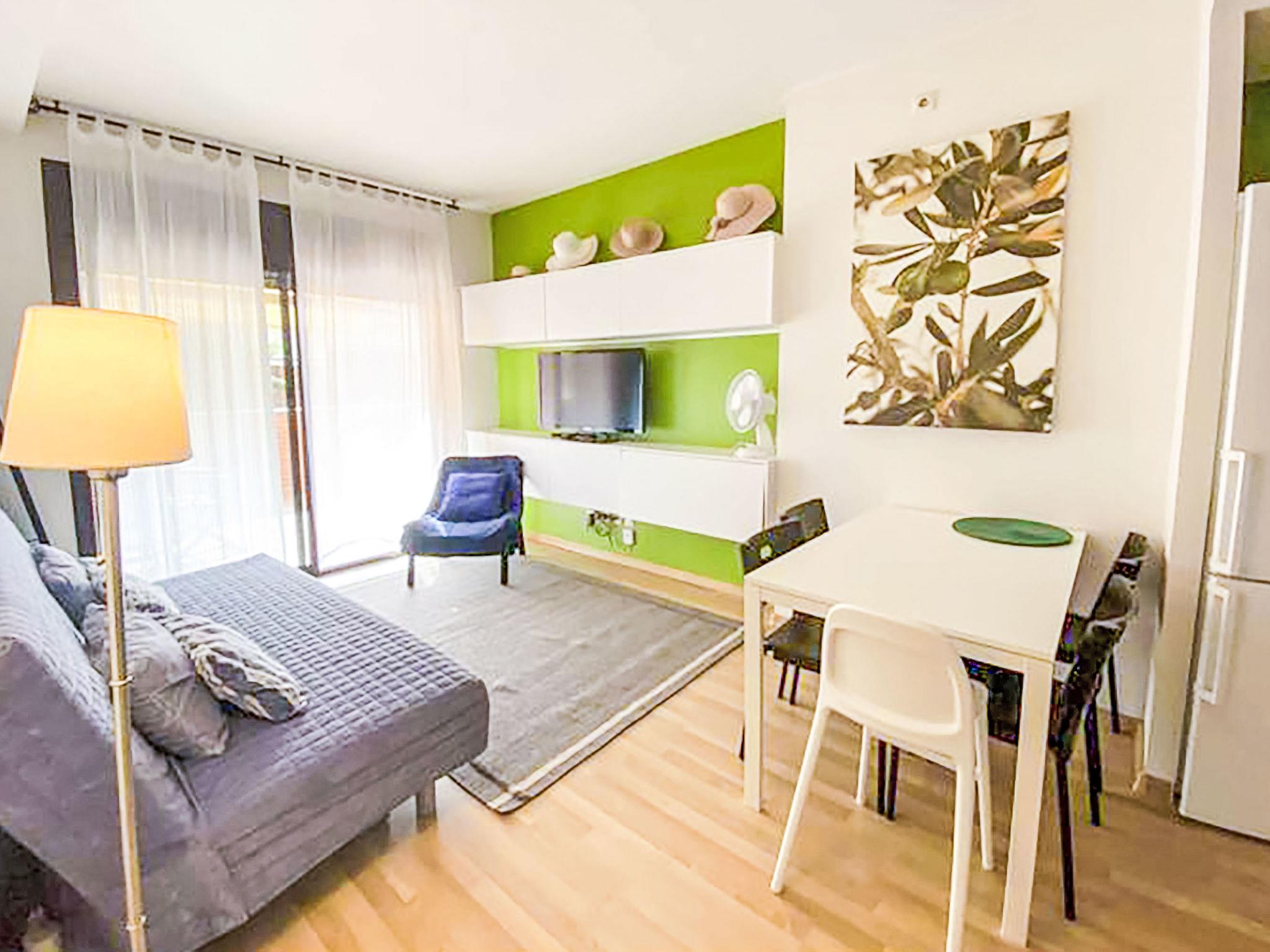 "Enola", 2-room apartment 37 m2, on the upper ground floor. Very practical and cosy furnishings: living/dining room with 1 double sofabed (135 cm, length 190 cm), dining table. Exit to the terrace. 1 double bedroom with 1 french bed (135 cm, length 190 cm). Kitchenette (oven, dishwasher, 4 ceramic glass hob hotplates, toaster, kettle, microwave, freezer, electric coffee machine) with dining table and air conditioning. Bath/WC. Air-conditioning, forced-air heating. Terrace furniture. View of the garden, the resort and the forest. Facilities: washing machine, iron, hair dryer. Internet (WiFi, free). HUTG-024602 // Reg. Nr.: ESFCTU00001701300000675000000000000000HUTG-024602-763