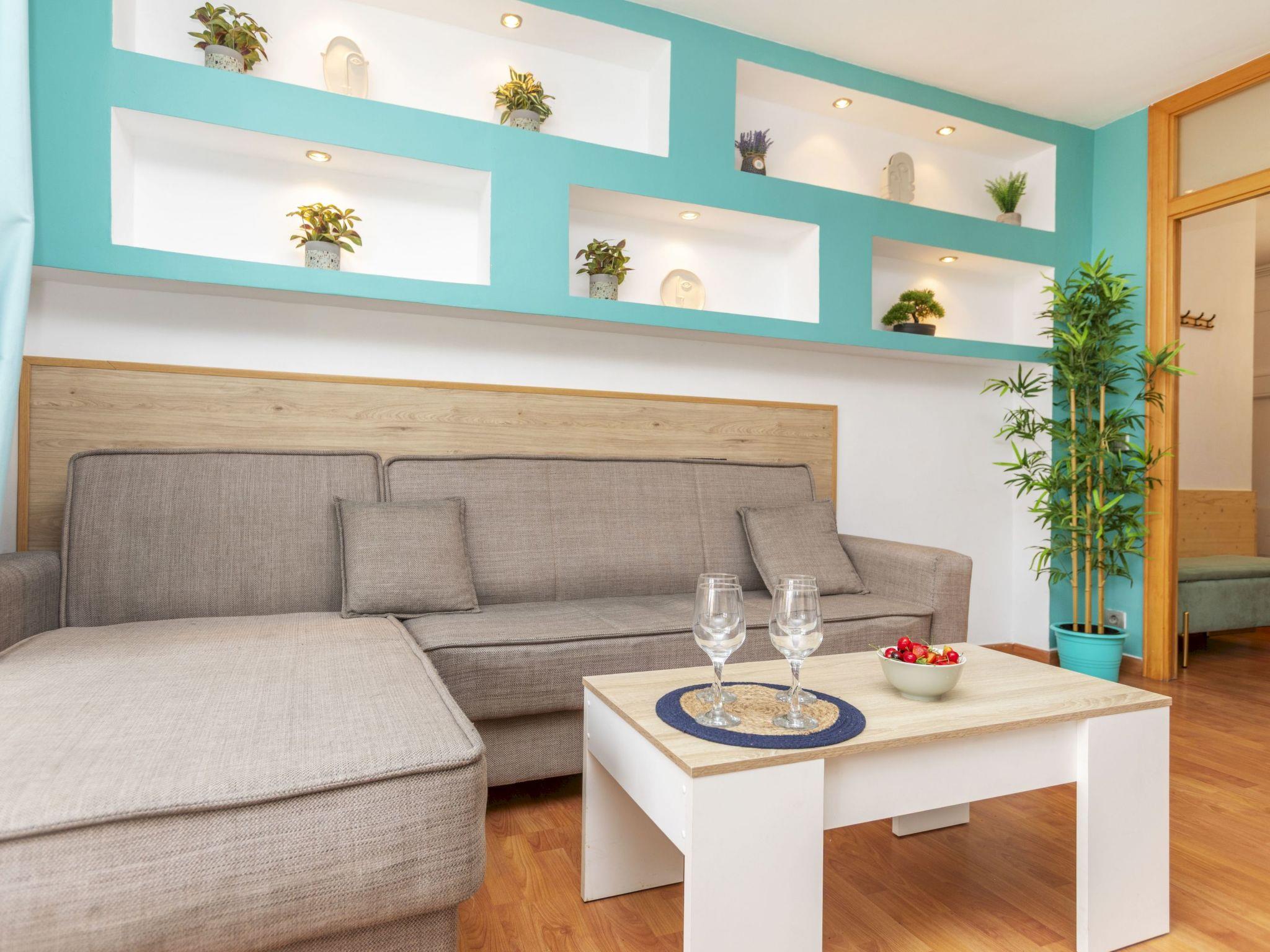"Rioplata", 4-room apartment 112 m2. Living/dining room with dining table and digital TV. Exit to the balcony. 2 double bedrooms, each room with 2 french beds (135 cm, length 190 cm). 1 double bedroom with 2 beds (90 cm, length 190 cm). Kitchen (oven, dishwasher, 4 ceramic glass hob hotplates, toaster, kettle, microwave, electric coffee machine). 2 showers/WC. Air-conditioning, forced-air heating. Balcony furniture. View of the resort. Facilities: washing machine, iron, hair dryer. Internet (WiFi, free). Please note: TV only ES. HUTG-025337 // Reg. Nr.: ESFCTU00001701300036307500000000000000HUTG-025337-673