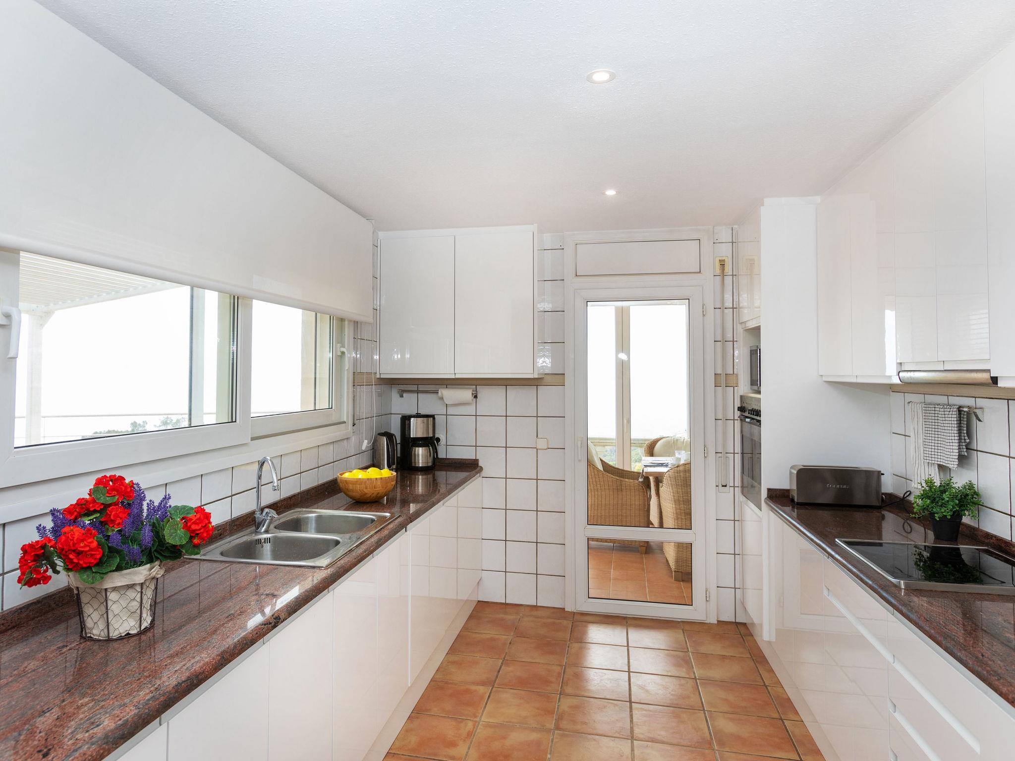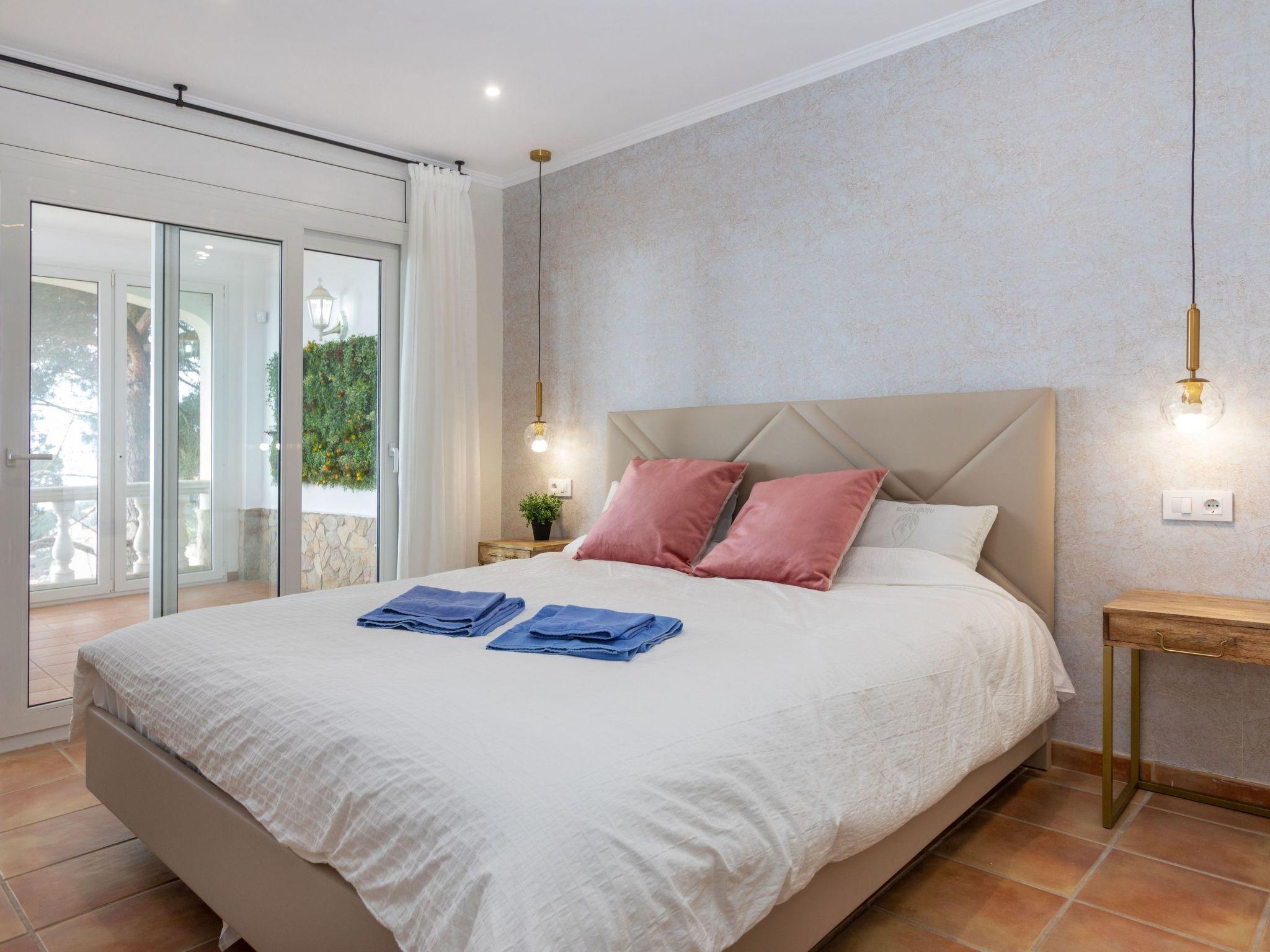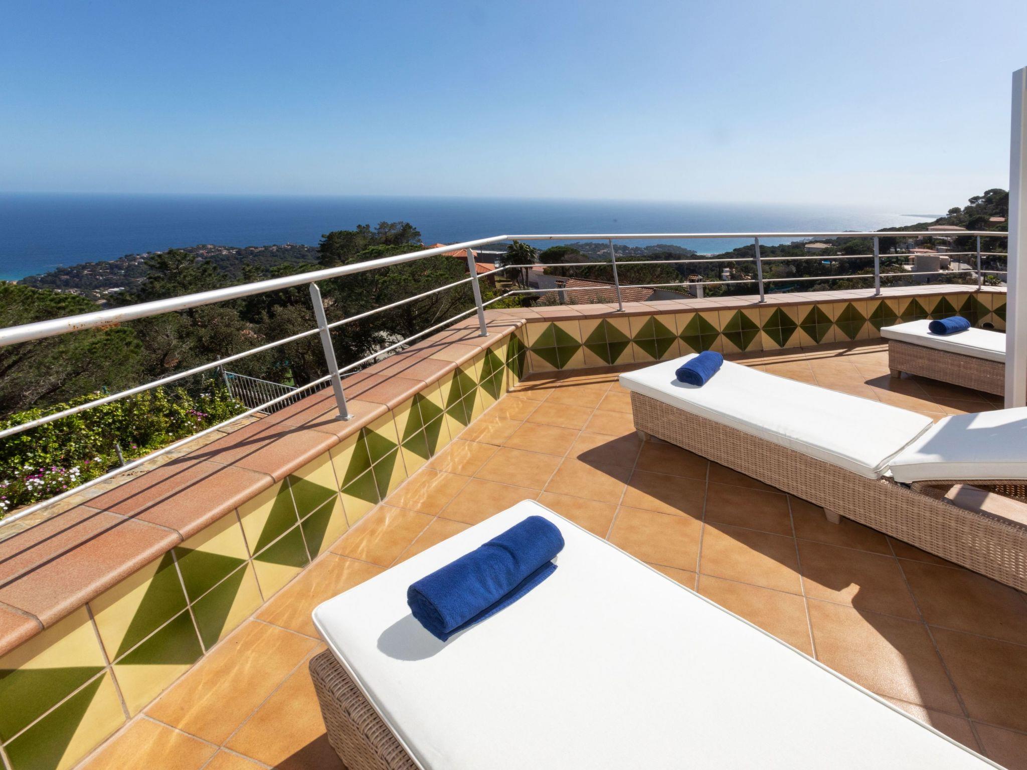 "Panorama", 9-room villa 400 m2. Spacious and bright, partly renovated in 2023, very comfortable and cosy furnishings: living/dining room with dining table, digital TV and international TV channels. Exit to the patio. 1 double bedroom with 1 french bed (150 cm, length 190 cm). Exit to the terrace. 1 double bedroom with 1 french bed (150 cm, length 190 cm). 1 double bedroom with 1 french bed (180 cm, length 200 cm), bath/shower/bidet/WC. Dining room with winter garden. Open kitchen (oven, dishwasher, 4 ceramic glass hob hotplates, toaster, kettle, microwave, freezer, electric coffee machine). Exit to the terrace. Shower/WC. On the lower ground floor: living/dining room with dining table. Exit to the patio, to the swimming pool. 2 double bedrooms, each room with 1 french bed (180 cm, length 200 cm). Exit to the terrace. 1 children's room with 1 x 2 bunk beds (90 cm, length 190 cm). Open kitchen in the entrance (oven, dishwasher, 4 ceramic glass hob hotplates, toaster, kettle, microwave, freezer, electric coffee machine). 2 showers/WC. Terrace furniture, deck chairs. Panoramic view of the sea. Facilities: washing machine, iron, children's high chair, baby cot for up to 2 year olds, hair dryer. Internet (WiFi, free). Parking, garage at the house. Please note: TV only ES, FR, DE. HUTG-018554 // Reg. Nr.: ESFCTU00001701300055796200000000000000HUTG-018554-922