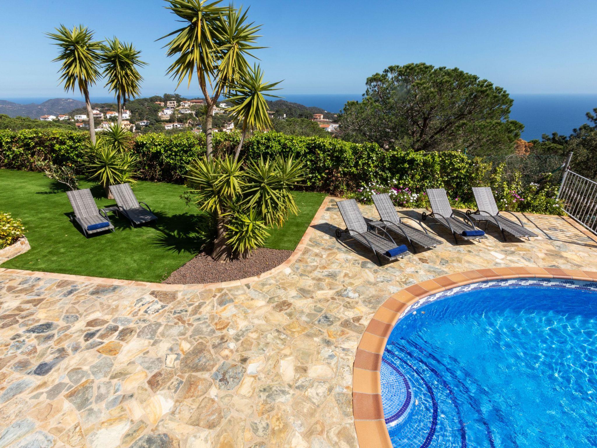 Very comfortable, luxurious villa "Panorama", 2 storeys. In the district of Serra Brava 4 km from the centre of Lloret de mar, 3 km from the sea, 3 km from the beach, south facing position. Private: beautiful terraced garden with wildlife garden and trees, swimming pool kidney shaped (7 x 4 m, depth 80 - 150 cm, seasonal availability: 01.Apr. - 20.Oct.). Outdoor shower, garden furniture, barbecue, pool maintenance by the owner/gardener. In the house: central heating system. Single garage at the house. Grocery 900 m, supermarket 4.7 km, restaurant 3.6 km, bakery 900 m, bus stop 2 km, pebble beach "Platja de Canyelles" 3.6 km. Sports harbour 3.6 km. Nearby attractions: Tossa de mar 9 km, Waterworld 7 km, Marinland 15 km, Girona 47 km, Barcelona 80 km. Please note: car recommended. The owner does not accept any groups. The owner does not accept any youth groups. Neighbourhood highly sensitive to noise. Quietness and good behaviour expected.