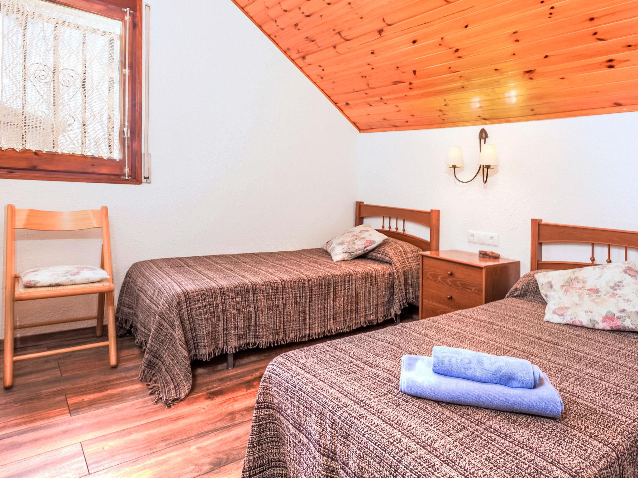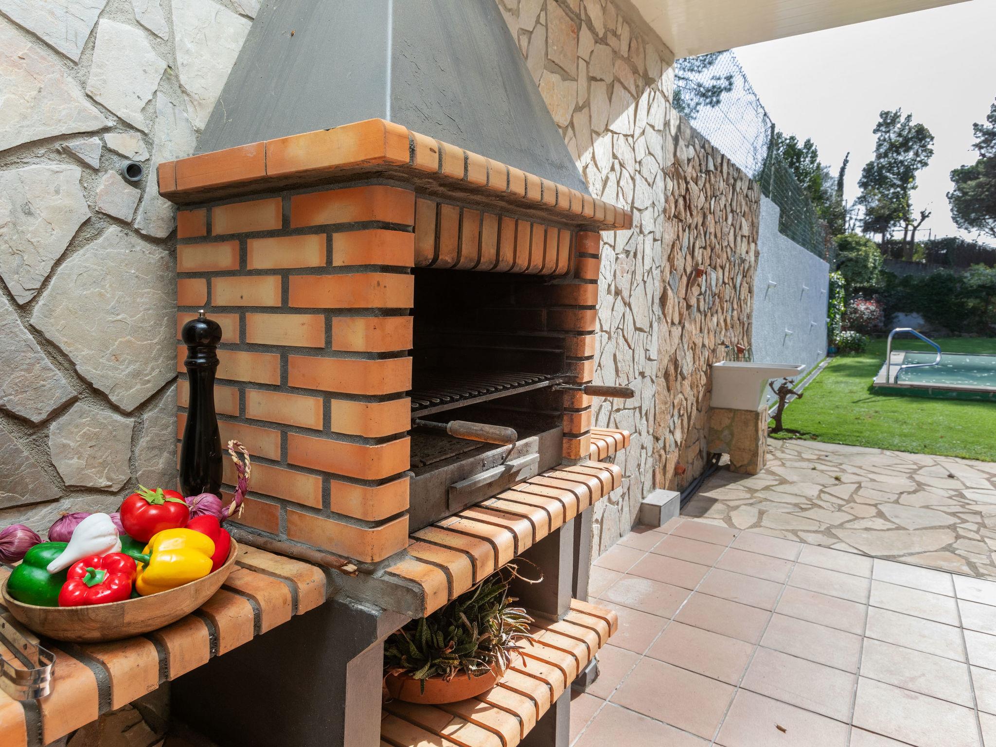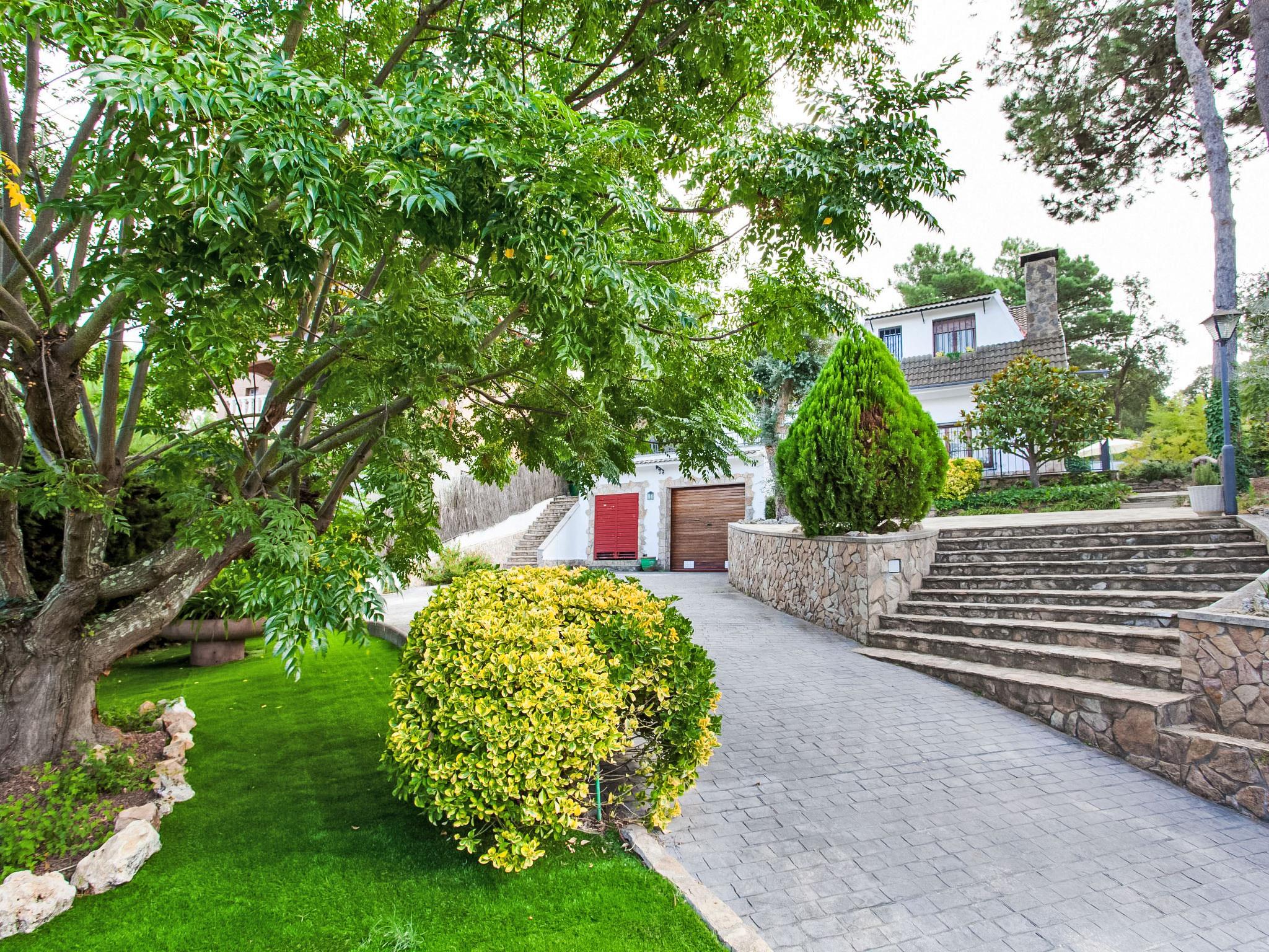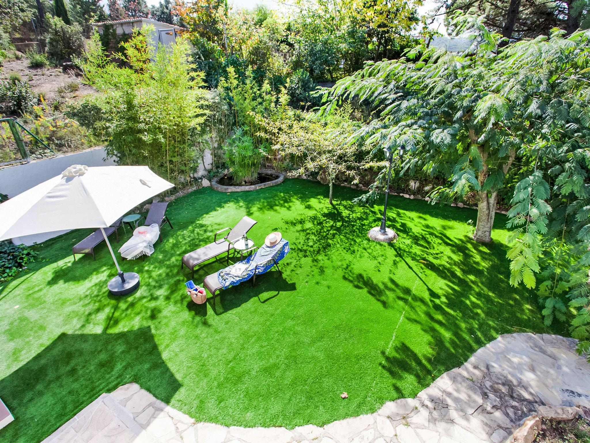 Urb. Puigventós: 10 km from Playa de Lloret de Mar: Large, cosy, rustic hillside complex "Paradis", 2 storeys, surrounded by trees. Outside the resort, 10 km from the centre of Lloret de Mar, in the district Urbanizacion Puigventos, in a quiet, sunny position, 10 km from the sea, located by a road, south facing position. For shared use: swimming pool fenced (depth 50 - 200 cm, seasonal availability: 15.May. - 15.Oct.). Tennis (extra), basketball (extra), children's playground. Private: garden 1'200 m2 (fenced) with lawn and wildlife garden, swimming pool angular (7 x 3 m, depth 200 cm, seasonal availability: 01.May. - 20.Oct.) with internal staircase and salt-electrolysis pool-cleaning system. Outdoor shower, pool house with fridge, table tennis, patio, arbour, pergola, garden furniture, barbecue. In the house: playroom. Parking (for 2 cars) at the house on the premises. Grocery 6.9 km, supermarket 6.9 km, shopping centre 9 km, sandy beach 10 km, outdoor swimming pool 500 m. Tennis 500 m. Nearby attractions: water world 7.5 km, marineland 17.5 km, gnomo park 10.5 km. Hiking paths: cami de ronda GR-92 14.4 km. Please note: car recommended. Suitable for families. Groups of teenagers on request only. Neighbourhood highly sensitive to noise. Quietness and good behaviour expected.