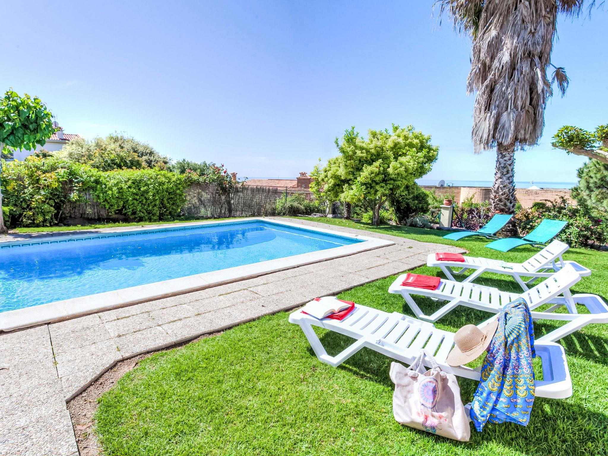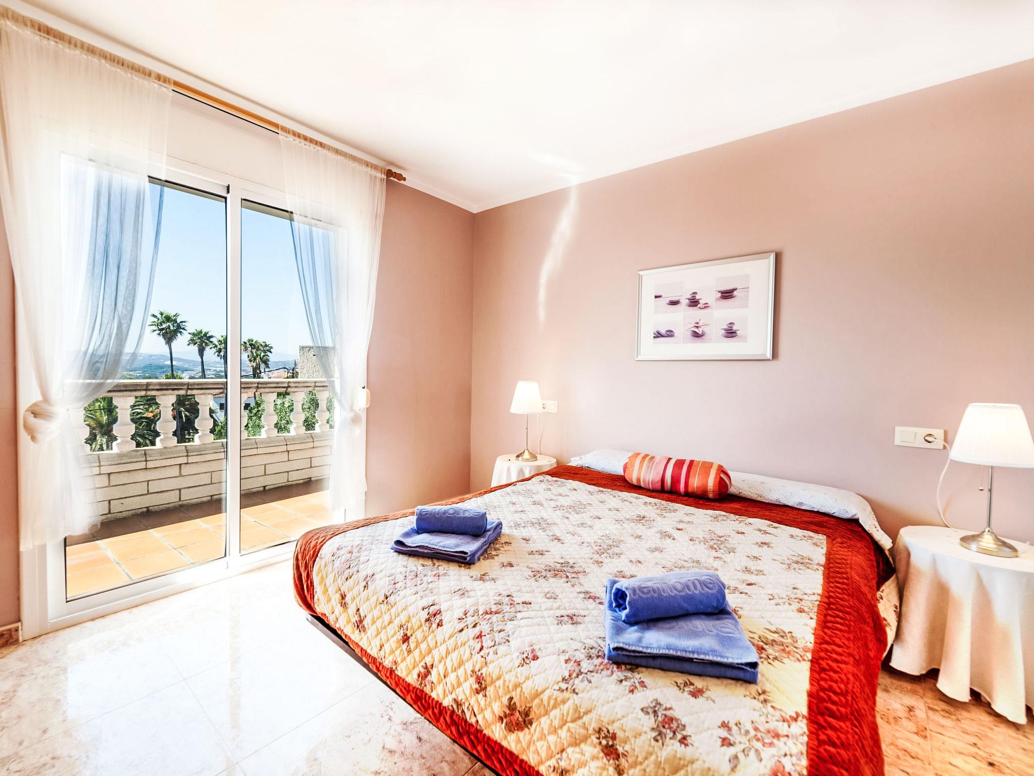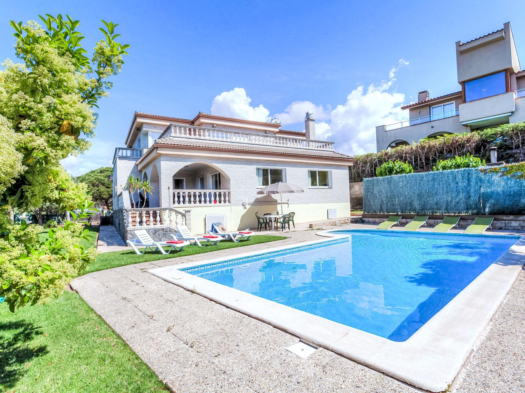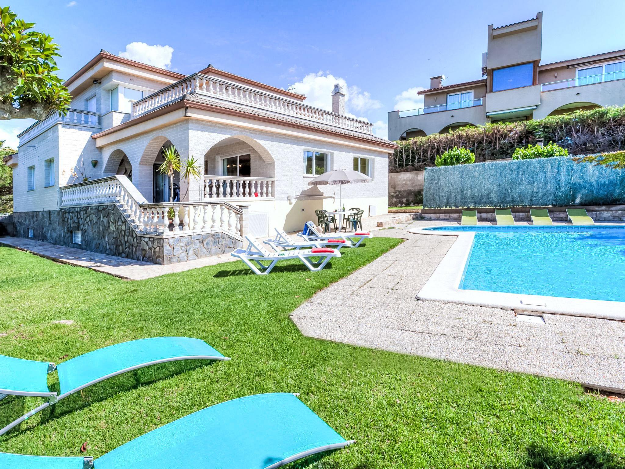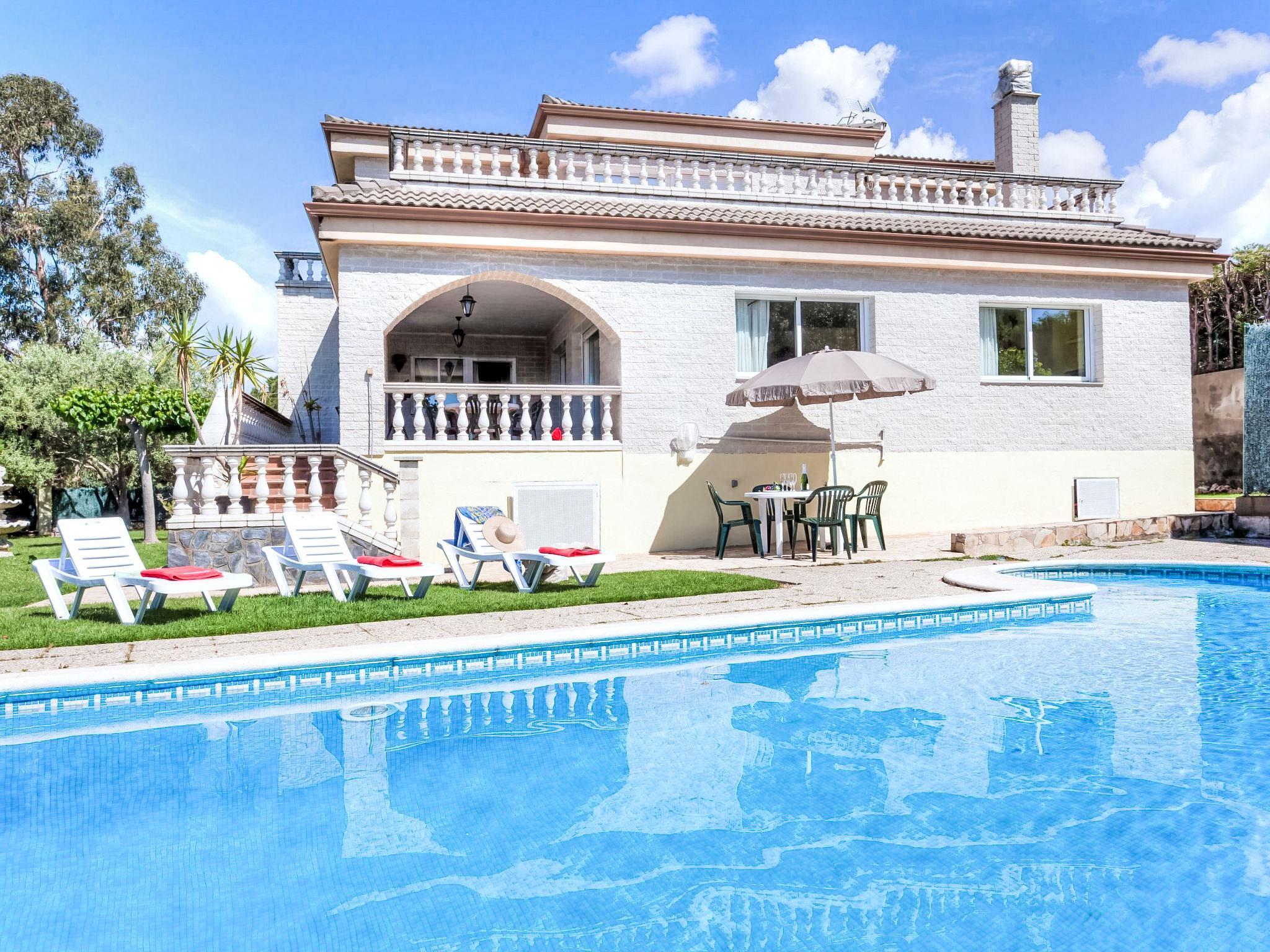 Montgoda 2 km from Lloret de Mar: Very beautiful, cosy villa "Macedonia", 2 storeys. In the resort 2 km from the centre of Lloret de Mar, in a sunny position, 500 m from the sea, 2.5 km from the beach. Private: lawn, beautiful garden to relax, swimming pool angular (8 x 4 m, seasonal availability: 01.Jun. - 17.Oct.) with internal staircase. Outdoor shower, pergola, garden furniture, barbecue, pool maintenance by the owner/gardener. In the house: washing machine. Parking at the house, public parking on the road. Shop 2 km, supermarket 2 km, restaurant 2 km, bakery 2 km, bus stop 2 km. Sports harbour 2 km, golf course (18 hole) 8 km, minigolf 2 km. Nearby attractions: Waterworld Lloret de mar 6 km, Pueblo medieval de tossa de mar 9 km, Marinland blanes 12 km. Please note: car recommended. Guarded residence. Neighbourhood highly sensitive to noise. Quietness and good behaviour expected.
