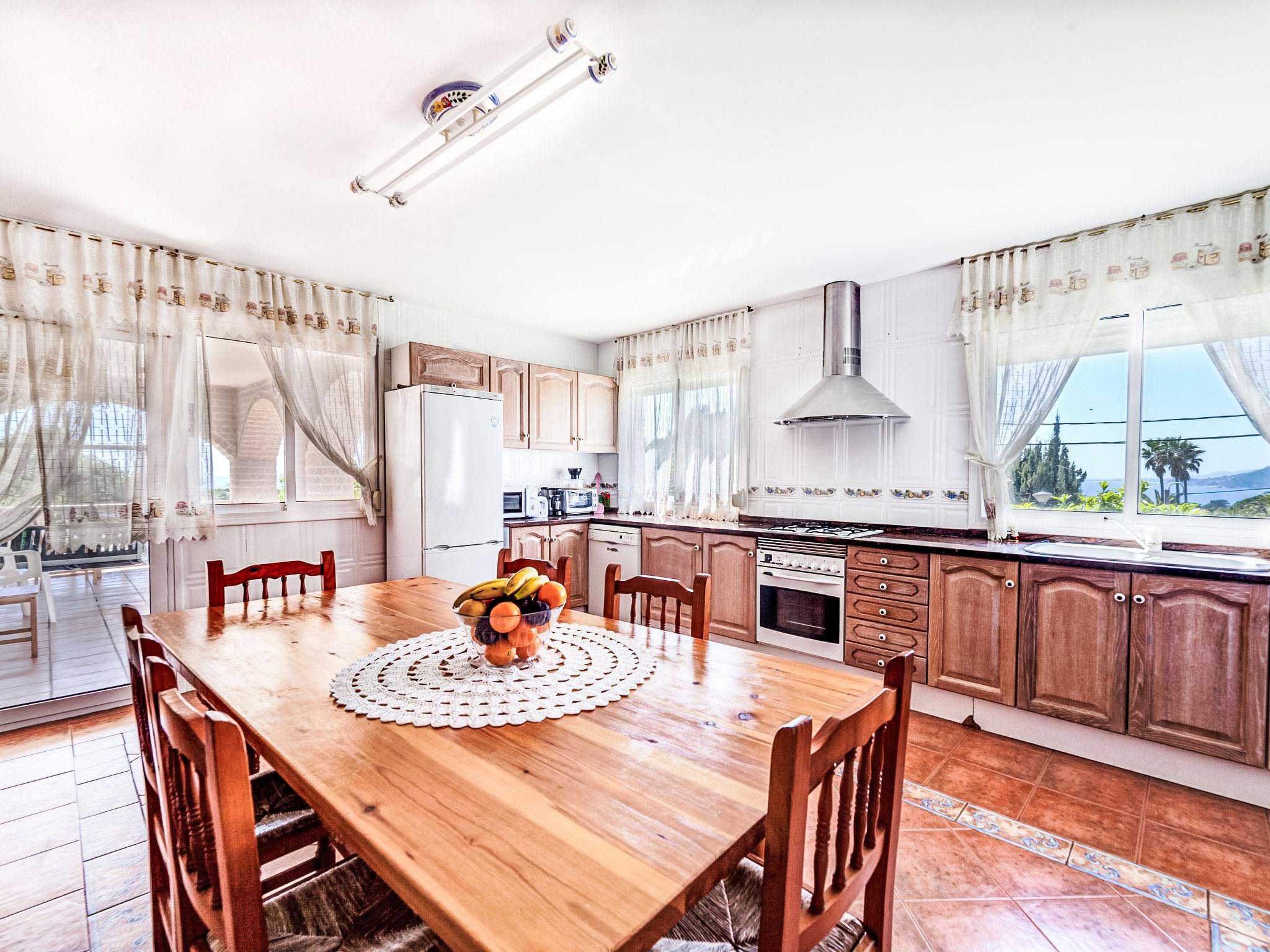 "Macedonia", 7-room villa 500 m2. Spacious and bright, very comfortable furnishings: living/dining room with TV. Exit to the terrace. 1 double bedroom with 1 french bed (150 cm, length 190 cm), TV. Large, open kitchen (4 hot plates, oven, dishwasher, microwave, freezer, electric coffee machine) with dining table. Shower/bidet/WC. No heating option. Upper floor: 2 rooms, each room with 1 french bed (135 cm, length 190 cm). 1 room with 1 bed (90 cm, length 190 cm), 1 double bed (1 x 135 cm, length 180 cm). 1 double bedroom with 2 beds (90 cm, length 190 cm). 1 double bedroom with 1 double bed (1 x 140 cm, length 180 cm). 2 showers/bidet/WC. Garden, lawn. Terrace furniture, barbecue, deck chairs, covered balcony. Very beautiful panoramic view of the sea, the swimming pool and the garden. Facilities: washing machine, iron, children's high chair, baby cot for up to 2 year olds, hair dryer. Internet (WiFi, free). Suitable for families. Families only. HUTG011493 // Reg. Nr.: ESFCTU000017021000348909000000000000000000HUTG0114938