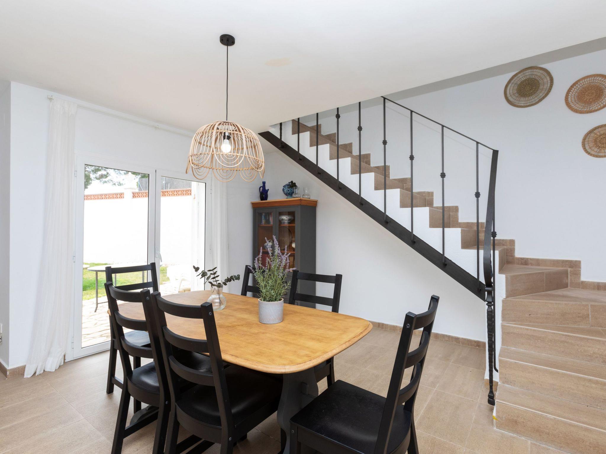 "Neus", 5-room villa 180 m2 on 2 levels. Very practical and comfortable furnishings: living/dining room with open-hearth fireplace (only for decoration), dining table, satellite TV, digital TV, international TV channels and fan. Exit to the patio, to the swimming pool. 1 double bedroom with 2 beds (90 cm, length 190 cm), fan. 1 double bedroom with 1 french bed (140 cm, length 190 cm), fan. Kitchen (5 hot plates, oven, dishwasher, toaster, kettle, microwave, freezer, electric coffee machine). No heating option. Upper floor: open interconnecting room with 1 french bed (140 cm, length 190 cm), fan. 1 double bedroom with 1 french bed (140 cm, length 190 cm), bathroom, bath/bidet/WC and fan. Patio. Terrace furniture, barbecue, deck chairs (6). Partial view of the sea. Facilities: washing machine, iron, children's high chair, baby cot for up to 2 year olds, hair dryer. Internet (WiFi, free). Parking at the house, height 310 cm, width 410 cm. Please note: TV only ES, FR, DE. HUTG042955 // Reg. Nr.: ESFCTU00001702100000639700000000000000HUTG-042955-441