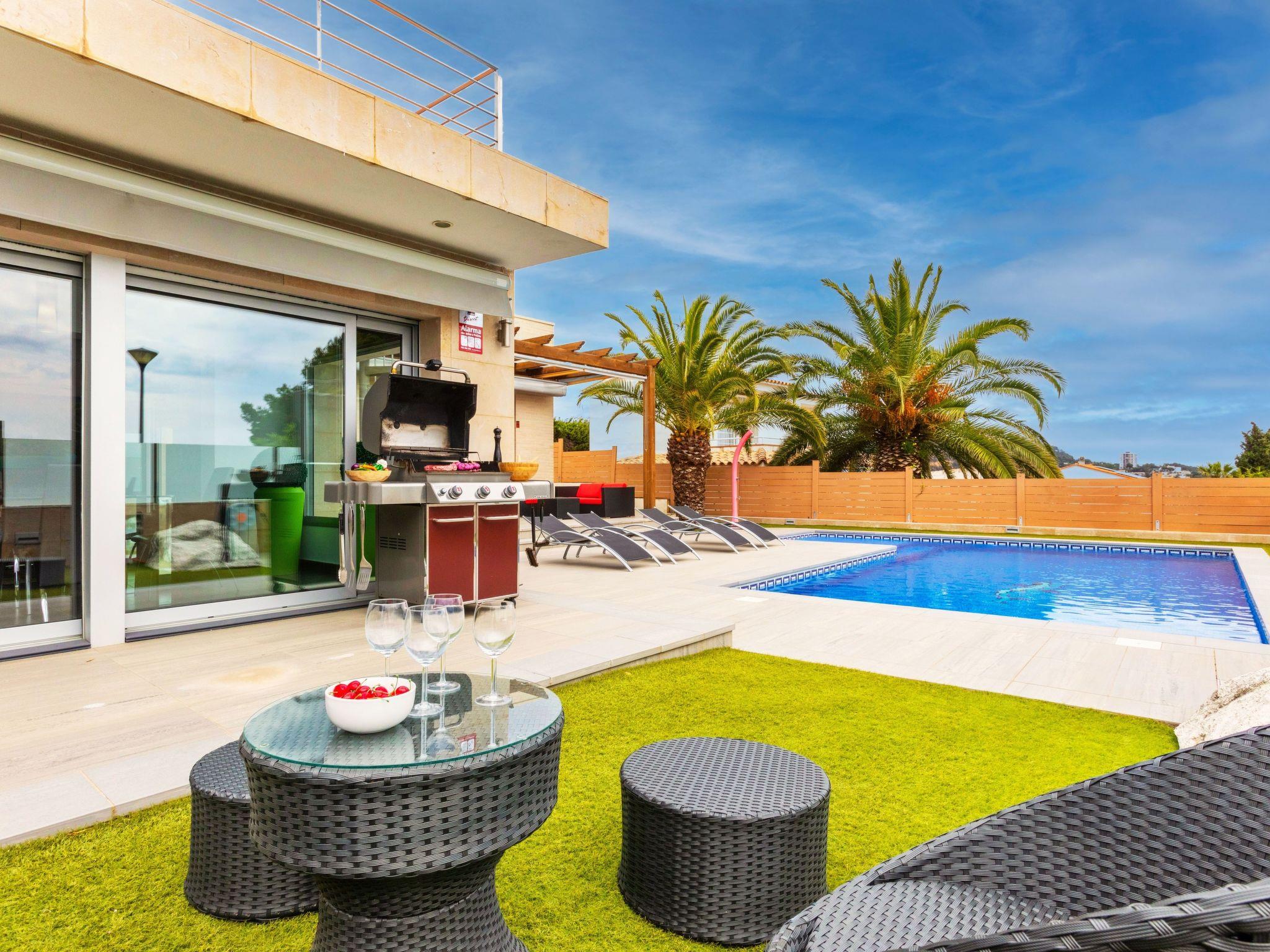 Cala Canyelles 3 km from Lloret de mar: Very large, luxurious villa "Chill", renovated in 2015. Above Cala Canyelles, in a quiet, sunny position residential area (villas), 900 m from the sea, 1.5 km from the beach. Private: beautiful garden to relax, swimming pool angular (9 x 3 m, depth 100 - 180 cm, seasonal availability: 01.May. - 15.Nov.) with internal staircase. Outdoor shower, terrace (150 m2), garden furniture, barbecue. Parking space or garage only for small to medium-sized cars. Shop 3 km, supermarket 3 km, restaurant 500 m, bakery 500 m, bus stop "Canyelles" 1 km, sandy beach "Canyelles" 1.5 km, diving center 1 km. Sports harbour 1.5 km, golf course (18 hole) 27 km, tennis 1 km, walking paths from the house 500 m. Nearby attractions: Waterworld Lloret 4 km, Girona 28 km, Barcelona 79 km, Marinland 12 km, La Roca Village Outlet 57 km. Please note: car recommended. Suitable for families. The owner does not accept any groups. The owner does not accept any youth groups. Loading and unloading of baggage is possible at the holiday house. Airfield 32 km from the property.