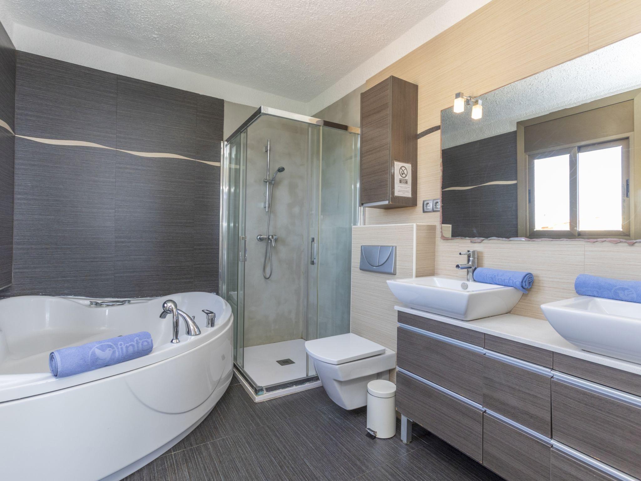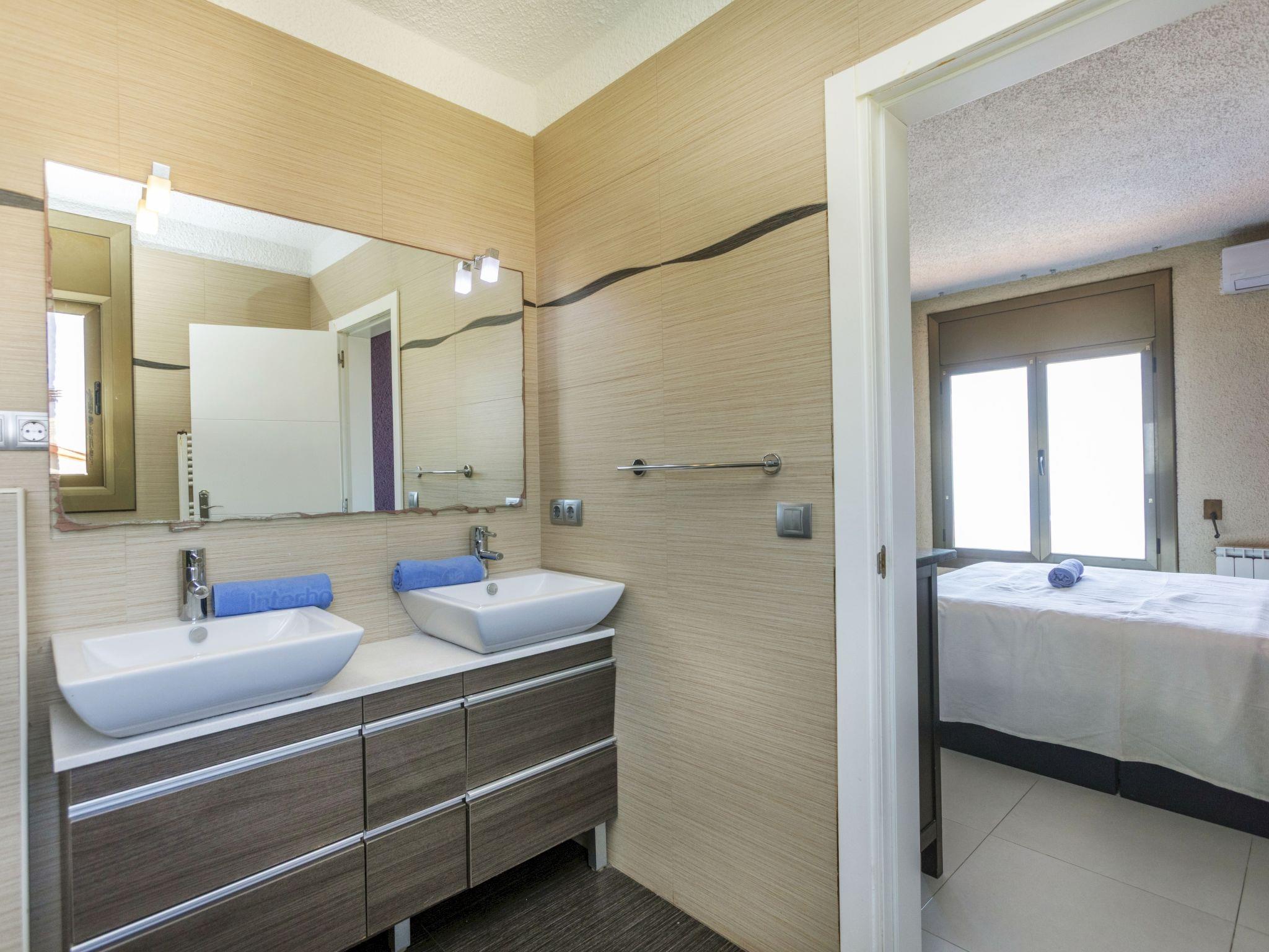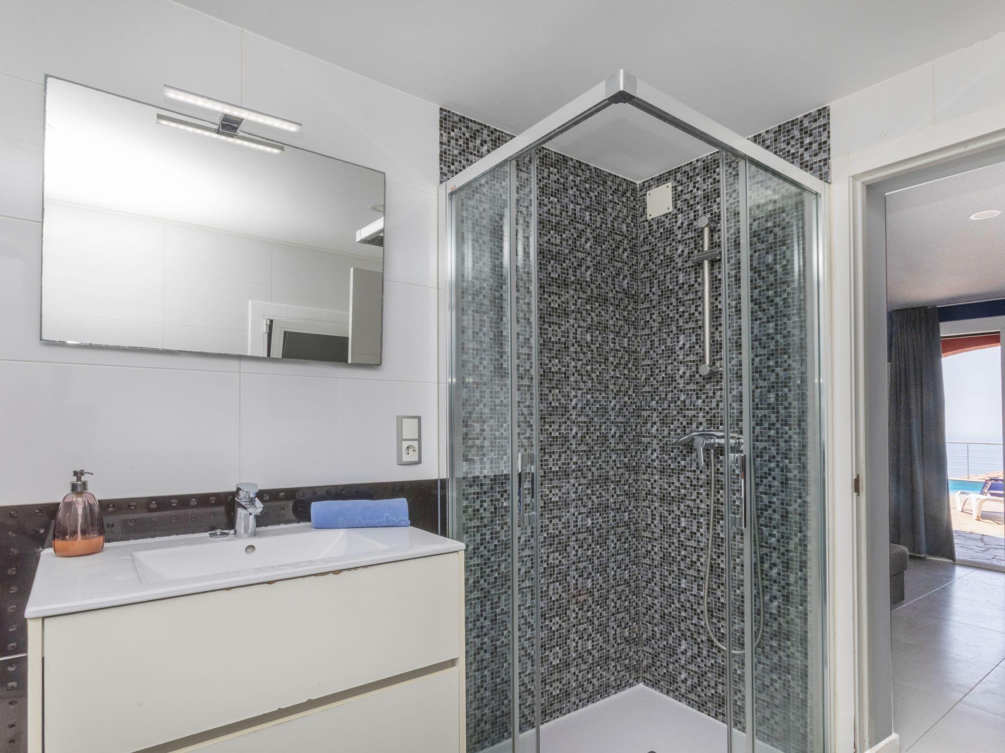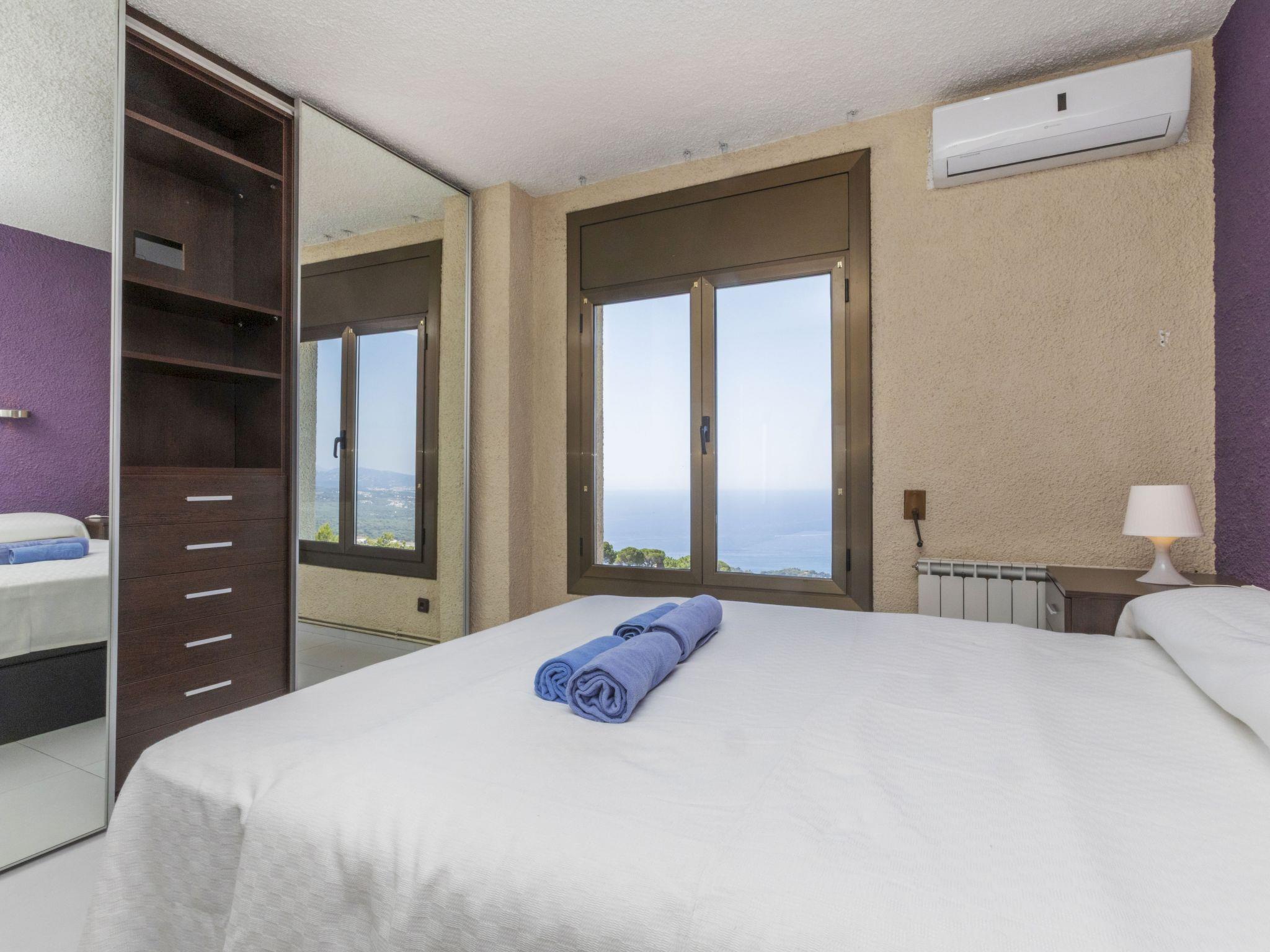 "Solar", 5-room house 160 m2. Living/dining room. Open kitchen (4 hot plates, oven, dishwasher, toaster, kettle, microwave, freezer, electric coffee machine) with dining table and digital TV. Exit to the terrace. Sep. WC. On the lower ground floor: living room with 1 folding bed (90 cm, length 190 cm), digital TV and air conditioning. Exit to the terrace, to the swimming pool. 1 double bedroom with 1 french bed (150 cm, length 190 cm). Exit to the terrace, to the swimming pool. 1 double bedroom with 1 french bed (135 cm, length 190 cm). Shower/WC. Upper floor: 1 double bedroom with 1 french bed (150 cm, length 190 cm), bath/shower and air conditioning. 1 double bedroom with 1 french bed (150 cm, length 190 cm), shower/WC and air conditioning. Terrace furniture, barbecue, deck chairs, covered balcony. Panoramic view of the sea. Facilities: washing machine, iron, hair dryer. Internet (WiFi, free). Garage (1 car). HUTG-012284