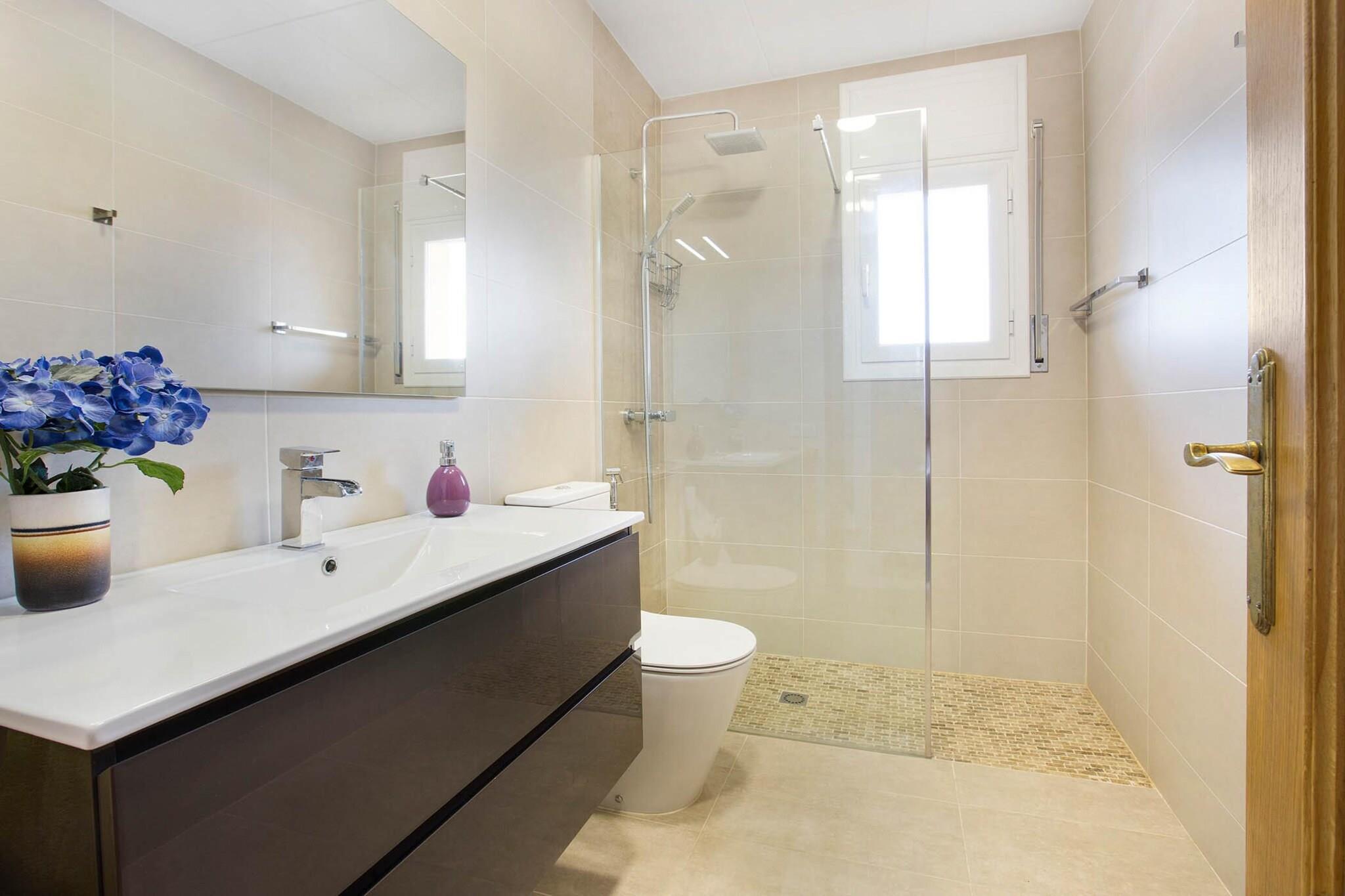 Denne charmerende villa med 3 soveværelser tilbyder et fredeligt tilflugtssted for op til 6 gæster, hvilket gør det til det perfekte sted for en familieferie. Beliggende i et roligt boligområde, det har en privat have og pool (8x4m), hvor du kan slappe af, mens du nyder en fantastisk havudsigt. Det indendørs rum omfatter en komfortabel stue med satellit-tv og et Hi-Fi-system, ideel til at slappe af efter en dag med udforskning. Køkkenet er fuldt udstyret med køleskab, mikroovn, opvaskemaskine og vaskemaskine. Villaen har også to soveværelser med dobbeltsenge og et soveværelse med to enkeltsenge samt to badeværelser med bruser. Bemærk venligst, at kæledyr ikke er tilladt, og ejendommen er udelukkende til familiereservationer. Villaen ligger kun 4 km fra den rolige Cala Canyelles strand, en smuk bugt med krystalklart vand, hvor du kan nyde forskellige aktiviteter såsom parasailing, vandski og kanosejlads. Stranden har også restauranter, der serverer middelhavsretter, herunder lækker fisk og paella. Den travle by Lloret de Mar ligger 6 km derfra og byder på et pulserende natteliv, shopping og spisemuligheder, mens middelalderbyen Tossa de Mar, kendt for sit charmerende slot og naturskønne udsigt, ligger kun 8 km fra ejendommen. Denne beliggenhed tilbyder den perfekte kombination af fred og adgang til nærliggende attraktioner. Villaens udendørsområde er perfekt til al fresco spisning, med en rummelig terrasse med smuk havudsigt og en indbygget grill til familie-cookouts. Der er også parkering til rådighed for din bekvemmelighed.
