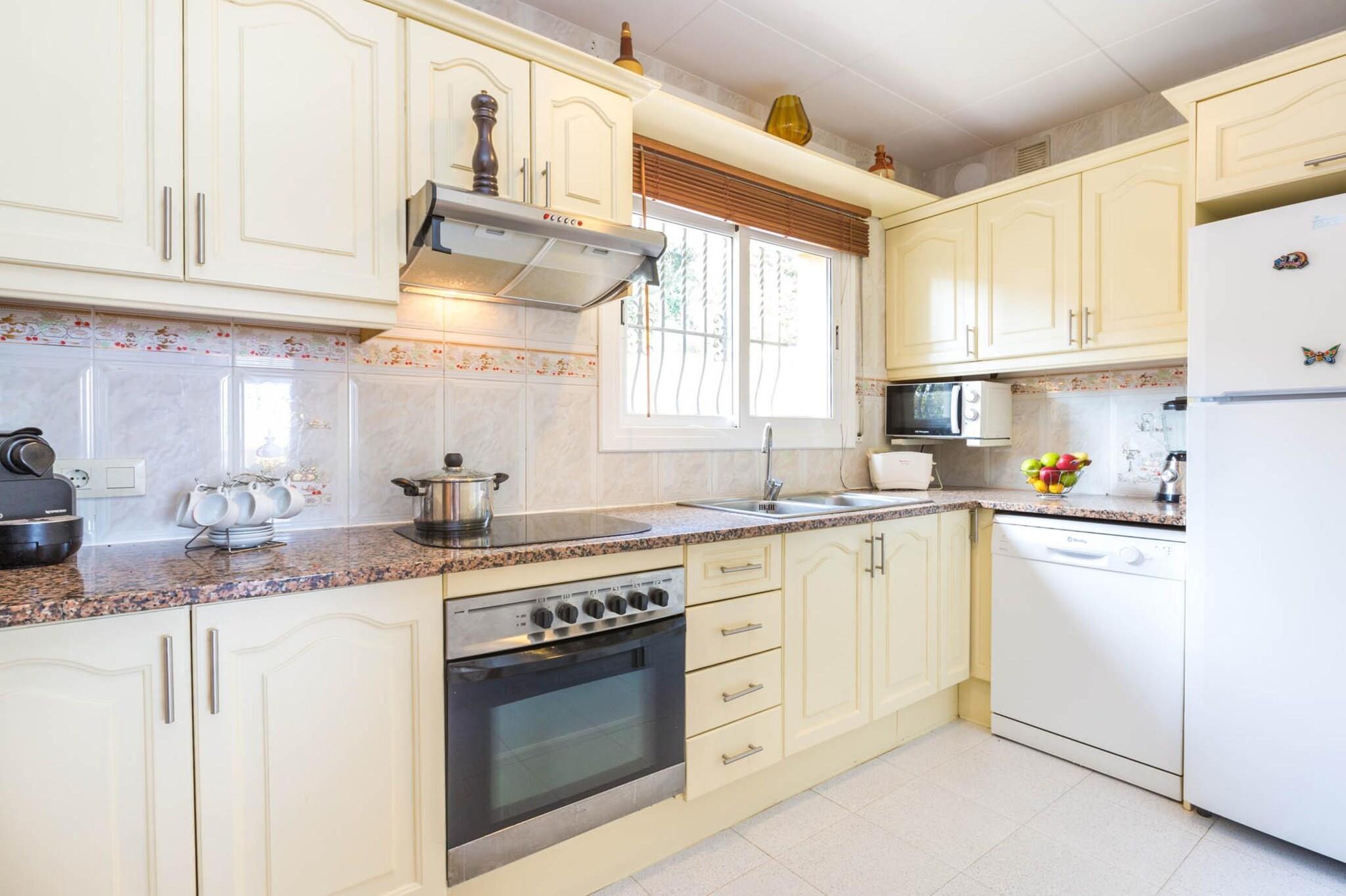 Stue(Fjernsyn(parabol), spisebord, pejs, sofahjørne), Køkken(brødrister, kaffemaskine, ovn, mikrobølgeovn, opvaskemaskine , køleskab, fryser, ), soveværelse(dobbeltseng), soveværelse(dobbeltseng), soveværelse(enkeltseng, enkeltseng), badeværelse(bruser), badeværelse(bruser), Internetadgang, vaskemaskine, varme, terrasse, have, grill, parkering, swimmingpool(privat), strygejern