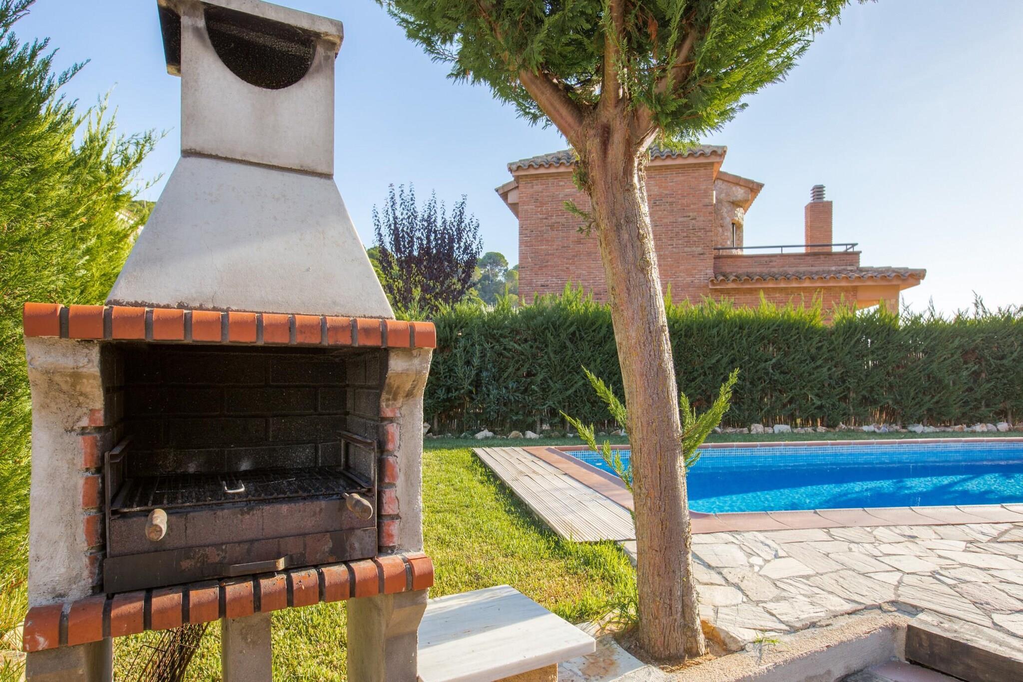Denne rummelige villa tilbyder en ideel tilflugtssted for familier med en maksimal kapacitet på 8 gæster. Det har fire komfortable soveværelser, herunder tre dobbeltværelser og et med to enkeltsenge, perfekt til familier eller grupper. Ejendommen tilbyder to badeværelser, det ene med bruser og det andet med badekar, hvilket sikrer bekvemmelighed for alle gæster. En stor stue med et tv giver et afslappende sted at slappe af, mens det åbne køkken, der er udstyret med et køleskab med fryser, mikroovn, ovn, opvaskemaskine og vaskemaskine, tilbyder alle de faciliteter, der er nødvendige for et behageligt ophold. Villaen er kæledyrsvenlig efter anmodning og mod et tillægsgebyr. Beliggende kun 1 km fra den fantastiske Cala Canyelles-strand, kan gæsterne nemt få adgang til den smukke kystlinje med dets krystalklare vand, ideelt til svømning, vandsport og afslapning i solen. For en mere livlig atmosfære ligger Lloret de Mars bymidte kun 4 km væk, hvor du kan udforske lokale caféer, restauranter og butikker. Tossa de Mar, en malerisk middelalderby med et slot, ligger kun 7 km væk og byder på en blanding af historie, charmerende gader og fremragende spisemuligheder. Villaens udendørsområde er perfekt til at nyde middelhavsklimaet med en privat pool, store terrasser med grill og en smuk udsigt over bjergene. Haveområdet er udstyret med udendørsmøbler, hvilket gør det til det ideelle sted for al fresco måltider. Med en garage til tre biler og en indhegnet grund giver villaen god plads til både afslapning og sikkerhed, hvilket gør den til en perfekt base for familieferier.