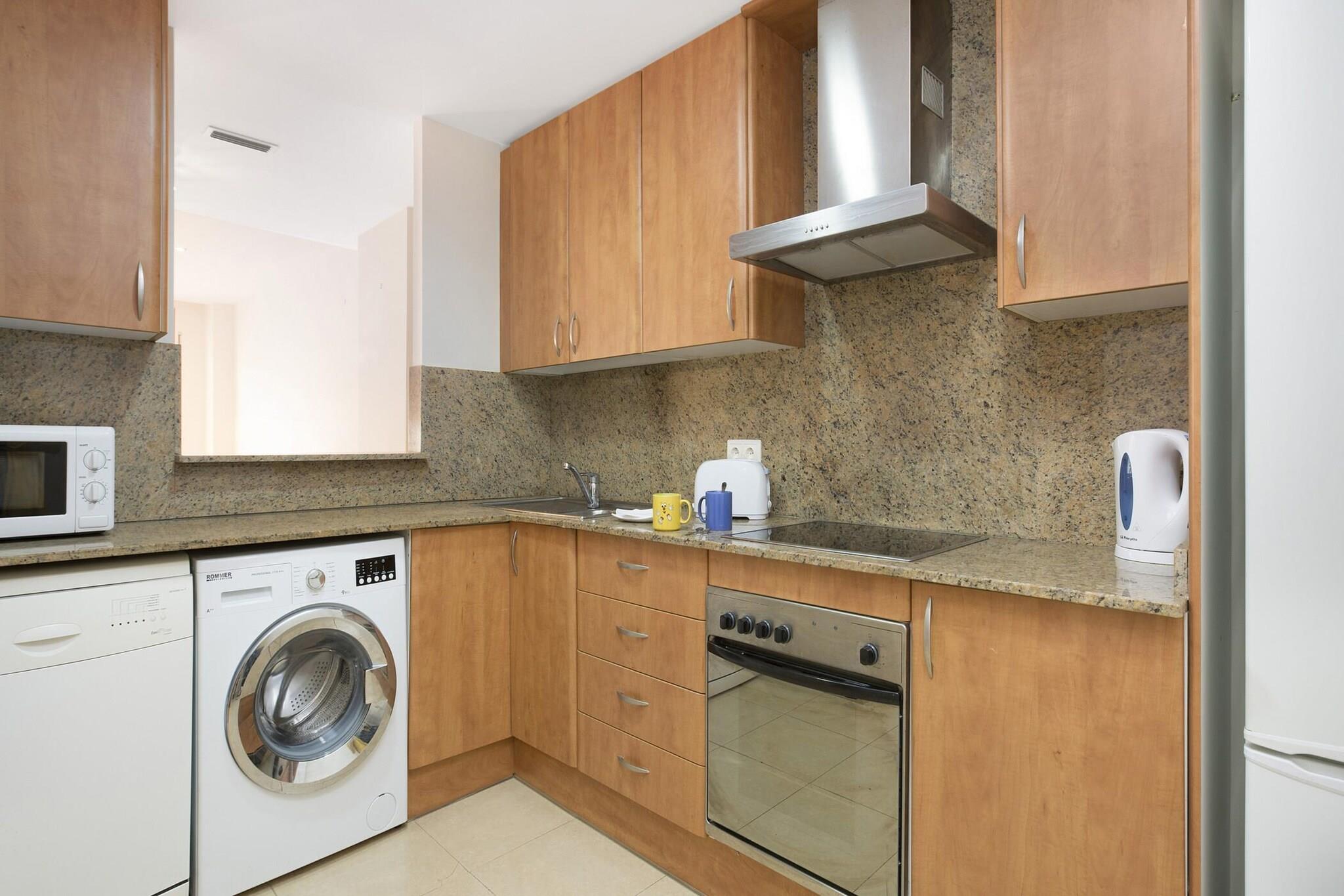 Denne hyggelige lejlighed på 62 m² er beliggende i det fredelige område Fenals, Lloret de Mar, kun 300 meter fra stranden og 400 meter fra byens centrum. Det er perfekt til familieferier på Costa Brava, med en maksimal kapacitet på 4 personer. Lejligheden ligger i en rolig udvikling, tæt på forskellige tjenester, butikker og restauranter, hvilket gør det til et bekvemt og afslappende sted for dit ophold. Lejligheden har en rummelig stue/spisestue med tv og direkte adgang til terrassen og den fælles pool, perfekt til at nyde måltider eller slappe af ved vandet. Det fuldt udstyrede køkken omfatter mikroovn, vaskemaskine, ovn, brødrister, keramisk kogeplade og opvaskemaskine, hvilket gør det nemt at tilberede måltider under dit ophold. Lejligheden indeholder 1 soveværelse med dobbeltseng (135x190cm seng), 1 soveværelse med 2 enkeltsenge (90x190cm og 80x190cm), og 1 badeværelse med bruser. Aircondition er tilgængelig som ekstraudstyr for 50EURO/uge, hvilket sikrer komfort på varmere dage. Bemærk venligst, at ungdomsgrupper ikke er tilladt, og denne ejendom er kun tilgængelig for familier. Reservationer for personer under 35 år er ikke tilladt. Kæledyr er tilladt efter anmodning. Der er ingen udpeget parkeringsplads til denne lejlighed. Lejligheden ligger i kort afstand fra stranden og tæt på faciliteter, hvilket gør den til et godt valg for dem, der ønsker at udforske Lloret de Mar og nyde Costa Bravas charme!