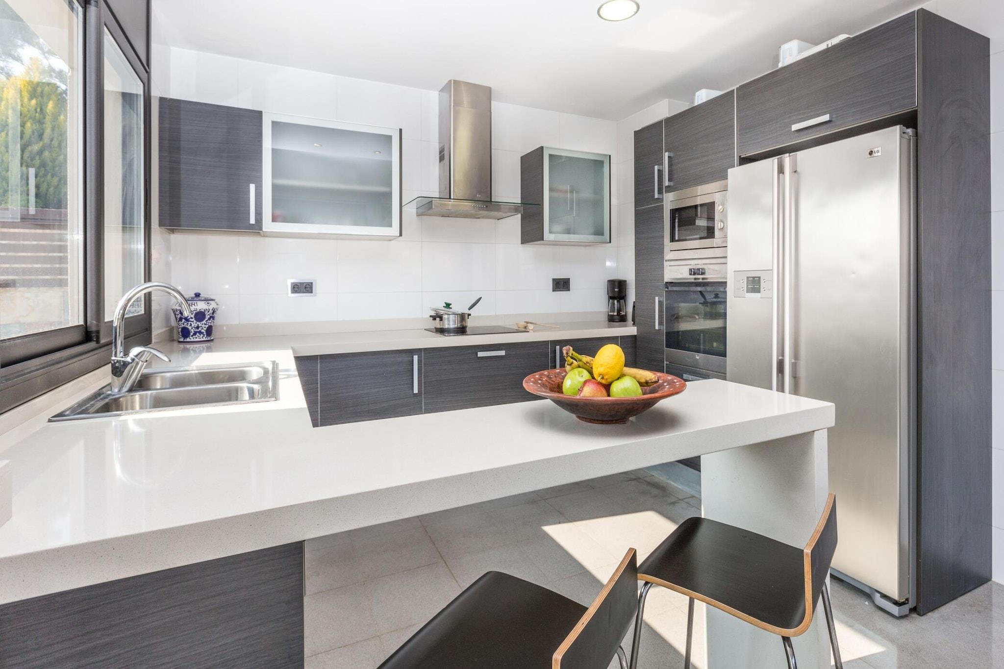Køkken(brødrister, kaffemaskine, ovn, mikrobølgeovn, opvaskemaskine , køleskab, fryser, ), stue / spisestue(Fjernsyn, spisebord, sofahjørne), soveværelse(enkeltseng, enkeltseng), soveværelse(enkeltseng, enkeltseng), soveværelse(dobbeltseng), soveværelse(dobbeltseng), badeværelse(bruser), badeværelse(bruser), badeværelse(badekar), Internetadgang, vaskemaskine, varme, klimaanlæg, terrasse, have, parkering, swimmingpool(privat), strygejern, Alarm