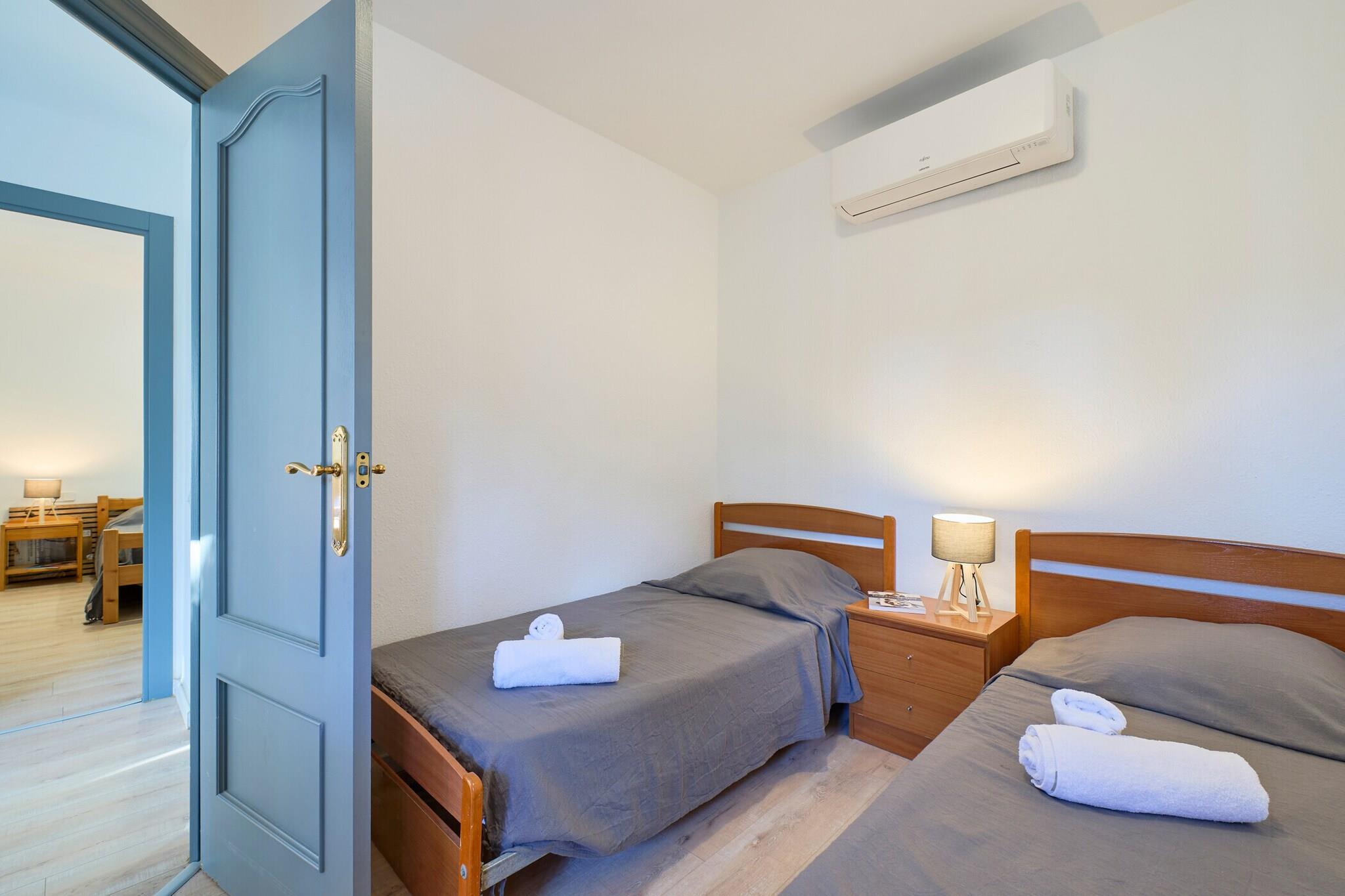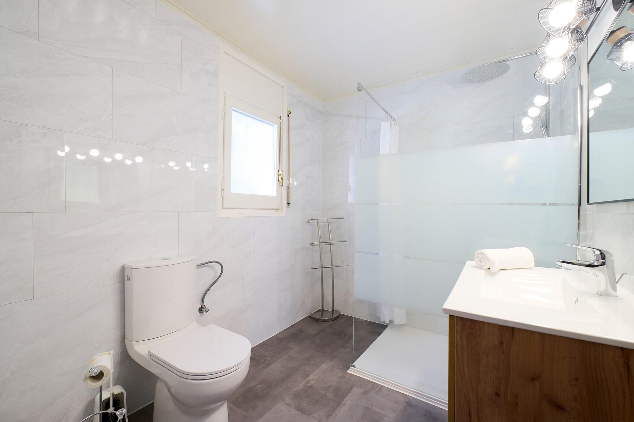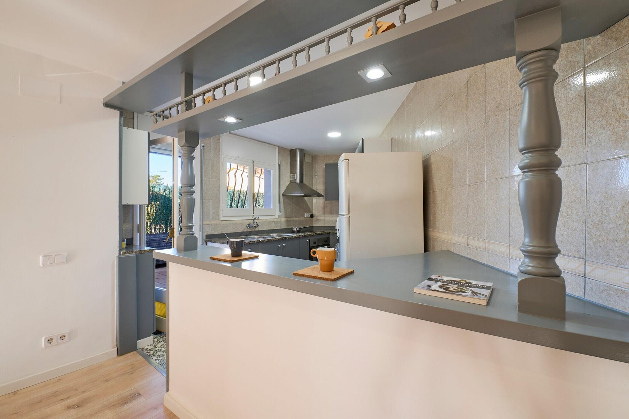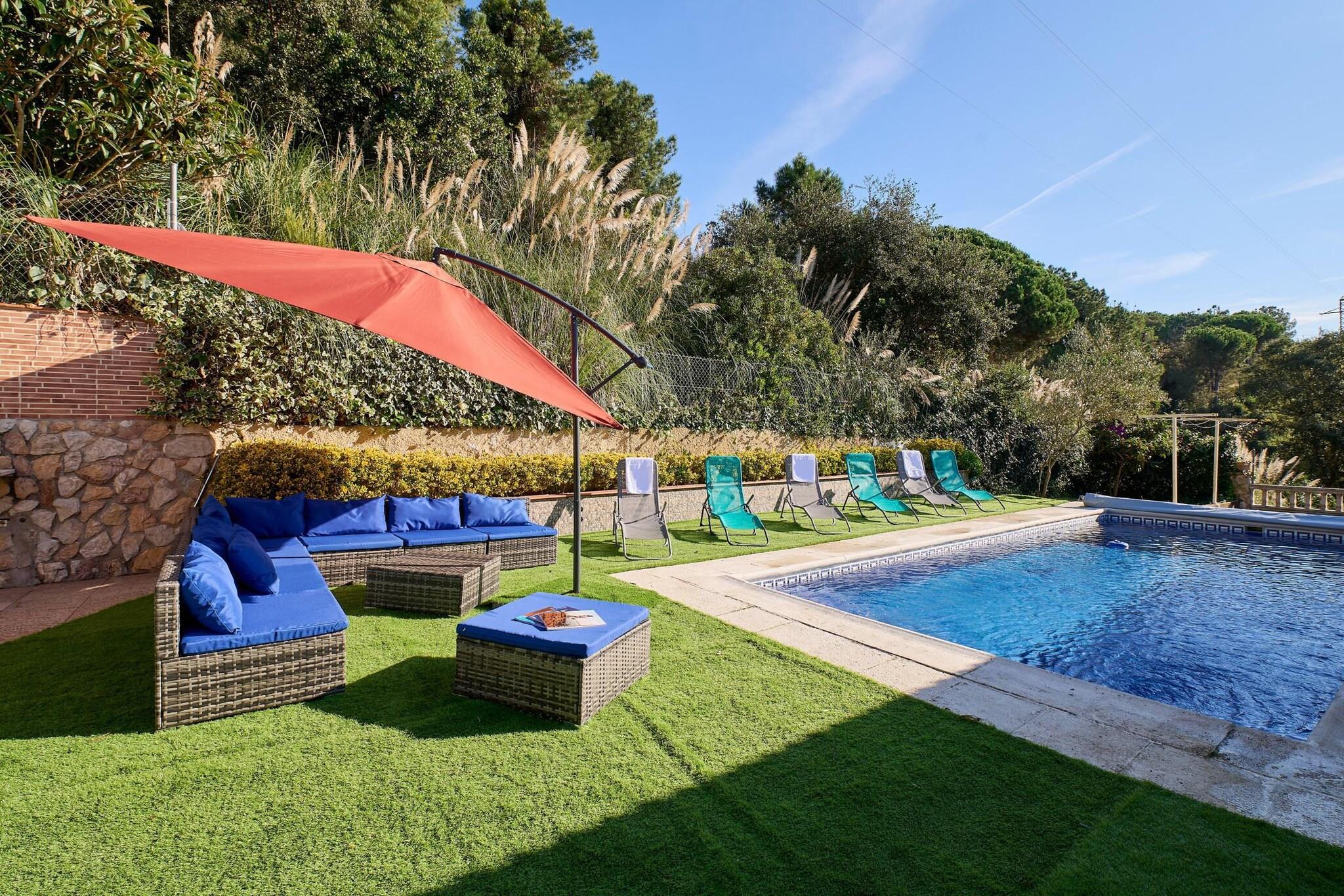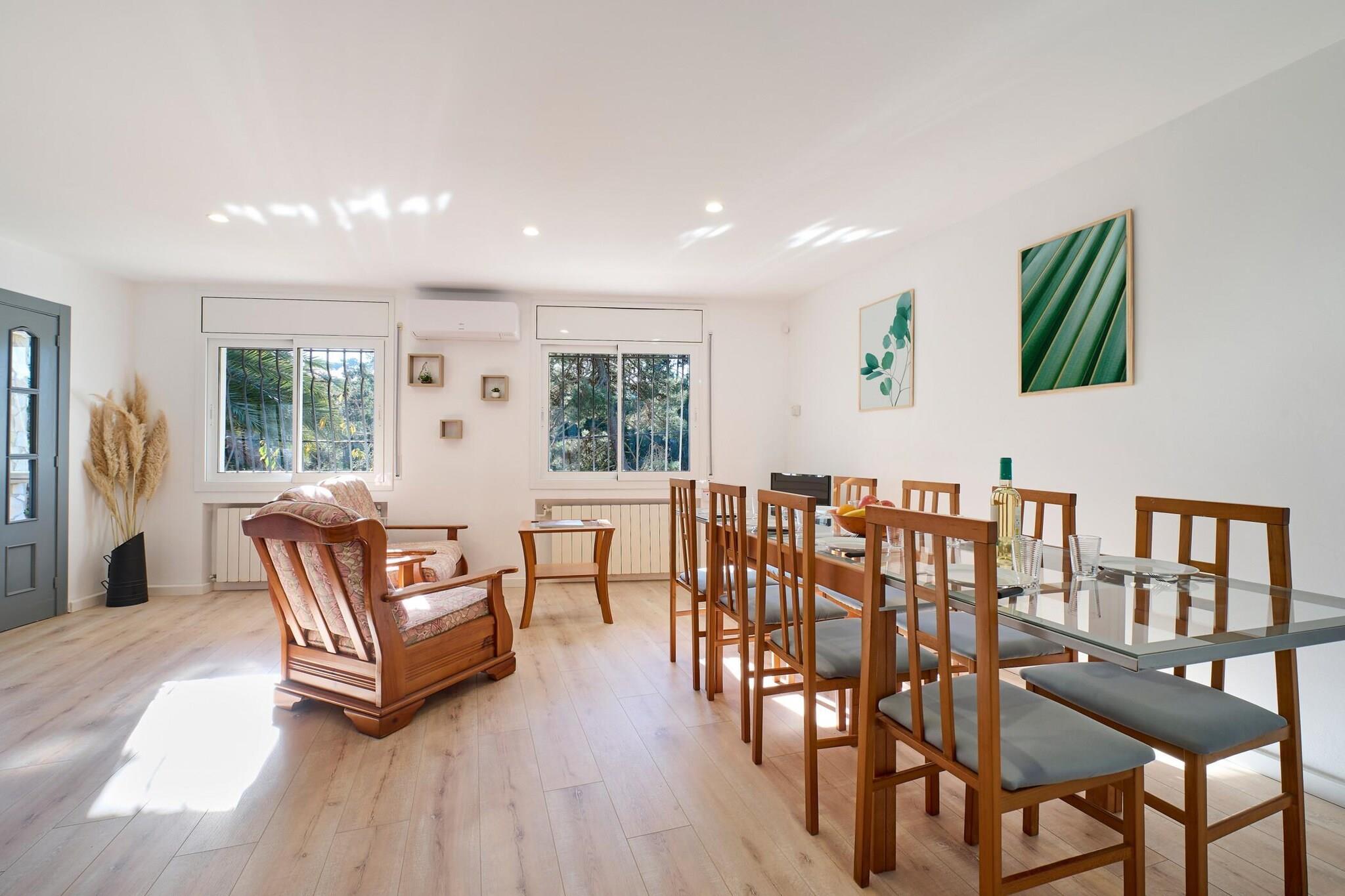 Denne hyggelige villa i Lloret de Mar tilbyder et perfekt tilflugtssted for familier med plads til op til 10 gæster. Villaen ligger i et fredeligt boligområde tæt på byen og dens smukke strande, som Cala Canyelles. Hovedhuset har en rummelig opholds- og spisestue, udstyret med et tv og Wi-Fi, og et åbent køkken, der er fuldt udstyret med moderne apparater, herunder en ovn, mikroovn og opvaskemaskine. Huset har fire soveværelser med dobbeltsenge: et med en dobbeltseng og et en-suite badeværelse med bruser, et med en dobbeltseng, et med to enkeltsenge og et med køjesenge. Der er også et ekstra badeværelse med bruser. For ekstra privatliv er der en separat lejlighed med egen indgang. Denne lejlighed har en stor stue, et lille morgenmadsområde med køleskab, et soveværelse med dobbeltseng og et badeværelse med bruser. Udendørsområdet er et højdepunkt, med en overdækket terrasse, der er perfekt til spisning og afslapning, komplet med en brændefyret ovn og et afslapningsområde. Den private pool (9,4x4m) ligger ved siden af den indbyggede grill, og der er en chill-out-zone til at slappe af efter en solskinsdag. Aircondition og varme er til rådighed som en mulighed for et ekstra gebyr på 15EURO/dag. Wi-Fi er også inkluderet. Kæledyr er ikke tilladt, og ejendommen er kun tilgængelig for familier (unge grupper accepteres ikke). Denne villa tilbyder den perfekte balance mellem komfort og privatliv, hvilket gør den til et ideelt valg for en afslappende familieferie i den smukke Costa Brava-region.