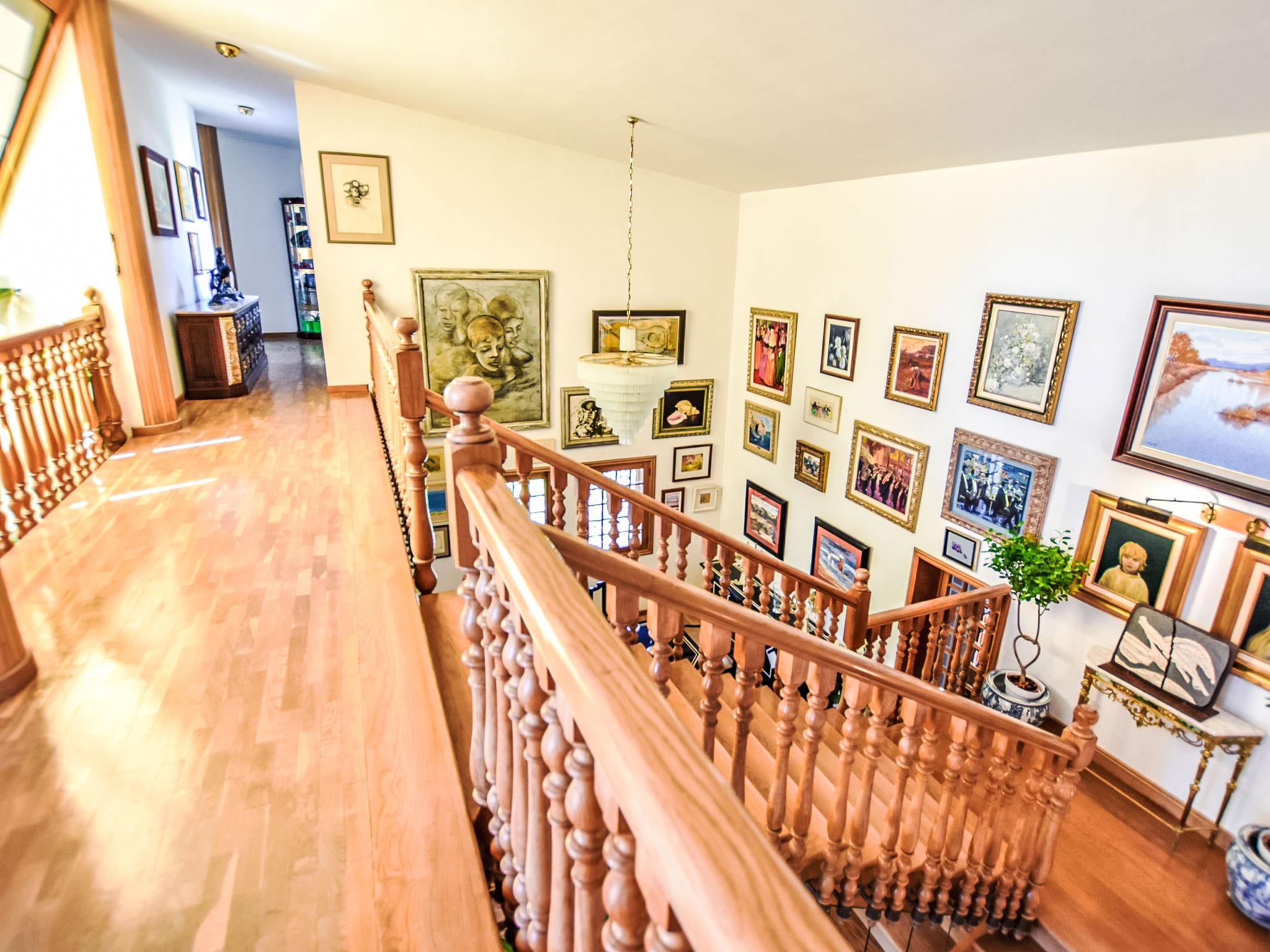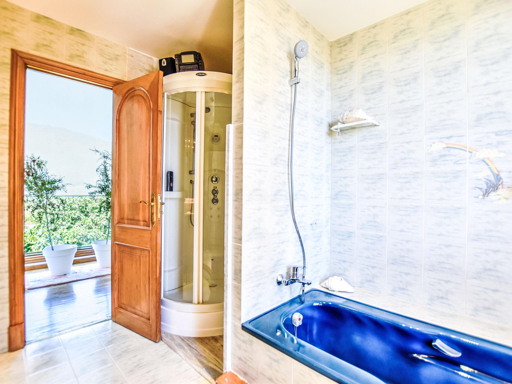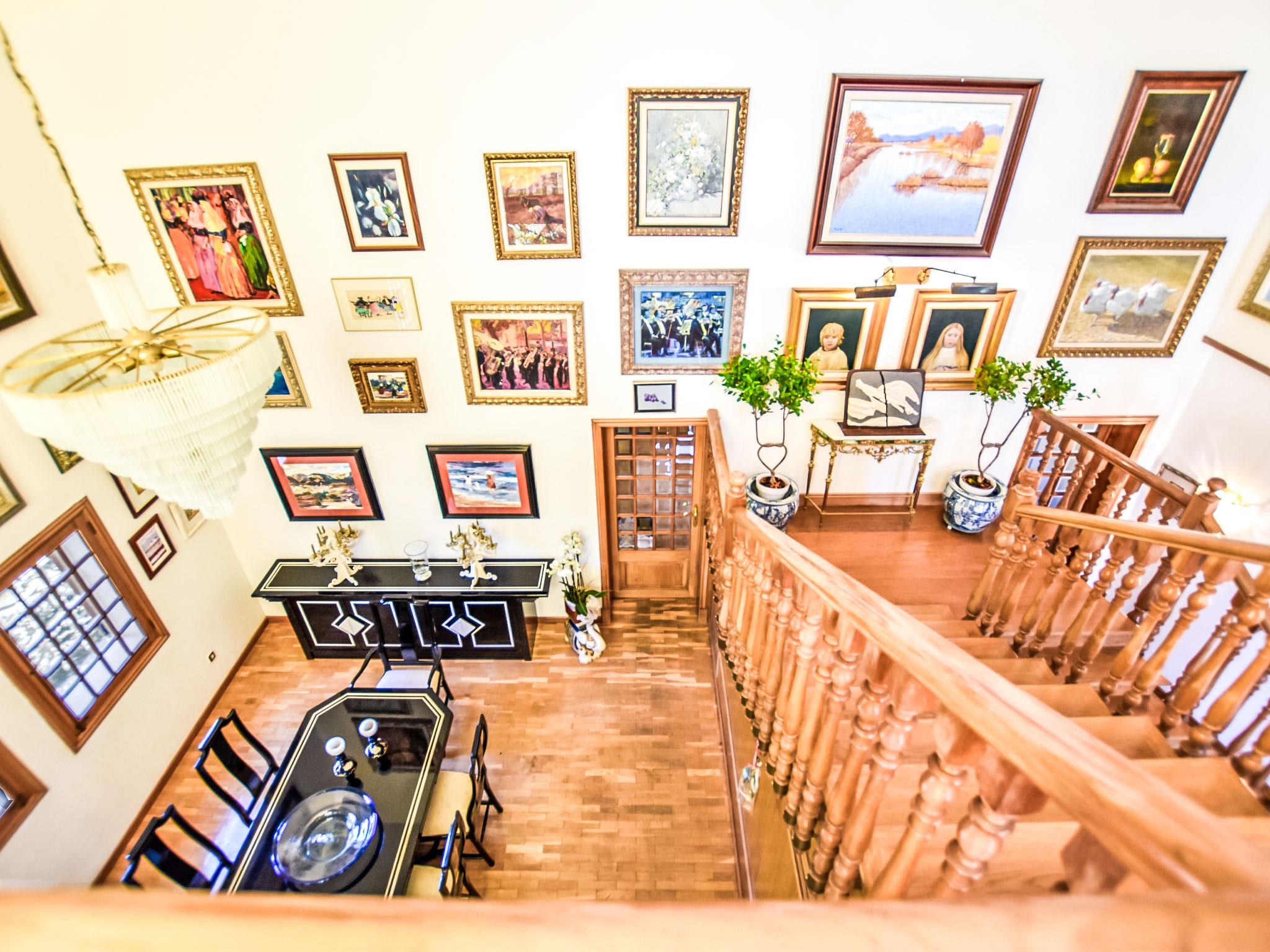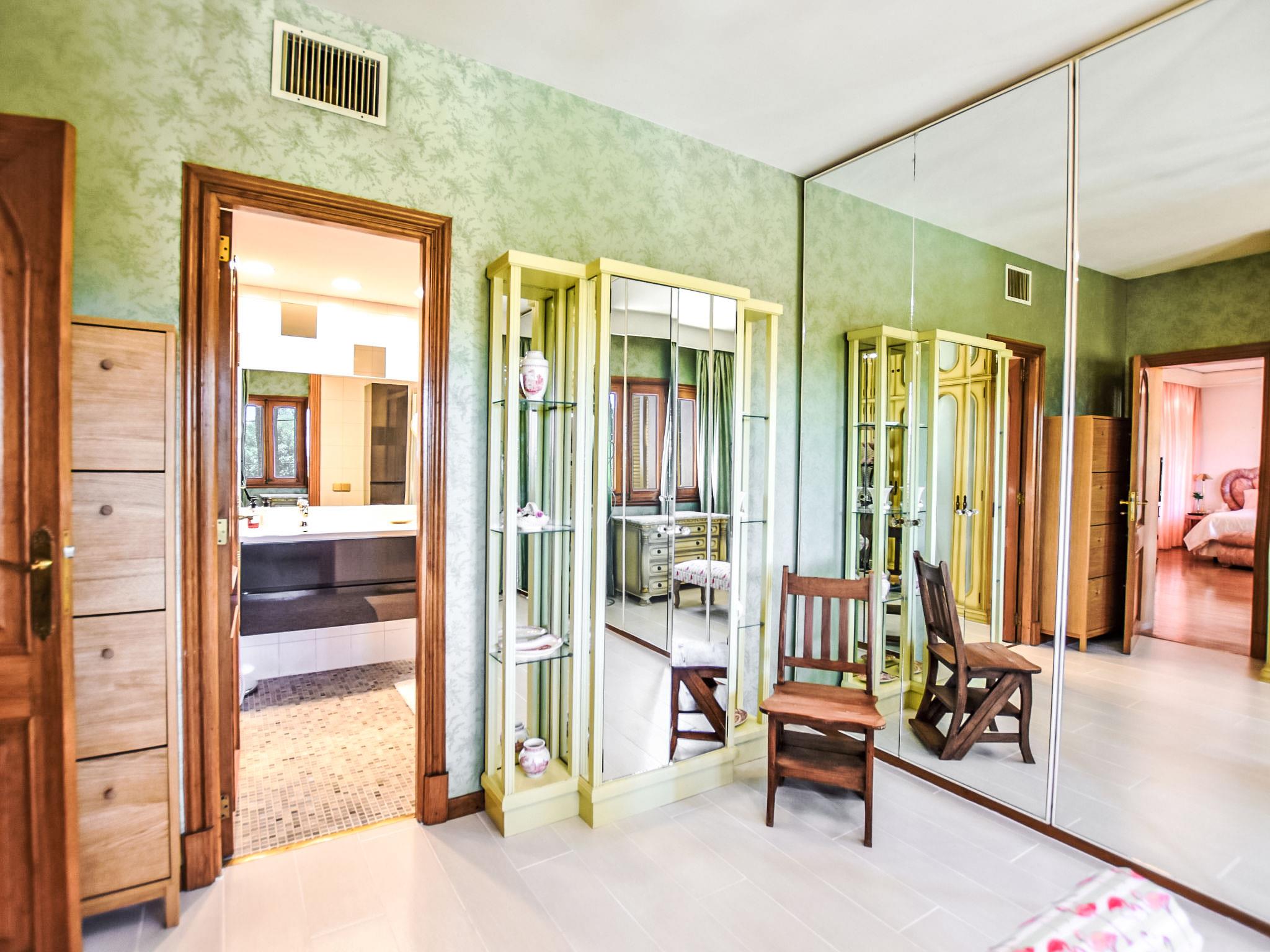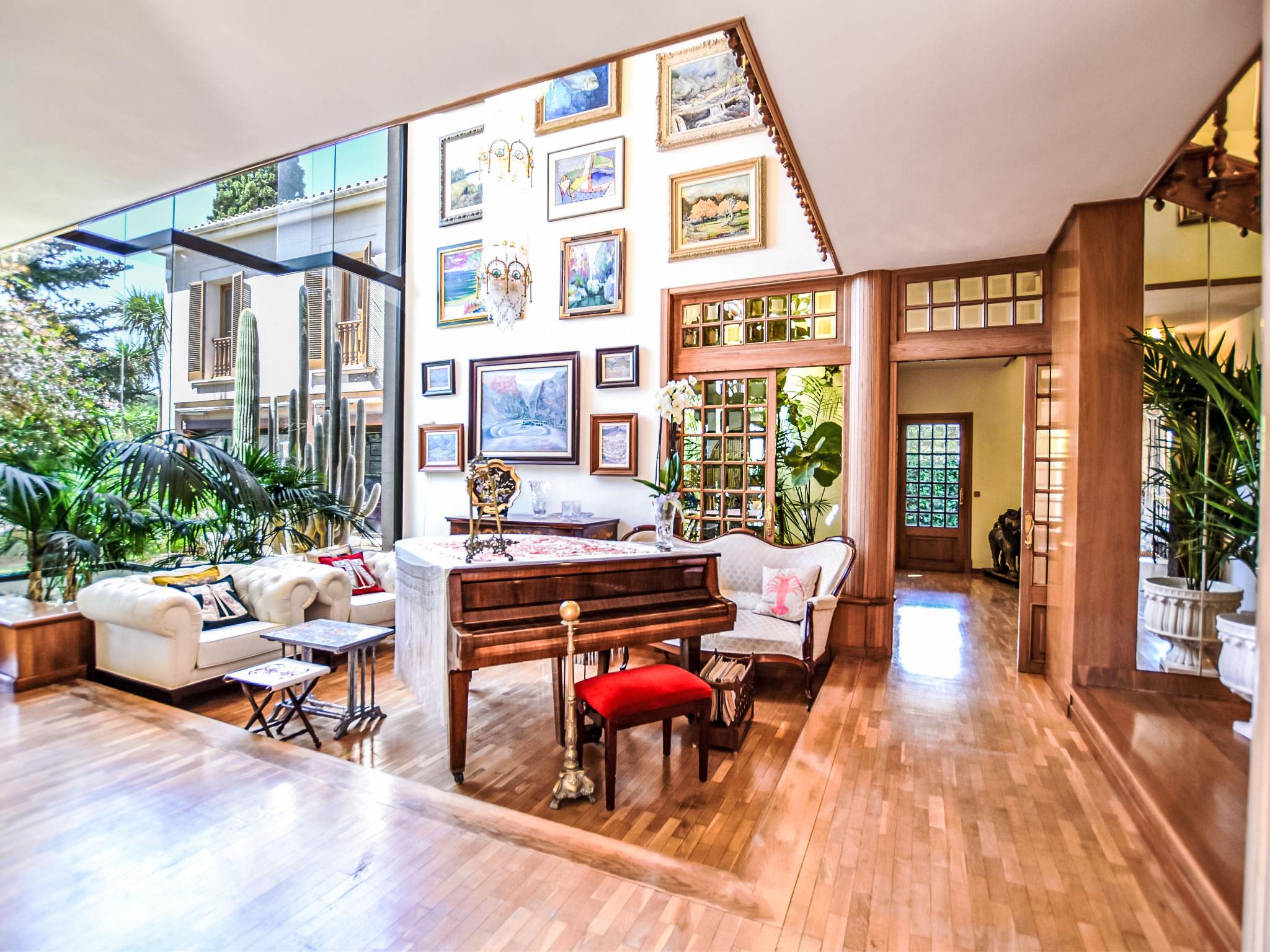 "Can Joan", 9-room villa 450 m2 on 2 levels. Object suitable for 10 adults. Spacious and bright, very comfortable and tasteful furnishings: open large living room with sliding door, panoramic window. Exit to the garden. Large dining room with dining table. Large living room with sliding door, panoramic window with dining table, satellite TV and flat screen. Exit to the patio. Lounge with panoramic window with satellite TV, air conditioning and forced-air heating. 1 large double bedroom with panoramic window with 1 french bed. Kitchen-/living room (oven, dishwasher, 3 ceramic glass hob hotplates, toaster, kettle, microwave, freezer, electric coffee machine) with dining table, air conditioning and forced-air heating. Exit to the terrace. Bath/WC, bath/shower/WC. Upper floor: 1 large double bedroom with panoramic window Dressing room with 1 double bed, bath/shower/WC, TV, flat screen, air conditioning, fan and forced-air heating. 2 large double bedrooms with panoramic window, each room with 1 french bed, air conditioning and forced-air heating. 1 double bedroom with panoramic window with 2 beds (90 cm), air conditioning and forced-air heating. Bath/shower/WC, double hand-basin with corner bath. Comfortable furnishings in the country house style. Large patio, lawn. Terrace furniture, barbecue, deck chairs (6), covered balcony. View of the mountains and the resort. Facilities: washing machine, dryer, iron, hair dryer. Internet (WiFi, free). Suitable for families. ETV/12285 // Reg. Nr.: ESFCTU0000070220001404350000000000000000000ETV/122856
