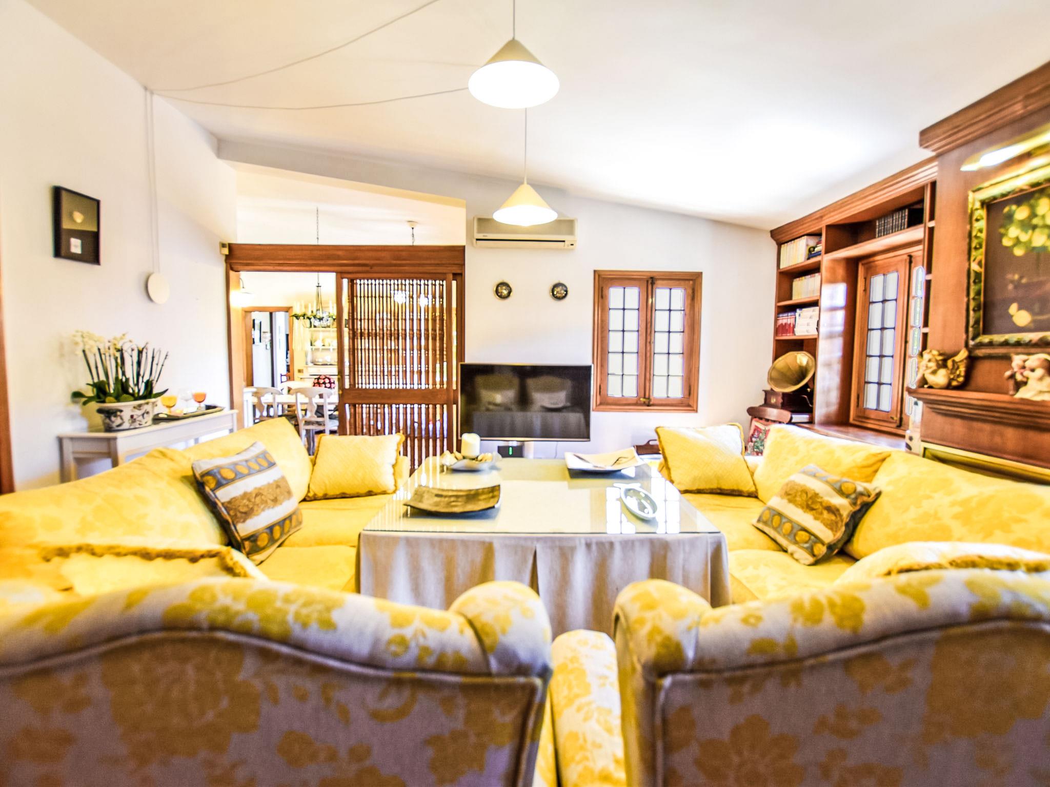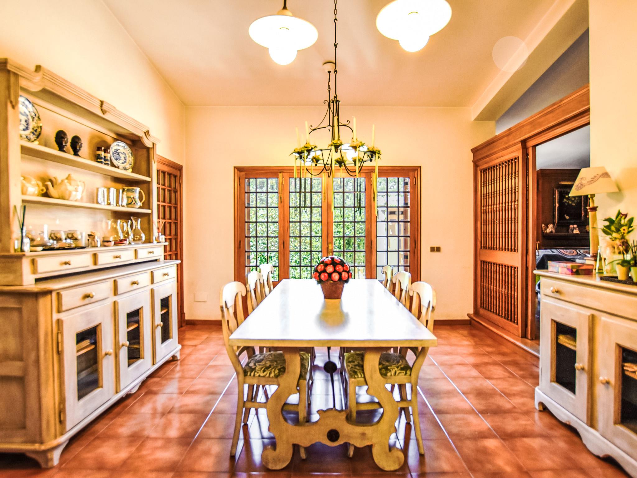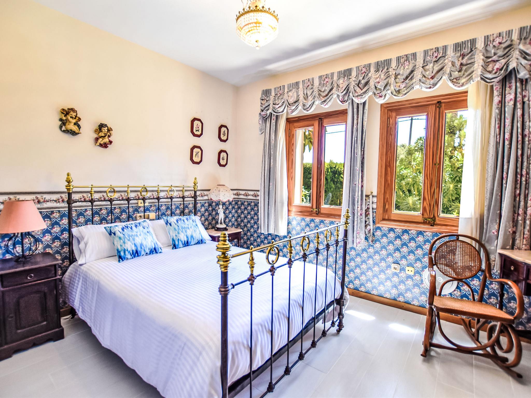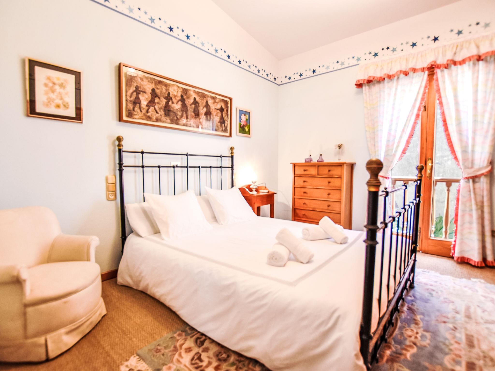 "Can Joan", 9-room villa 450 m2 on 2 levels. Object suitable for 10 adults. Spacious and bright, very comfortable and tasteful furnishings: open large living room with sliding door, panoramic window. Exit to the garden. Large dining room with dining table. Large living room with sliding door, panoramic window with dining table, satellite TV and flat screen. Exit to the patio. Lounge with panoramic window with satellite TV, air conditioning and forced-air heating. 1 large double bedroom with panoramic window with 1 french bed. Kitchen-/living room (oven, dishwasher, 3 ceramic glass hob hotplates, toaster, kettle, microwave, freezer, electric coffee machine) with dining table, air conditioning and forced-air heating. Exit to the terrace. Bath/WC, bath/shower/WC. Upper floor: 1 large double bedroom with panoramic window Dressing room with 1 double bed, bath/shower/WC, TV, flat screen, air conditioning, fan and forced-air heating. 2 large double bedrooms with panoramic window, each room with 1 french bed, air conditioning and forced-air heating. 1 double bedroom with panoramic window with 2 beds (90 cm), air conditioning and forced-air heating. Bath/shower/WC, double hand-basin with corner bath. Comfortable furnishings in the country house style. Large patio, lawn. Terrace furniture, barbecue, deck chairs (6), covered balcony. View of the mountains and the resort. Facilities: washing machine, dryer, iron, hair dryer. Internet (WiFi, free). Suitable for families. ETV/12285 // Reg. Nr.: ESFCTU0000070220001404350000000000000000000ETV/122856