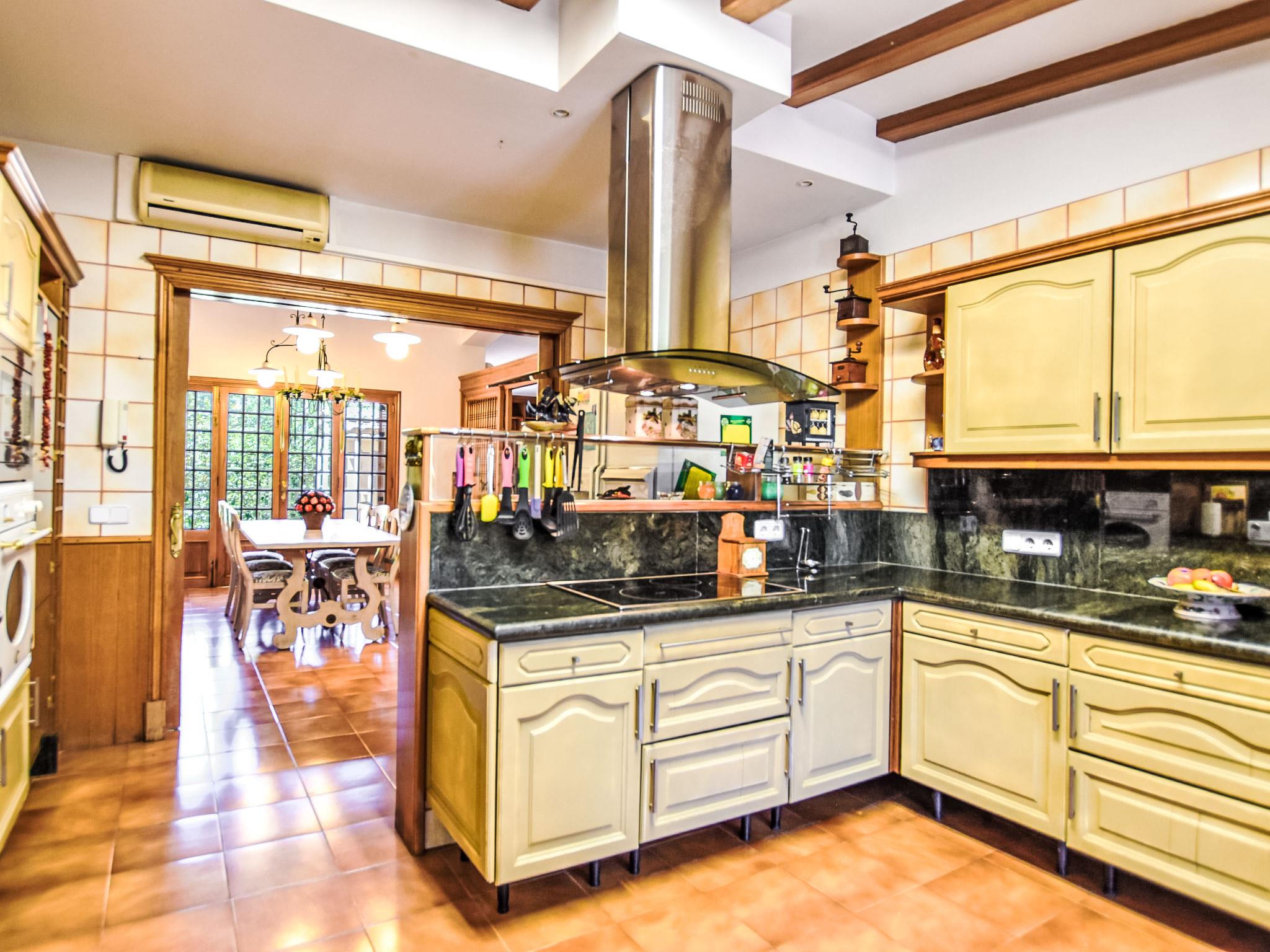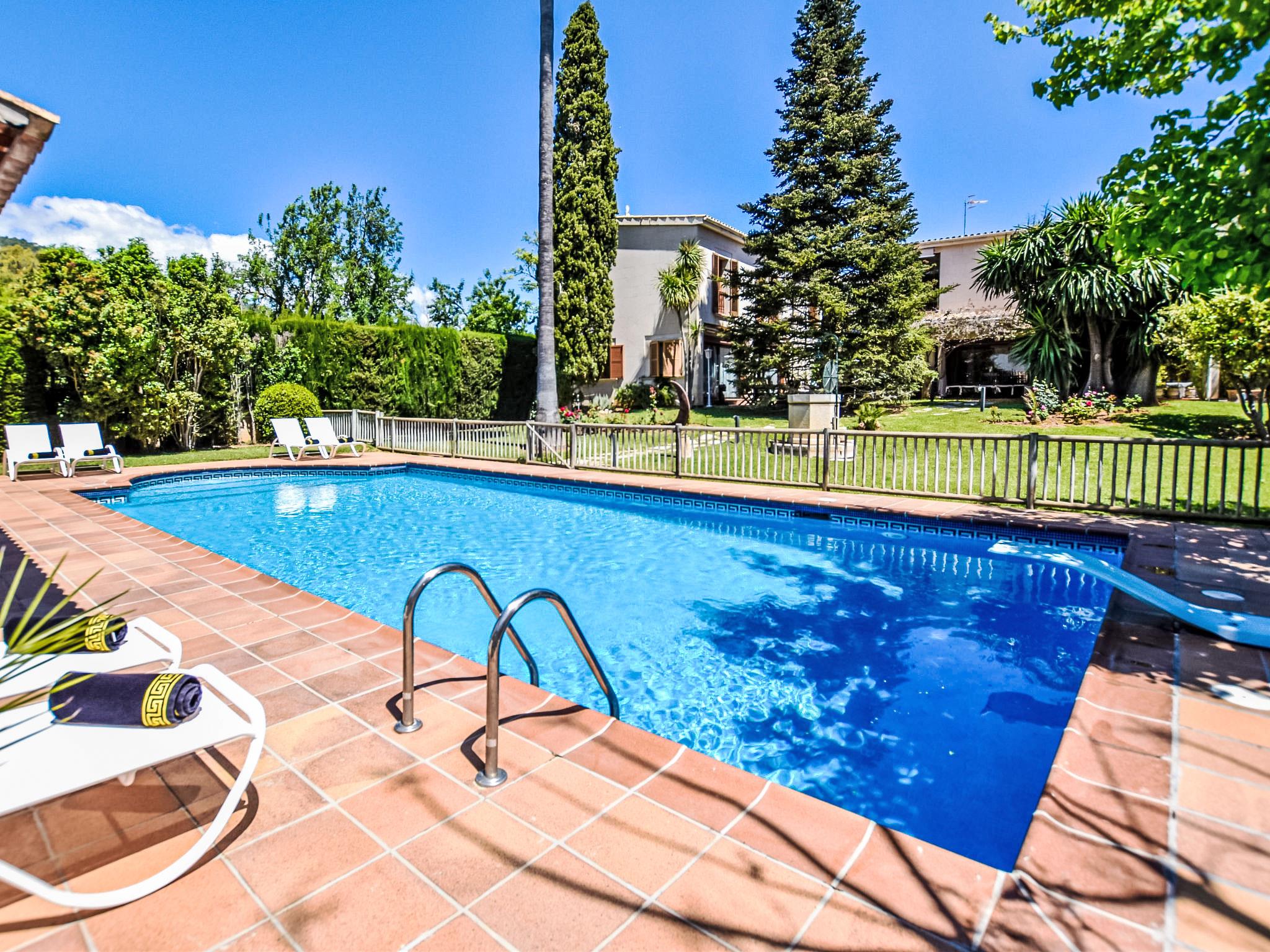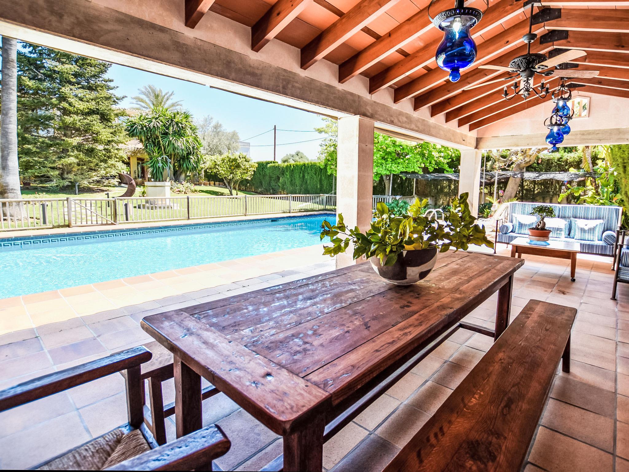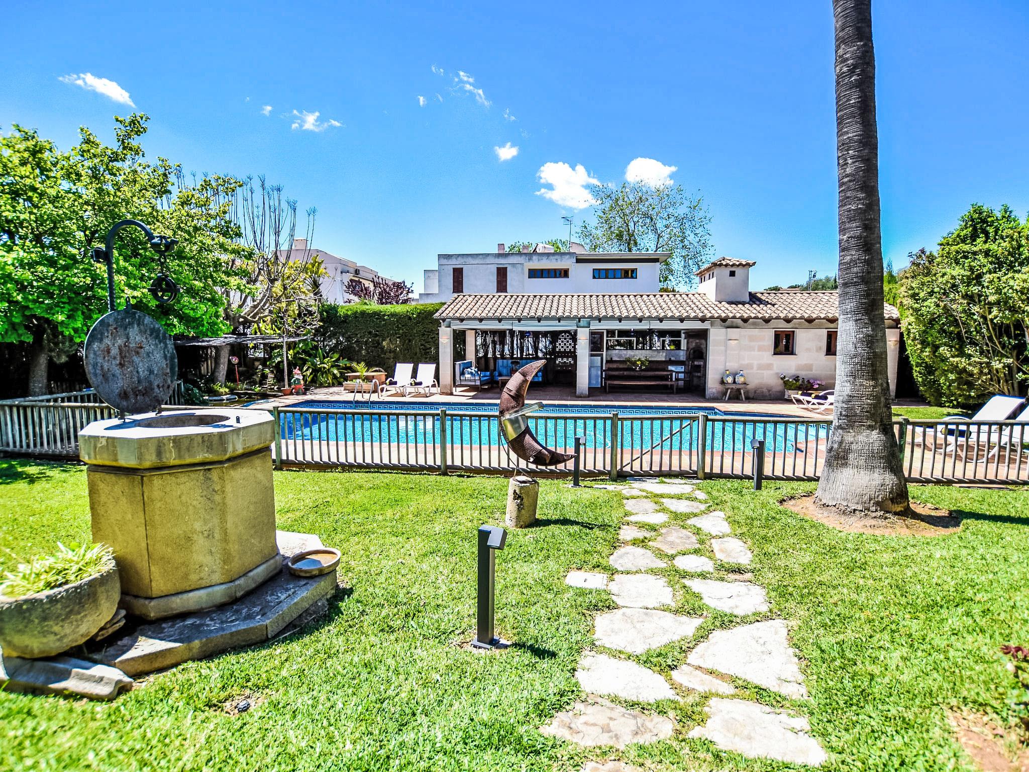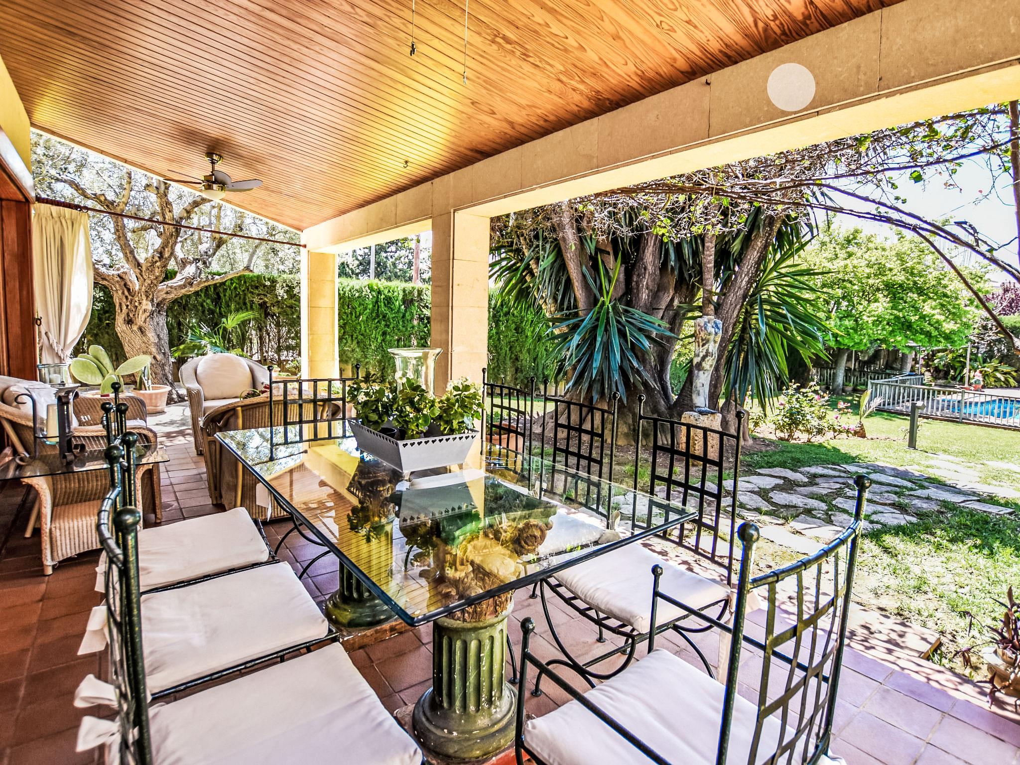 Lloseta: Very large, beautiful, comfortable villa "Can Joan", 2 storeys. In the resort, 600 m from the centre, in a quiet, sunny position, 1 km from the edge of the forest, 28 km from the sea, 28 km from the beach. Private: beautiful garden with lawn and wildlife garden, swimming pool angular, fenced (12 x 6 m, seasonal availability: 01.May. - 30.Nov.). Shower/WC in the pool area, outdoor shower, table tennis, patio, arbour, pergola, garden furniture, barbecue. In the house: WiFi, table tennis, storage room for bicycles, air conditioning, washing machine, tumble dryer. Shop 600 m, supermarket 700 m, restaurant 400 m, bar 650 m, bakery 600 m, 5 minute walk to the centre, bus stop 1.8 km, railway station 1.8 km, sandy beach "Port d'Alcúdia" 30 km. Sports harbour 30 km, golf course (18 hole) 34 km, sports centre 900 m. Nearby attractions: Monte Es Puig 1 km, Castell d'Alaró 7 km, Santuari De Lluc 13 km, Festival Park Shoping Center 15 km. Please note: suitable for families, suitable for seniors. Object suitable for 10 adults groups of teenagers on request only. Loading and unloading of baggage is possible at the holiday house. Airfield 23 km from the property.