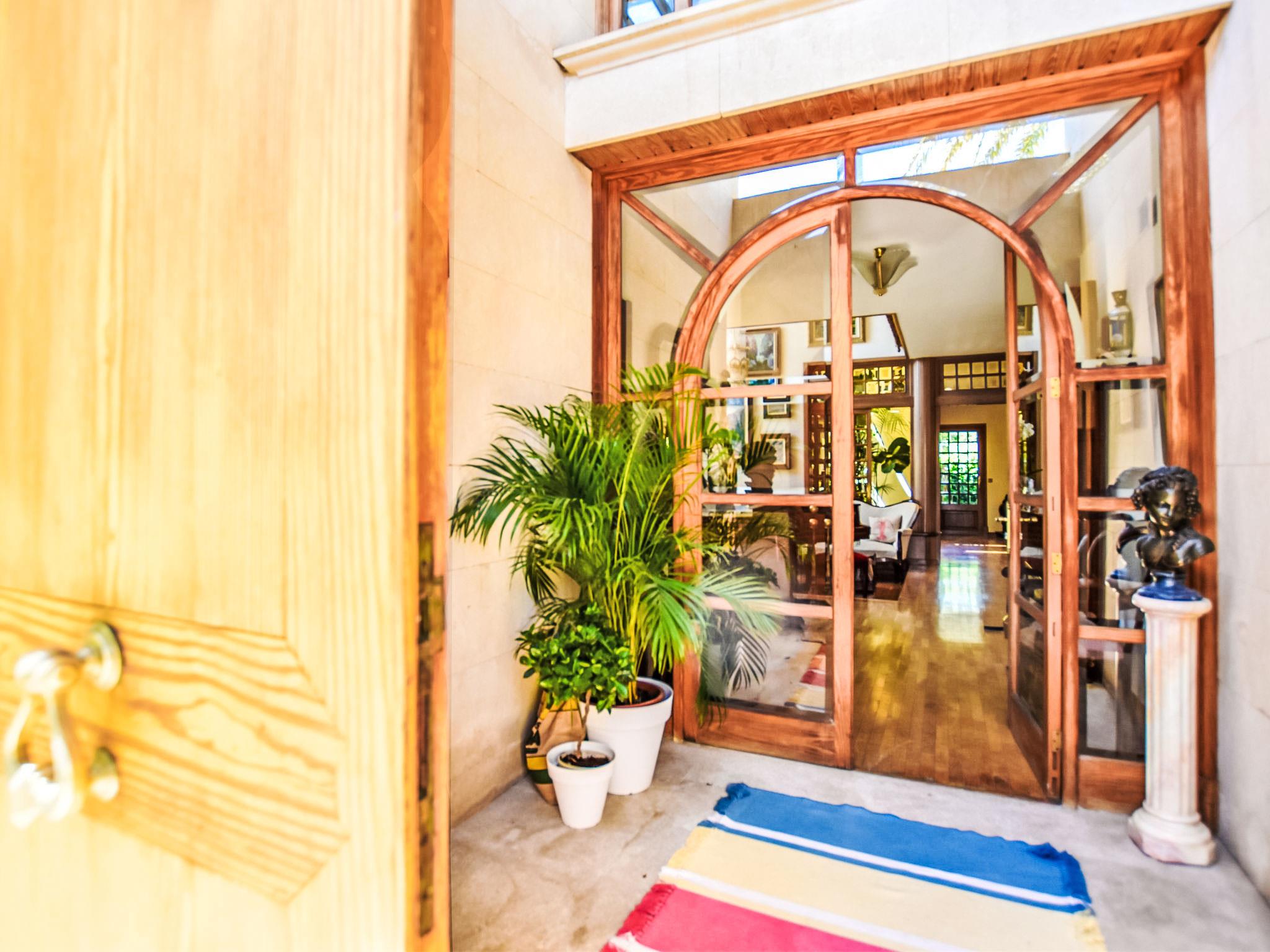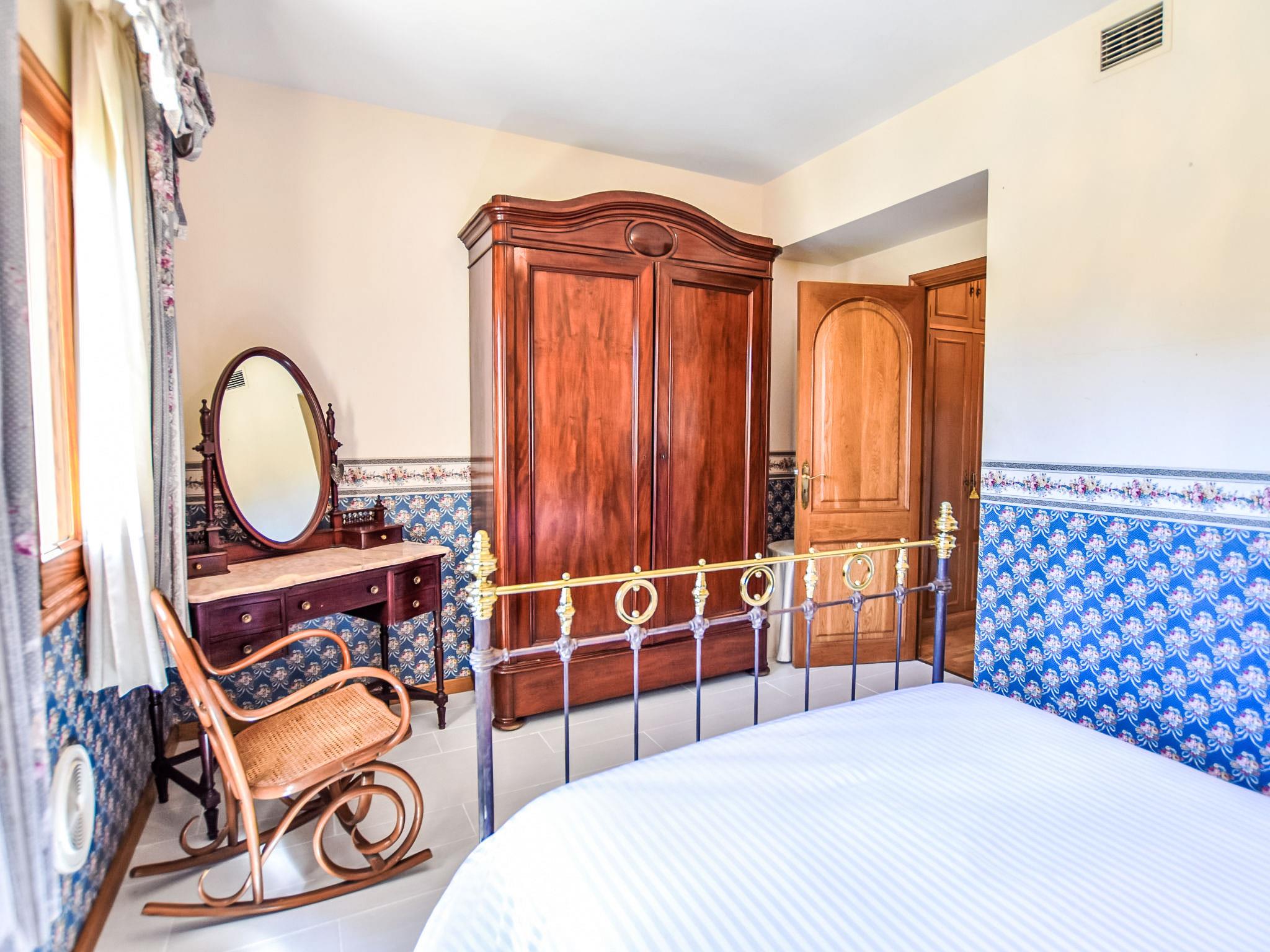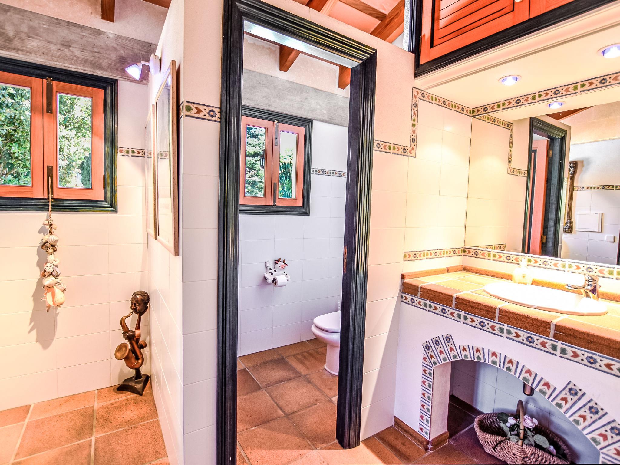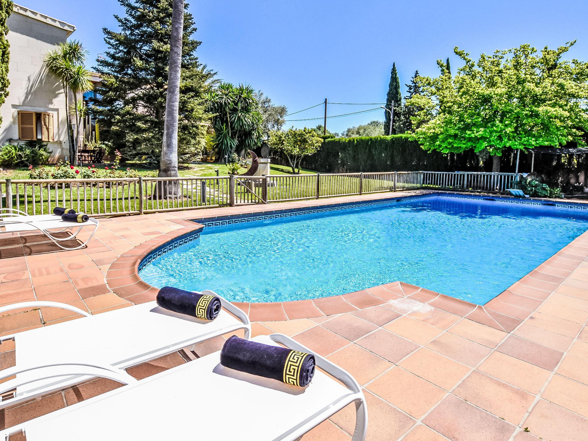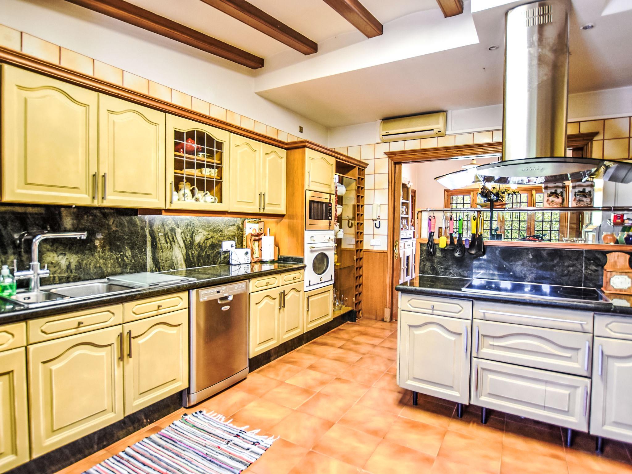 Lloseta: Very large, beautiful, comfortable villa "Can Joan", 2 storeys. In the resort, 600 m from the centre, in a quiet, sunny position, 1 km from the edge of the forest, 28 km from the sea, 28 km from the beach. Private: beautiful garden with lawn and wildlife garden, swimming pool angular, fenced (12 x 6 m, seasonal availability: 01.May. - 30.Nov.). Shower/WC in the pool area, outdoor shower, table tennis, patio, arbour, pergola, garden furniture, barbecue. In the house: WiFi, table tennis, storage room for bicycles, air conditioning, washing machine, tumble dryer. Shop 600 m, supermarket 700 m, restaurant 400 m, bar 650 m, bakery 600 m, 5 minute walk to the centre, bus stop 1.8 km, railway station 1.8 km, sandy beach "Port d'Alcúdia" 30 km. Sports harbour 30 km, golf course (18 hole) 34 km, sports centre 900 m. Nearby attractions: Monte Es Puig 1 km, Castell d'Alaró 7 km, Santuari De Lluc 13 km, Festival Park Shoping Center 15 km. Please note: suitable for families, suitable for seniors. Object suitable for 10 adults groups of teenagers on request only. Loading and unloading of baggage is possible at the holiday house. Airfield 23 km from the property.