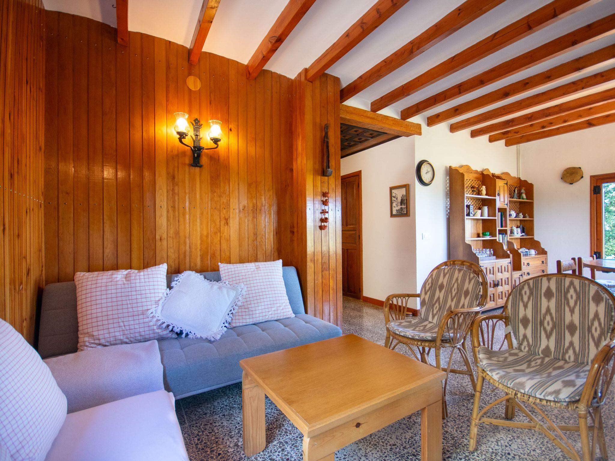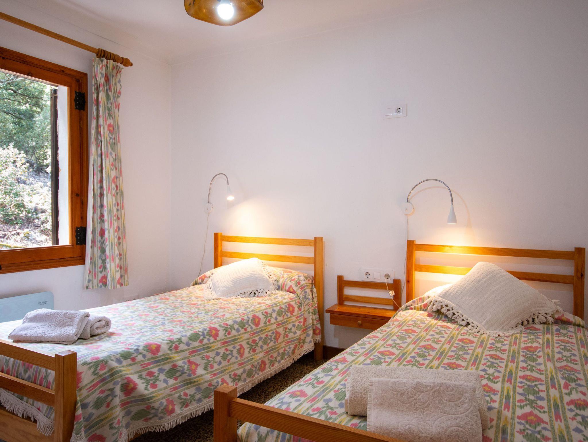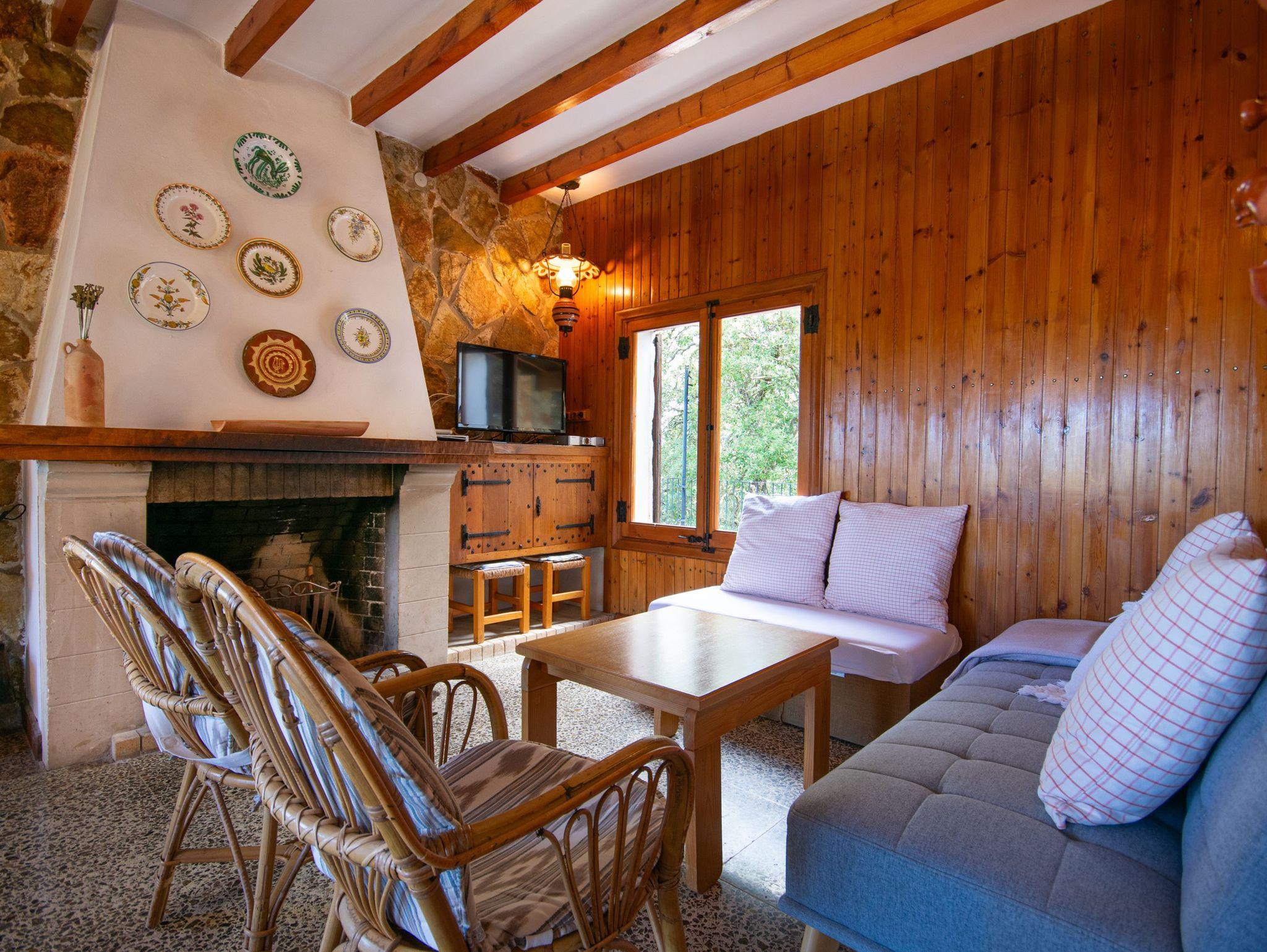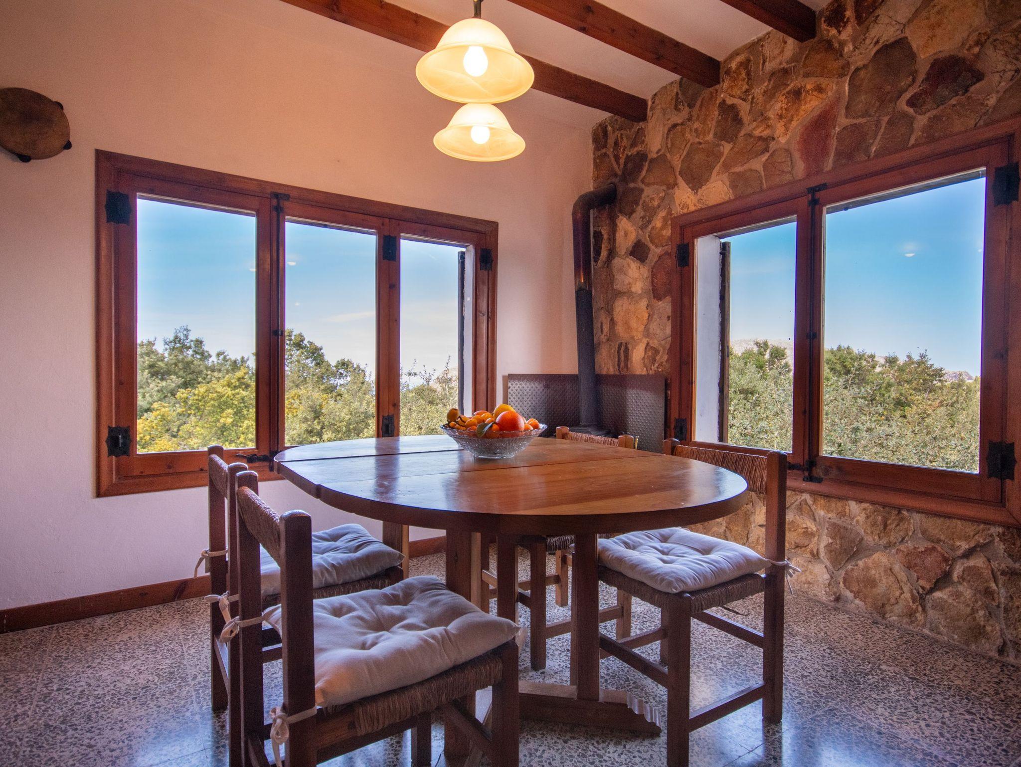 Das Haus bietet Platz für vier Personen und verfügt über zwei helle Schlafzimmer mit Einbauschränken und Fenstern mit Blick auf die mallorquinische Landschaft. Es gibt zwei komplette Badezimmer mit Dusche, ein großzügiges Wohn-Esszimmer mit Kamin und Holzofen ? perfekt für frische Abende ? sowie eine voll ausgestattete Küche mit Zugang zu den beeindruckenden Ausblicken der Natur.