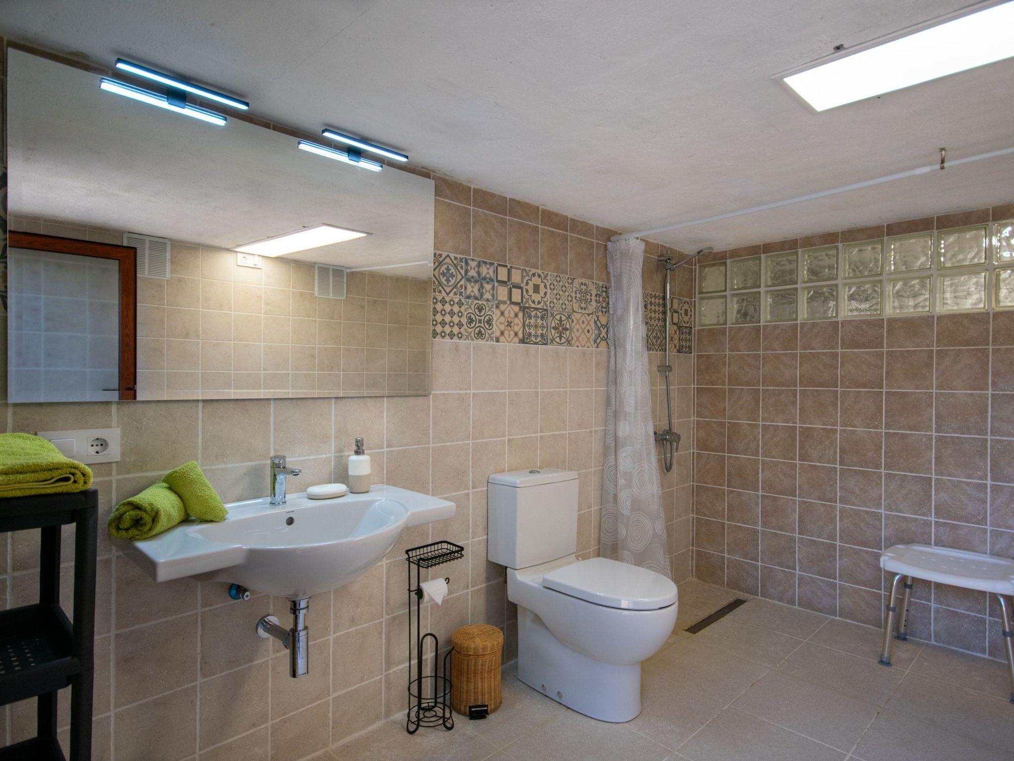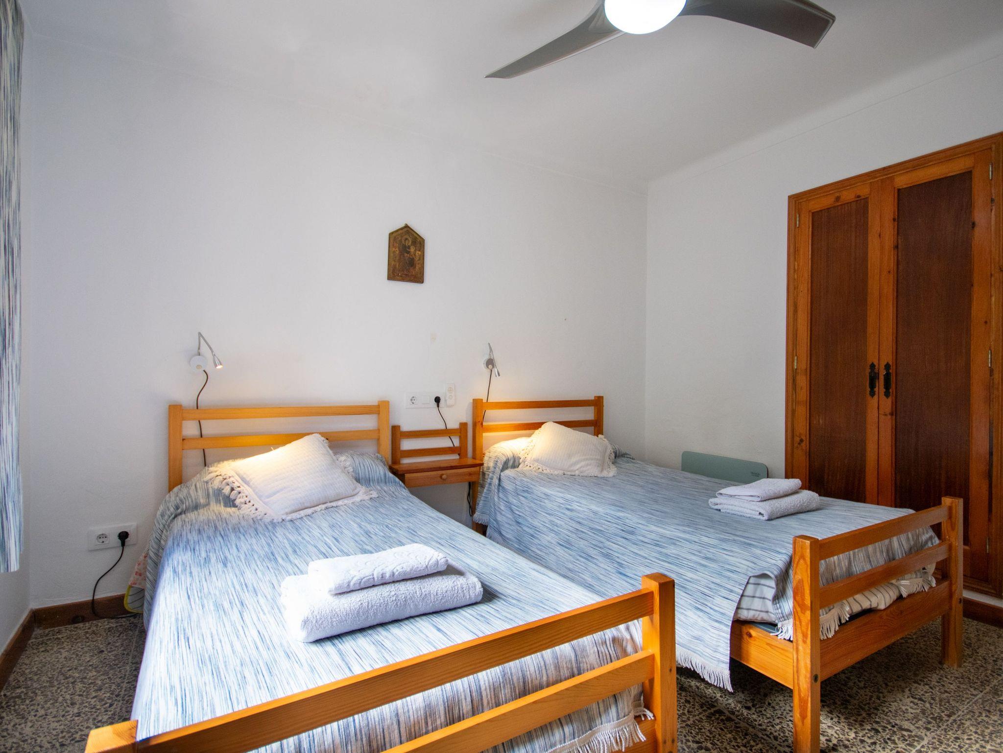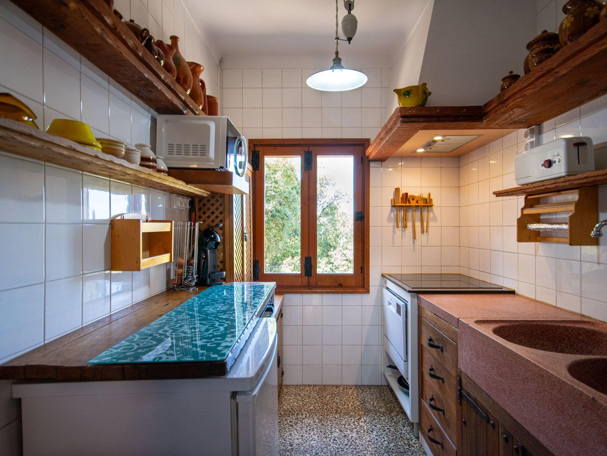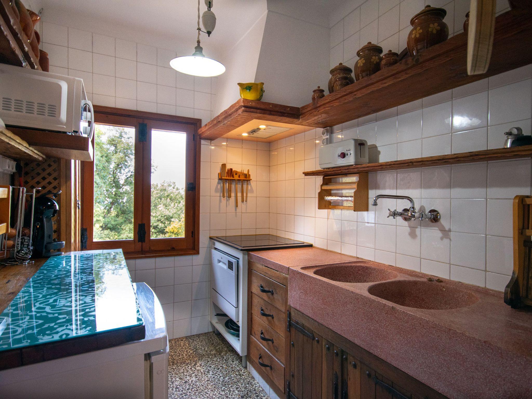 Das Haus bietet Platz für vier Personen und verfügt über zwei helle Schlafzimmer mit Einbauschränken und Fenstern mit Blick auf die mallorquinische Landschaft. Es gibt zwei komplette Badezimmer mit Dusche, ein großzügiges Wohn-Esszimmer mit Kamin und Holzofen ? perfekt für frische Abende ? sowie eine voll ausgestattete Küche mit Zugang zu den beeindruckenden Ausblicken der Natur.