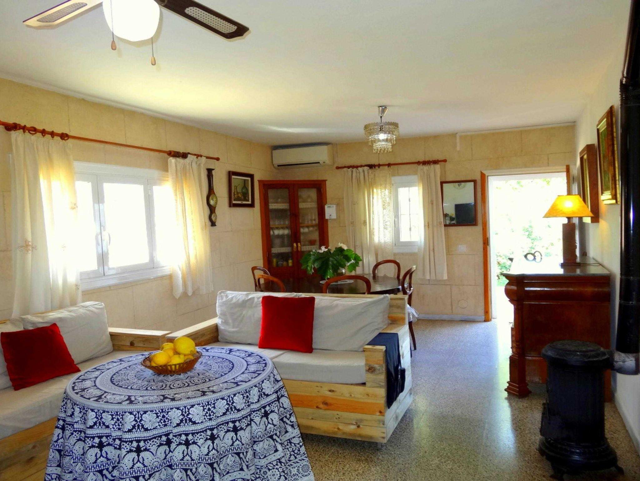 Das Haus bietet zwei Wohnbereiche im mallorquinischen Stil. Der untere Wohnbereich ist mit selbstgebauten Palettensofas, TV, SAT-TV und WLAN ausgestattet. Der obere Wohnbereich verfügt über gemauerte Sofas, SAT-TV und WLAN und bietet zusätzlichen Platz zum Entspannen.