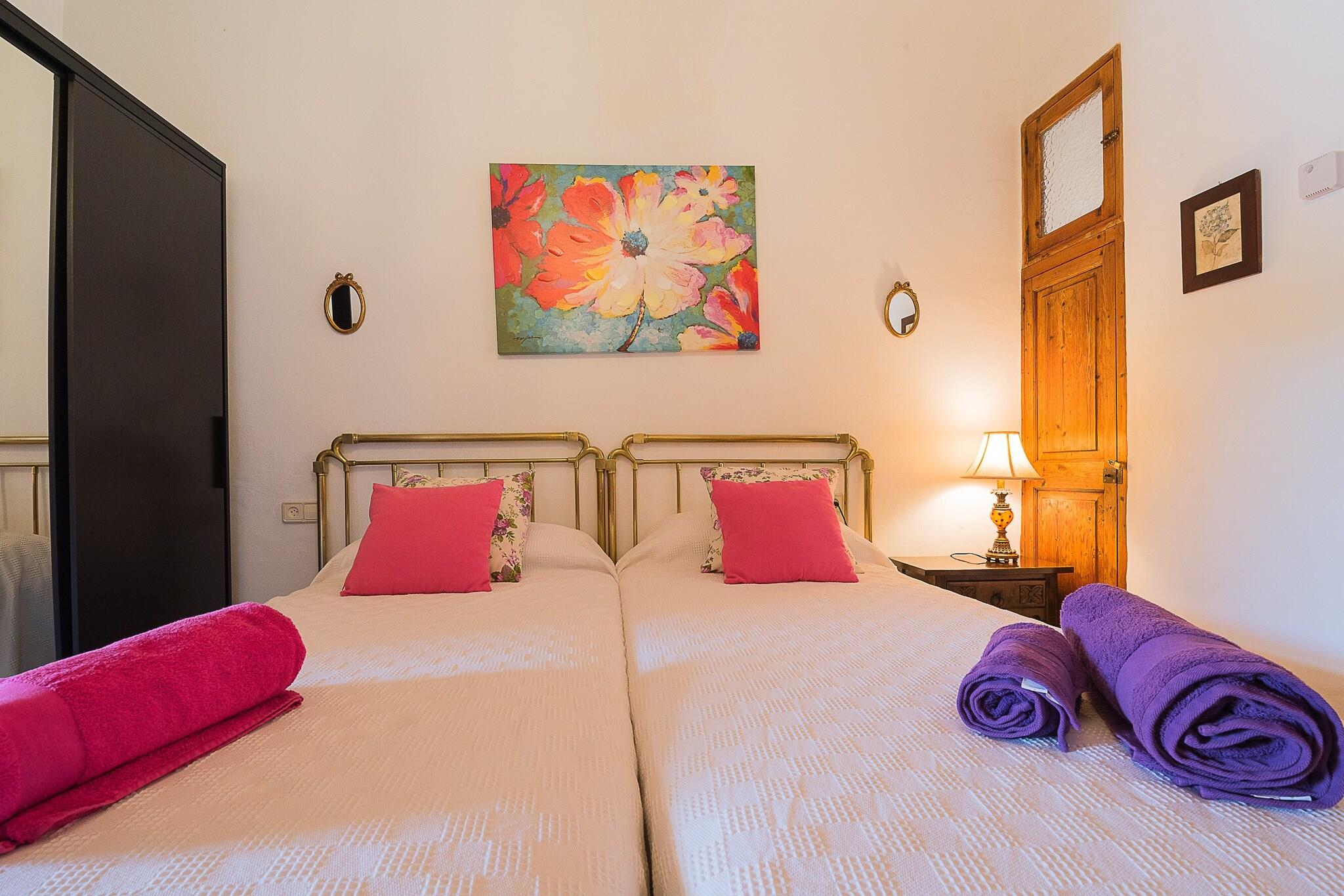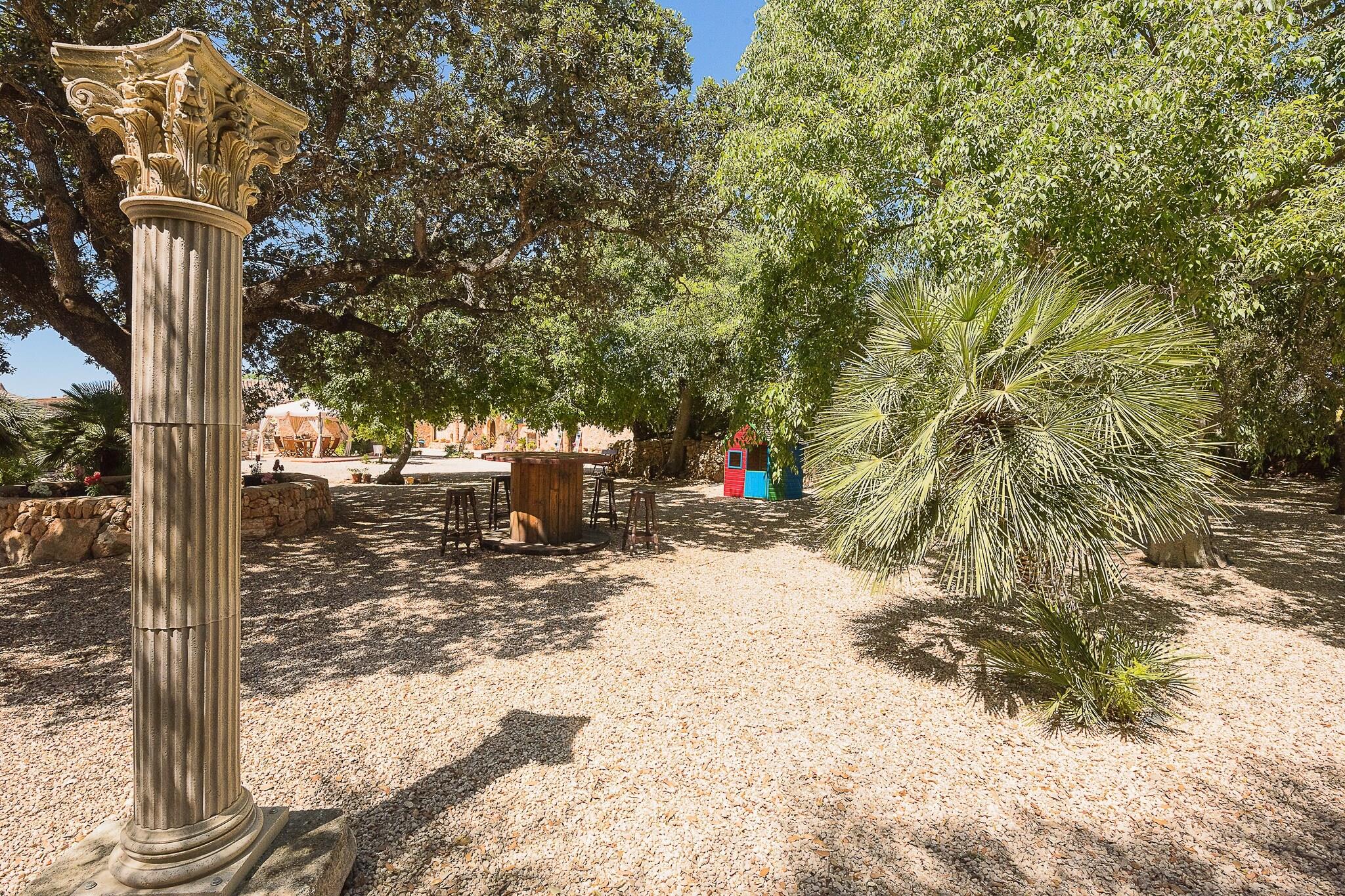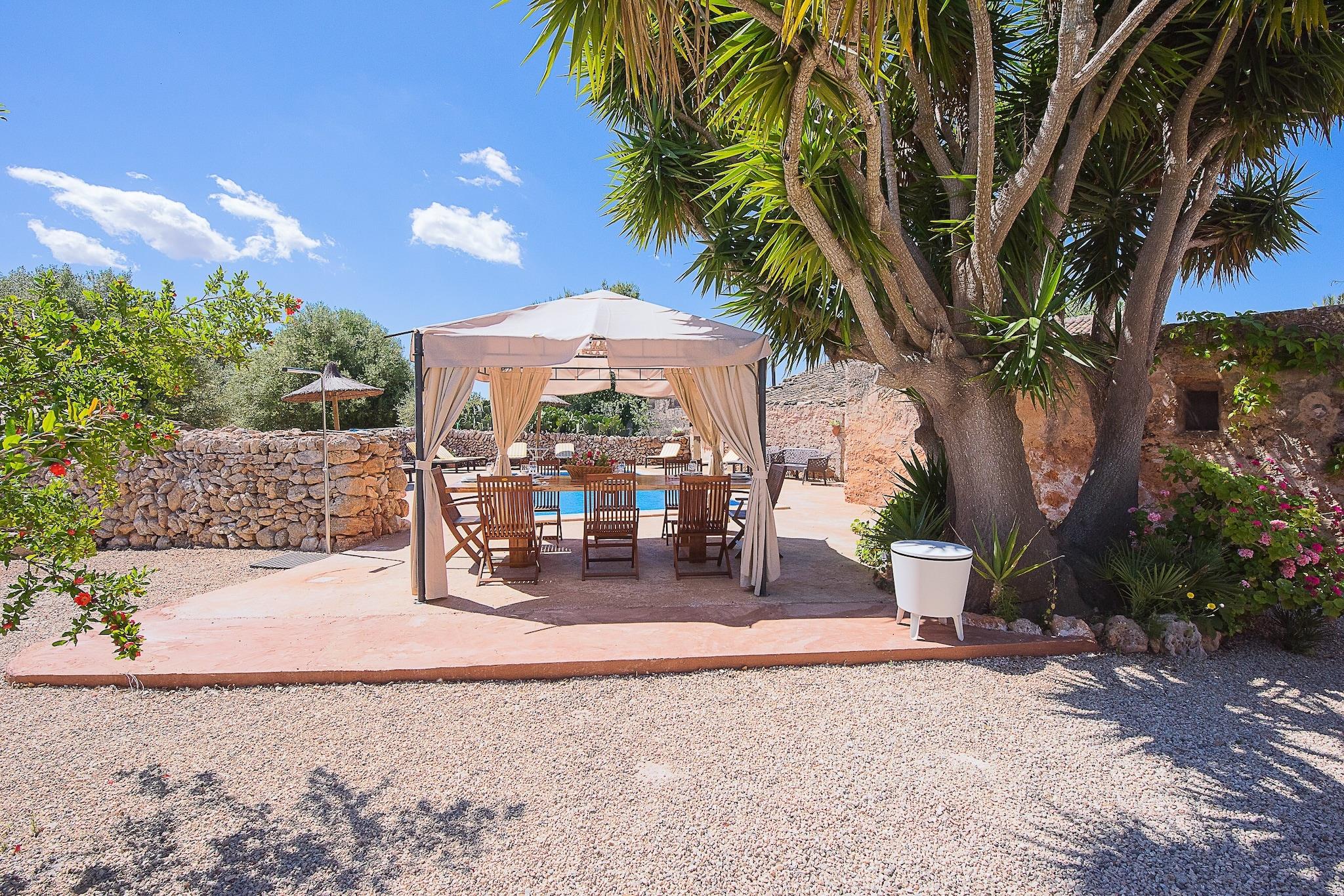 Son Caldes er et charmerende 500 år gammelt mallorcansk landskab, der blander historisk charme med moderne komfort for en uforglemmelig ferie. Denne velbevarede "besiddelse" har tre en-suite soveværelser, en rummelig stue, spiseplads og et fuldt udstyret køkken, hvilket gør det ideelt for familier eller grupper. Hvert af de fire soveværelser har aircondition, hvilket sikrer komfort under varme nætter. Ejendommen kombinerer antikke møbler med moderne bekvemmeligheder, herunder centralvarme og en unik vinkælder med håndlavede tønder over 200 år gamle. Beliggende nær Llucmajor, er huset kun 1,5 km fra byen, som byder på markeder, butikker, barer og restauranter. Smukke strande som Cala Pi og Es Trenc er 12 km væk, og Palmas centrum er kun 15 km, hvilket giver adgang til pulserende byattraktioner. Den nærliggende Son Antem-golfbane ligger 17 km fra huset, og offentlig transport er tilgængelig med et busstoppested 1,5 km væk og Palmas togstation 20 km væk. Udenfor tilbyder en stor terrasse med pool, liggestole og al fresco spisepladser et afslappende sted at nyde middelhavssolen. Den omkringliggende skov giver en fantastisk udsigt over landskabet. En anden to-etagers bygning omfatter et soveværelse på loftet, opholdsstue og køkken til ekstra gæsteplads. Ejendommen har parkering til fire biler. Bemærk venligst, at kæledyr ikke er tilladt, og ejendommen er ikke egnet til gæster under 25 år, medmindre de er ledsaget af familie.
