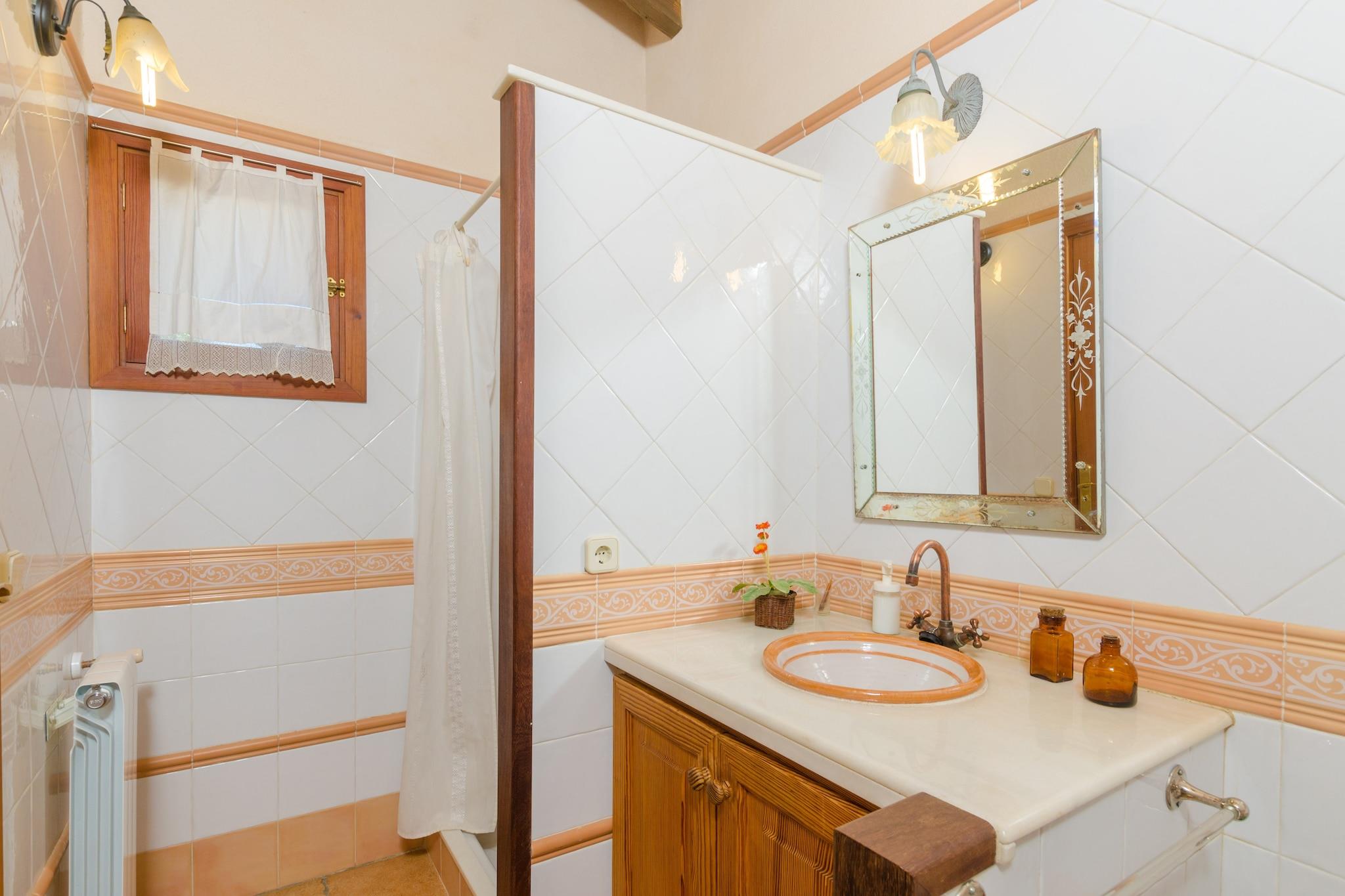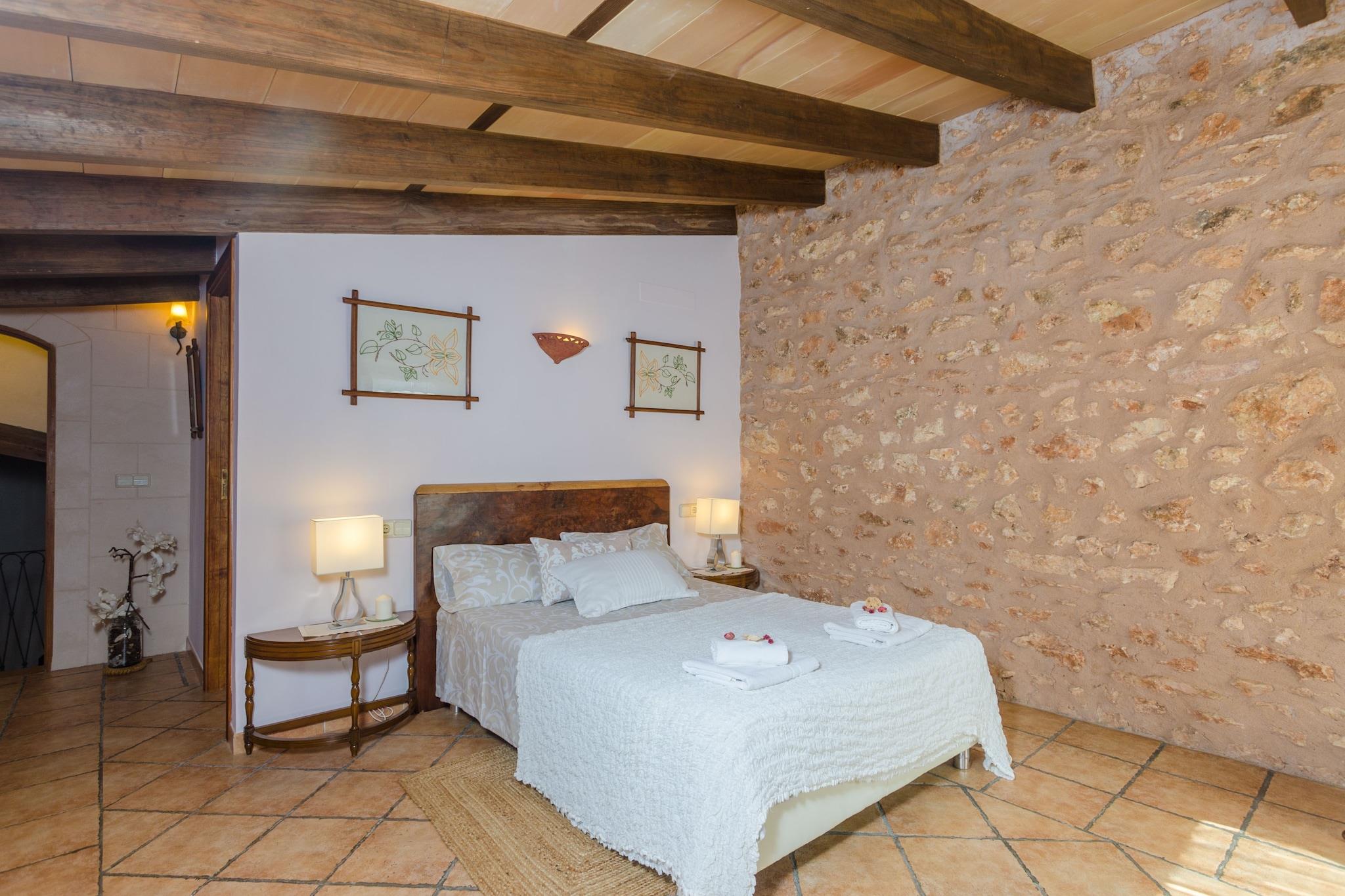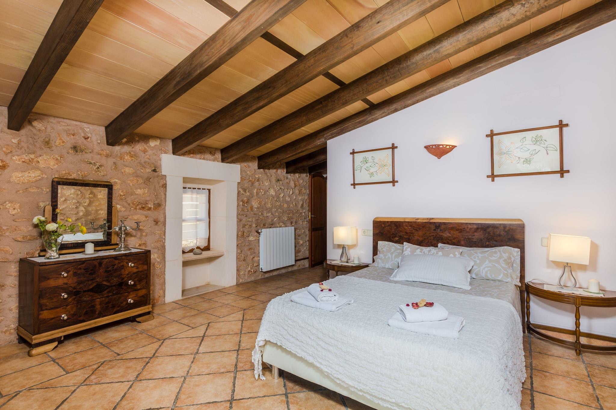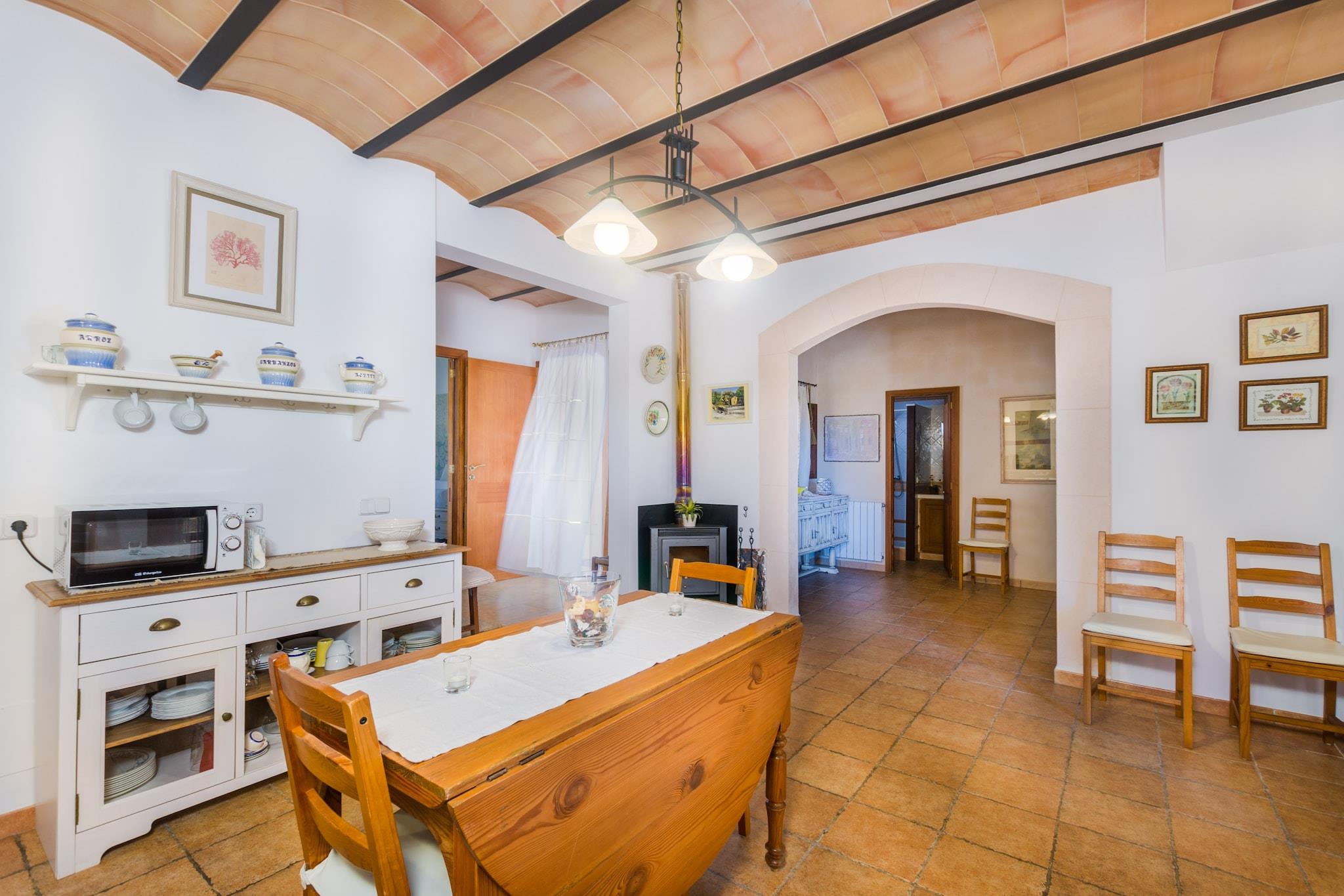 Het privé-chloorzwembad heeft afmetingen van 9,5 mx 4,5 m en een diepte variërend van 0,8 m tot 2 m. Het wordt omgeven door een terras met hangmatten om te zonnebaden. Tijdens de warmste uren kunt u genieten van een drankje in de chill-out, aangezien deze beschikt over een pergola. Daarnaast is er een leuke veranda om avonden met het hele gezin te vieren. Dankzij de barbecue is koken onder de hemel geen probleem. Het hoogtepunt van dit landgoed is de privé paddle-tennisbaan; inclusief rackets en ballen. In deze woning geniet u van totale privacy omdat er geen directe buren zijn. Het interieur van het huis, ingericht in Mallorcaanse stijl en met gerestaureerd meubilair, biedt u een tweede huis. De woonkamer valt op door de prachtige stenen muur en de houtkachel, ideaal om middagen met het gezin door te brengen of satelliettelevisie te kijken. De gaskeuken heeft een eethoek en heeft ook alles wat u nodig heeft om uw favoriete gerechten te bereiden. En in de wasruimte vindt u een wasmachine, een strijkijzer en een strijkplank. Op de begane grond bevindt zich een slaapkamer met een tweepersoonsbed, een en-suite badkamer met douche en ruimte voor het plaatsen van een kinderbedje. De overige drie slaapkamers, allemaal op de eerste verdieping, zijn als volgt uitgerust: één met een tweepersoonsbed en een en-suite badkamer met hydromassagebad. De andere twee met twee eenpersoonsbedden. Elke kamer heeft een kast en een ventilator. Wat de badkamers betreft, vindt u twee badkamers op de begane grond en één op de eerste verdieping, allemaal met douche. De omgeving van het huis doet u alle stress vergeten en is ideaal als u even weg wilt zijn van het toerisme en wilt genieten van een landelijke vakantie. In minder dan 20 minuten rijden bereikt u echter de kust en Cala Pi, een zandbaai met een bijzondere charme. Over het algemeen heeft het zuiden veel prachtige stranden, b.v. Es Trenc, Sa Rapita en Ses Covetes. De steden Llucmajor en Campos bieden alles wat u nodig heeft tijdens uw verblijf. In de buurt van Llucmajor liggen de Talayots van Capocorb, overblijfselen van een oude Mallorcaanse stad. Aan de kust bevindt zich de vuurtoren van Cap Blanc, die in 1863 werd ingehuldigd. Opmerking: deze huuraccommodatie accepteert geen klanten onder de 25 jaar, behalve in gevallen waarin het een gezinsverblijf betreft. We hebben kopieën van het identiteitsbewijs van elke persoon nodig om de reservering te kunnen accepteren. Voor eventuele extra kosten kunt u contact opnemen met de adverteerder. Huisdieren zijn welkom. Het vieren van evenementen is niet toegestaan. Er is buiten parkeergelegenheid voor 6 auto's. Afstanden Strand: 13 km - Platja de Cala Pi Luchthaven: 28,8 km - Son Sant Joan, Palma Golfbaan: 10,7 km - Golf Son Antem, Llucmajor Stad: 7 km - Llucmajor Treinstation: 33,6 km - Intermodaal station, Palma Bushalte: 8,4 km - Llucmajor Veerboot: 34,1 km - Haven van Palma Ziekenhuis: 31,2 km - Ziekenhuis Son Llà tzer, Palma Toeristenvergunning: ETV/4894Bij de ingang dient u de Ecotasa (toeristenbelasting van de Balearen) contant te betalen. Het bedrag varieert tussen EURO 0,55 / per nacht per persoon in het laagseizoen en EURO 2,2 / per nacht per persoon in het hoogseizoen. Vanaf de negende dag wordt het met de helft verminderd. Personen onder de 16 jaar uitgesloten. Bij de ingang dient u de borg rechtstreeks aan de eigenaar te betalen.