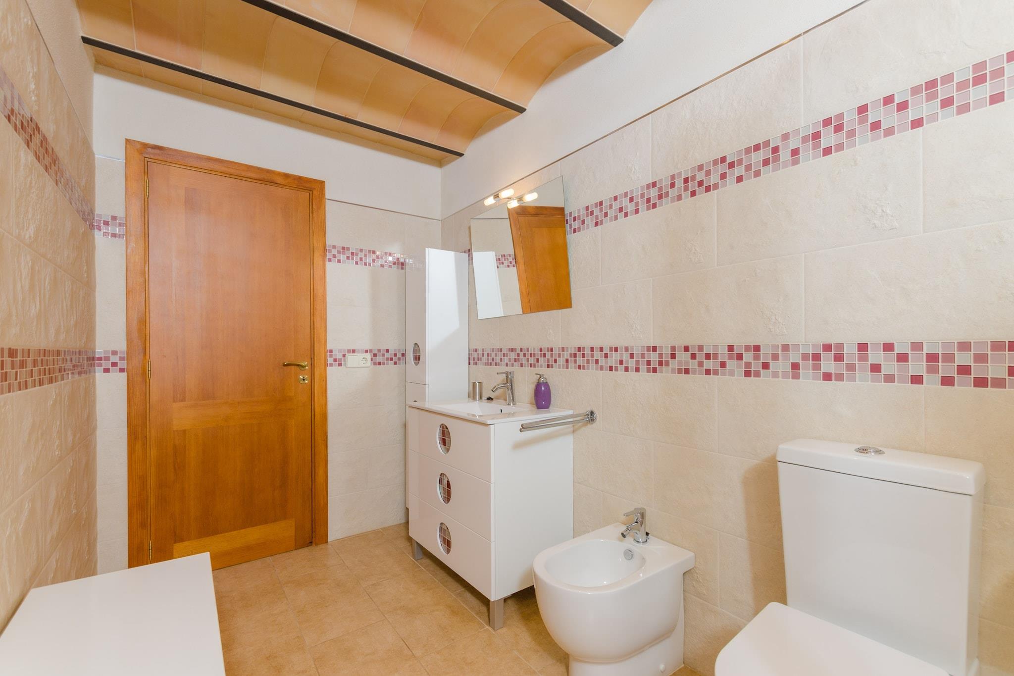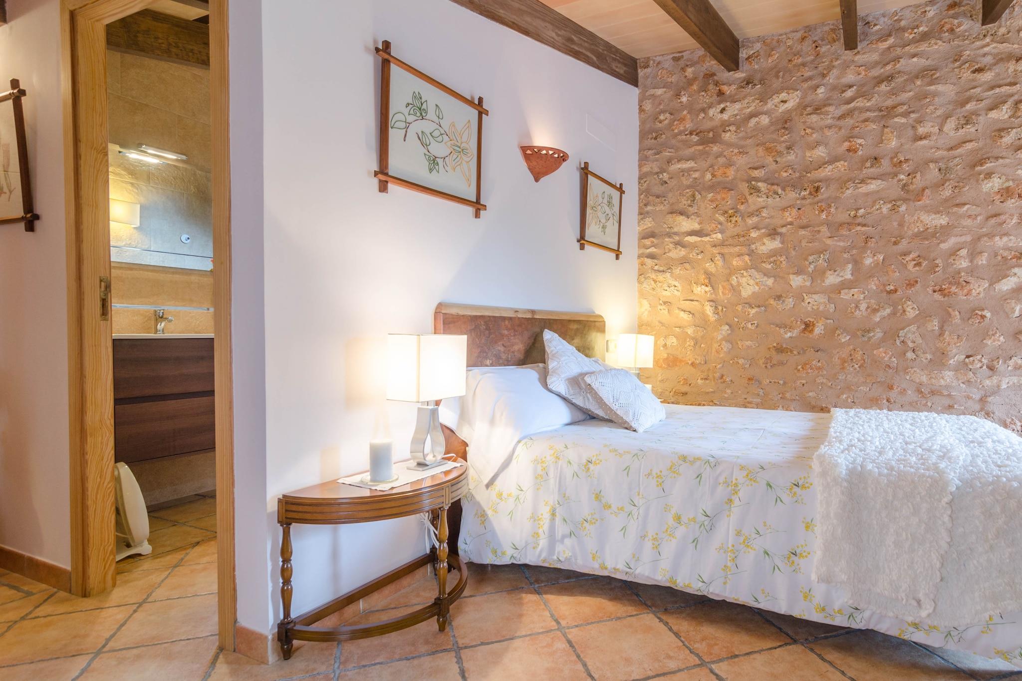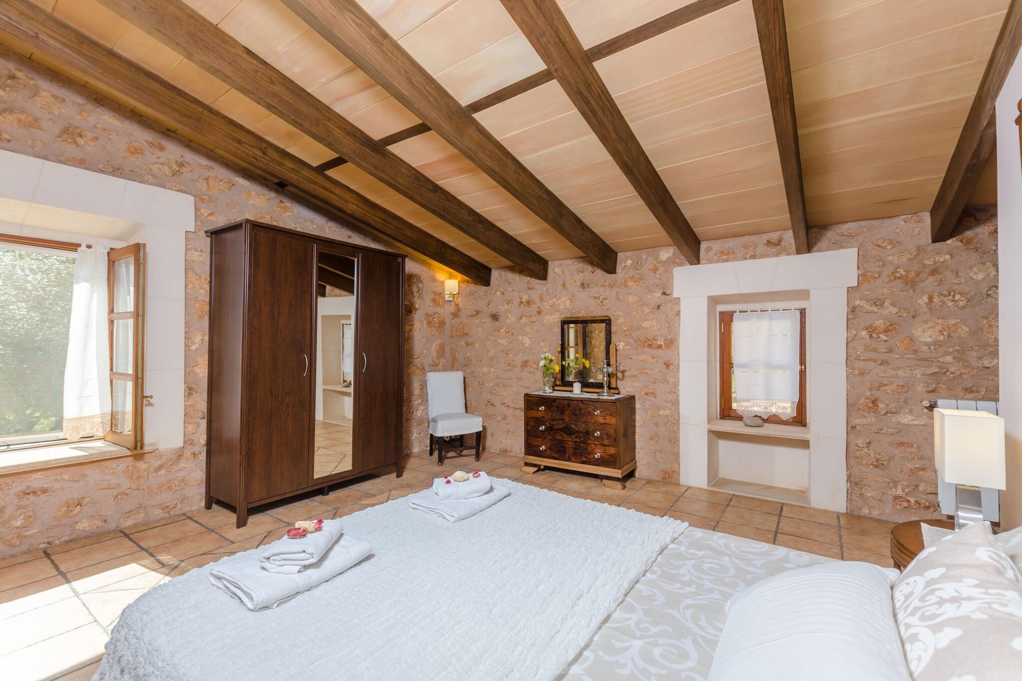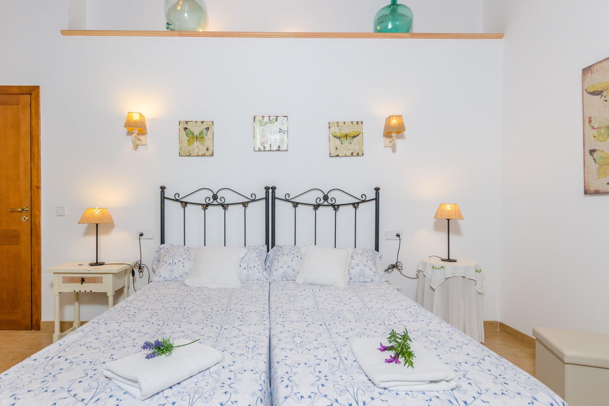 Het privé-chloorzwembad heeft afmetingen van 9,5 mx 4,5 m en een diepte variërend van 0,8 m tot 2 m. Het wordt omgeven door een terras met hangmatten om te zonnebaden. Tijdens de warmste uren kunt u genieten van een drankje in de chill-out, aangezien deze beschikt over een pergola. Daarnaast is er een leuke veranda om avonden met het hele gezin te vieren. Dankzij de barbecue is koken onder de hemel geen probleem. Het hoogtepunt van dit landgoed is de privé paddle-tennisbaan; inclusief rackets en ballen. In deze woning geniet u van totale privacy omdat er geen directe buren zijn. Het interieur van het huis, ingericht in Mallorcaanse stijl en met gerestaureerd meubilair, biedt u een tweede huis. De woonkamer valt op door de prachtige stenen muur en de houtkachel, ideaal om middagen met het gezin door te brengen of satelliettelevisie te kijken. De gaskeuken heeft een eethoek en heeft ook alles wat u nodig heeft om uw favoriete gerechten te bereiden. En in de wasruimte vindt u een wasmachine, een strijkijzer en een strijkplank. Op de begane grond bevindt zich een slaapkamer met een tweepersoonsbed, een en-suite badkamer met douche en ruimte voor het plaatsen van een kinderbedje. De overige drie slaapkamers, allemaal op de eerste verdieping, zijn als volgt uitgerust: één met een tweepersoonsbed en een en-suite badkamer met hydromassagebad. De andere twee met twee eenpersoonsbedden. Elke kamer heeft een kast en een ventilator. Wat de badkamers betreft, vindt u twee badkamers op de begane grond en één op de eerste verdieping, allemaal met douche. De omgeving van het huis doet u alle stress vergeten en is ideaal als u even weg wilt zijn van het toerisme en wilt genieten van een landelijke vakantie. In minder dan 20 minuten rijden bereikt u echter de kust en Cala Pi, een zandbaai met een bijzondere charme. Over het algemeen heeft het zuiden veel prachtige stranden, b.v. Es Trenc, Sa Rapita en Ses Covetes. De steden Llucmajor en Campos bieden alles wat u nodig heeft tijdens uw verblijf. In de buurt van Llucmajor liggen de Talayots van Capocorb, overblijfselen van een oude Mallorcaanse stad. Aan de kust bevindt zich de vuurtoren van Cap Blanc, die in 1863 werd ingehuldigd. Opmerking: deze huuraccommodatie accepteert geen klanten onder de 25 jaar, behalve in gevallen waarin het een gezinsverblijf betreft. We hebben kopieën van het identiteitsbewijs van elke persoon nodig om de reservering te kunnen accepteren. Voor eventuele extra kosten kunt u contact opnemen met de adverteerder. Huisdieren zijn welkom. Het vieren van evenementen is niet toegestaan. Er is buiten parkeergelegenheid voor 6 auto's. Afstanden Strand: 13 km - Platja de Cala Pi Luchthaven: 28,8 km - Son Sant Joan, Palma Golfbaan: 10,7 km - Golf Son Antem, Llucmajor Stad: 7 km - Llucmajor Treinstation: 33,6 km - Intermodaal station, Palma Bushalte: 8,4 km - Llucmajor Veerboot: 34,1 km - Haven van Palma Ziekenhuis: 31,2 km - Ziekenhuis Son Llà tzer, Palma Toeristenvergunning: ETV/4894Bij de ingang dient u de Ecotasa (toeristenbelasting van de Balearen) contant te betalen. Het bedrag varieert tussen EURO 0,55 / per nacht per persoon in het laagseizoen en EURO 2,2 / per nacht per persoon in het hoogseizoen. Vanaf de negende dag wordt het met de helft verminderd. Personen onder de 16 jaar uitgesloten. Bij de ingang dient u de borg rechtstreeks aan de eigenaar te betalen.