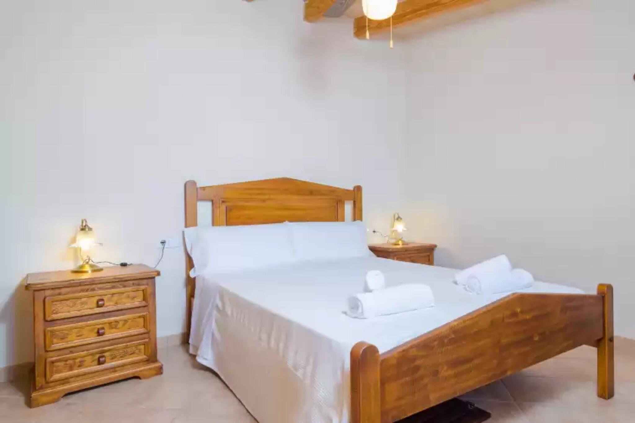 In dit prachtige huis kunt u genieten van een natuurlijke omgeving en de rust die deze met zich meebrengt. Vanaf het chloorbad van 2,30 x 4,10 meter met een diepte variërend van 1,30 tot 1,40 meter kunt u genieten van een prachtig uitzicht op het landschap en de natuur. Na de duik kunt u heerlijk zonnen op een van de ligstoelen. Naast het zwembad en bij de ingang van het huis vinden we de veranda, ingericht met een eettafel voor 6 personen, waar u buiten kunt lunchen en dineren. U heeft toegang tot de boomgaard waar u fruitbomen vindt, zoals sinaasappel- en pruimenbomen, en ook schapen. Het perceel is omheind en de privacy is totaal. Het huis van 190 m2 is volledig verdeeld over één verdieping. Bij binnenkomst vinden we de ruime en lichte, rustieke woon-eetkamer waar u op een van de banken kunt uitrusten terwijl u naar satelliettelevisie kijkt. De eettafel biedt plaats aan 8 personen. De grote gaskeuken beschikt tevens over een kantoorruimte voor 6 personen en is van alle gemakken voorzien. Op koude dagen kun je je opwarmen met de kachels die we in de woonkamer en keuken aantreffen. Om uit te rusten beschikt het huis over drie slaapkamers. De eerste heeft een tweepersoonsbed, kledingkast en ventilator. De tweede, eveneens met een tweepersoonsbed, kledingkast en ventilator, heeft ook een en-suite badkamer met ligbad. De derde slaapkamer heeft twee eenpersoonsbedden en een kledingkast, evenals een en-suite badkamer met douche. Een derde badkamer met douche bedient de rest van het huis. Als u met een baby reist, staan ??een wieg en een kinderstoel tot uw beschikking. Het huis heeft een wasmachine, strijkijzer en strijkplank. Dit prachtige huis ligt aan de voet van Puig de Randa vanwaar je Gracia en Cura kunt zien, prachtige plekken die je kunt bezoeken. In Llucmajor, op slechts 4,5 km afstand, vindt u alle basisvoorzieningen voor een zelfstandig verblijf. Het dichtstbijzijnde strand is Es Trenc, een paradijselijk strand met turquoise water en fijn zand, op slechts 24 km van de accommodatie. Opmerking: deze huuraccommodatie accepteert geen klanten jonger dan 30 jaar, behalve in gevallen waarin het om een ??gezinsverblijf gaat. We hebben kopieën van het identiteitsbewijs van elke persoon nodig om de reservering te kunnen accepteren. Voor eventuele extra kosten kunt u contact opnemen met de adverteerder. Wij accepteren geen huisdieren. Het vieren van evenementen is niet toegestaan. Er is buiten parkeergelegenheid voor 2 auto's. Afstanden Strand: 23,6 km - Es Trenc Luchthaven: 19,7 km - Luchthaven Son Sant Joan Golfbaan: 11,4 km - Golf Son Antem Stad: 4,5 km - Llucmajor Treinstation: 32,9 km - Intermodaal station Palma Bushalte: 4,7 km - Av. Carles V, Llucmajor Veerboot: 31,1 km - Haven van Palma Ziekenhuis: 28,4 km - Son Llà tzer-ziekenhuis Toeristenvergunning: ETV/3886Bij de ingang dient u de borg rechtstreeks aan de eigenaar te betalen.