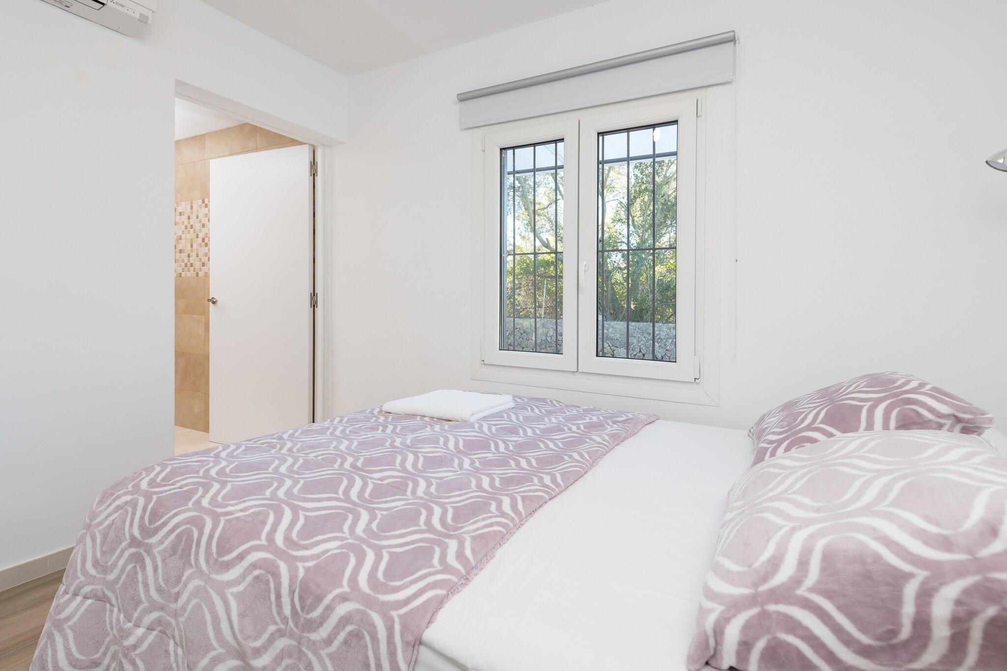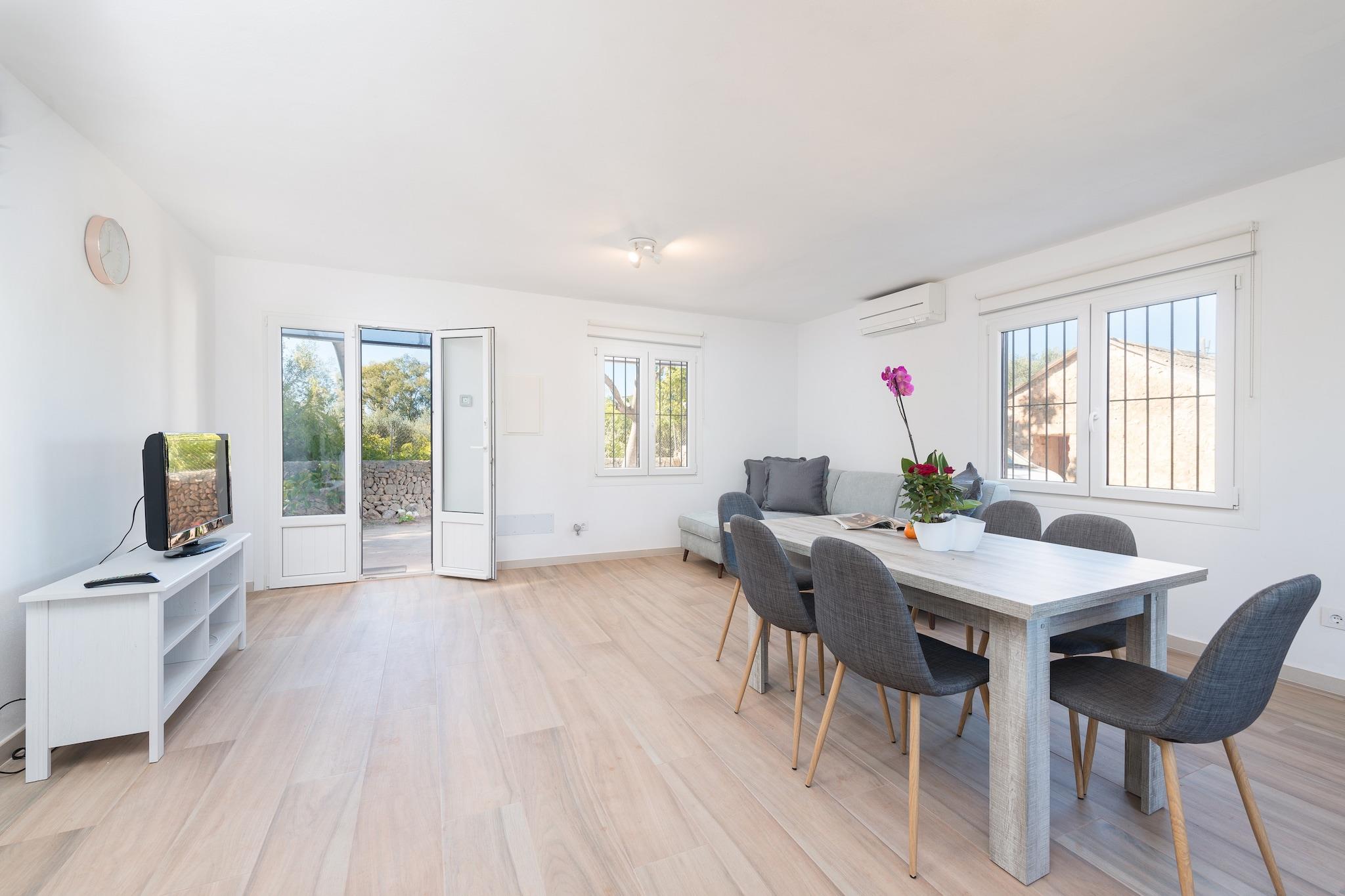 Landstedet i sommerstil omgivet af en smuk grund fuld af citron- og appelsintræer inviterer til at nyde et afslappende ophold i total fred og privatliv. Hver morgen kan du gå udenfor og svælge i de første solstråler, mens du nyder det rene landskab og frisk græsluft. Derefter kan du nyde en lækker morgenmad og klatre op på solterrassen for at solbade på en af de 4 liggestole, mens du beundrer udsigten til markerne. Grillen vil være klar til at afslutte din dag spektakulært! Indenfor overrasker huset med en total moderne og fornyet stil. Et rummeligt område med aircondition byder dig velkommen, med stuen, spisestuen og køkkenet samlet. Den komfortable sofa er perfekt til at sidde og se tv eller bare hvile efter en saftig banket. Køkkenet har en keramisk top, ovn og alt hvad du behøver for at lave mad under din ferie. Vaskerummet har vaskemaskine, strygejern og strygebræt. En lille korridor fører til de to soveværelser, begge med et skab. Den ene har en dobbeltseng, AC og en-suite brusebadeværelse. Den anden har to enkeltsenge, en ventilator og en el-varmer. Der er et andet badeværelse også med bruser til resten af huset. Endelig kan vi forberede en barneseng og en høj stol, hvis du rejser med din baby. Omgivelserne i denne bolig er perfekte for dem, der leder efter en landlig såvel som fredelig ferie langt væk fra hverdagens stress. Byen Llucmajor er imidlertid omkring 5 km væk, omkring 5 minutters kørsel for at nå byens centrum, hvor du vil finde alle nødvendige tjenester såsom restauranter, caféer og supermarkeder. Den nærmeste strand er den af s"Arenal, omkring 11,8 km væk, selvom området kan prale af fantastiske strande og klippefyldte bugter, der er et besøg værd. Som reaktion på Coronavirus (COVID-19) er yderligere sikkerheds- og sanitetsforanstaltninger i kraft på denne ejendom. Turistlicens: ETV/12630