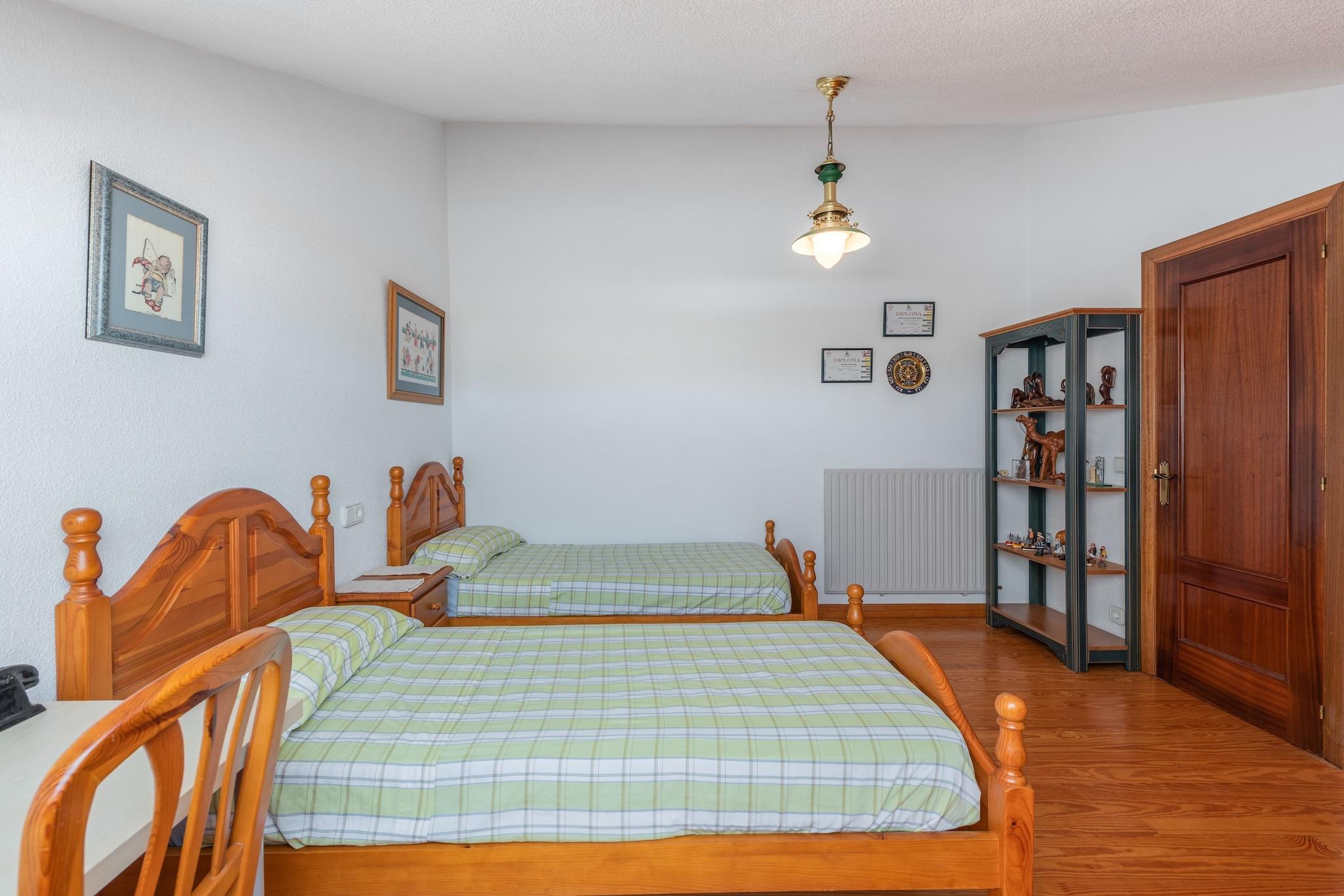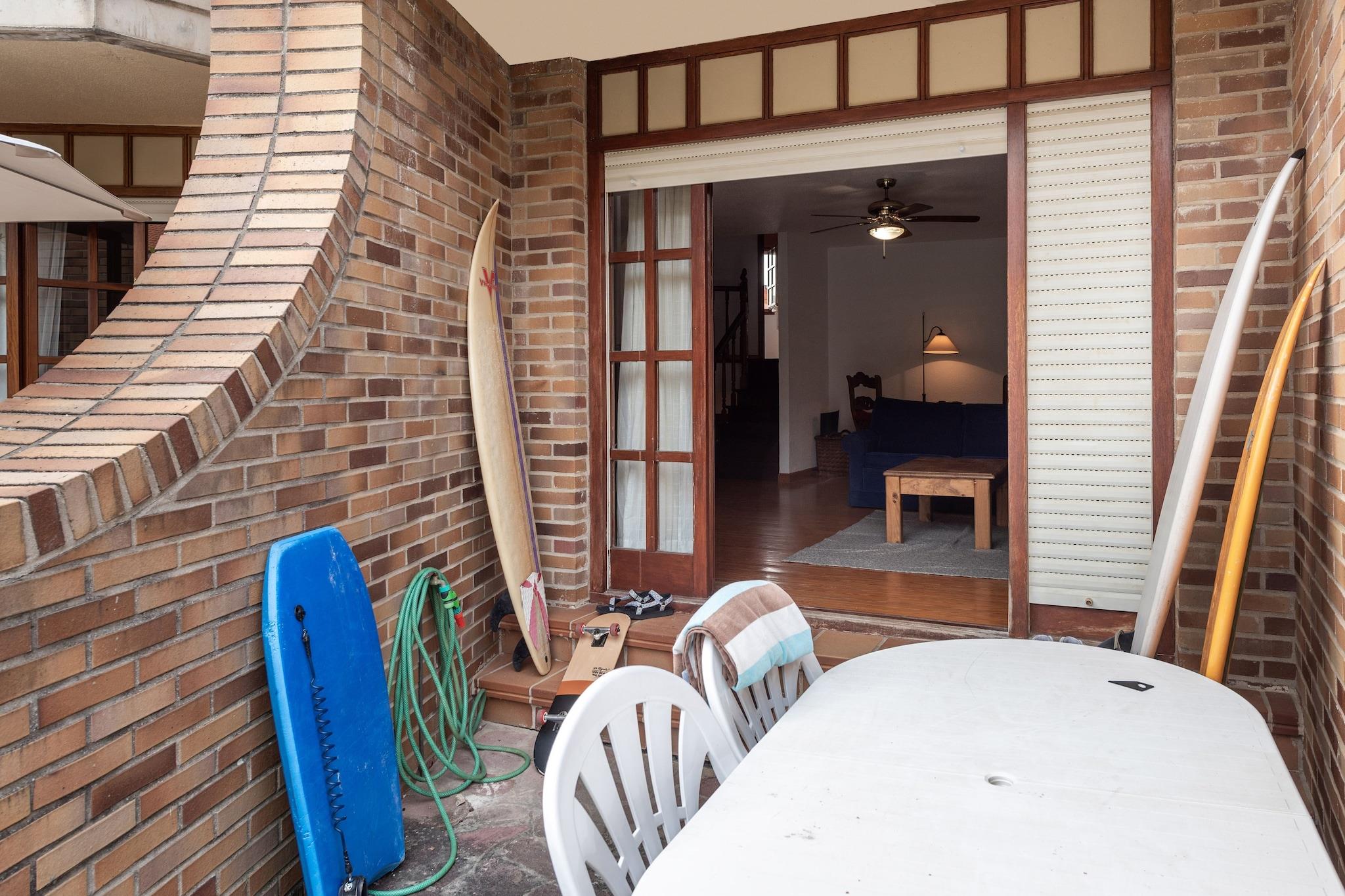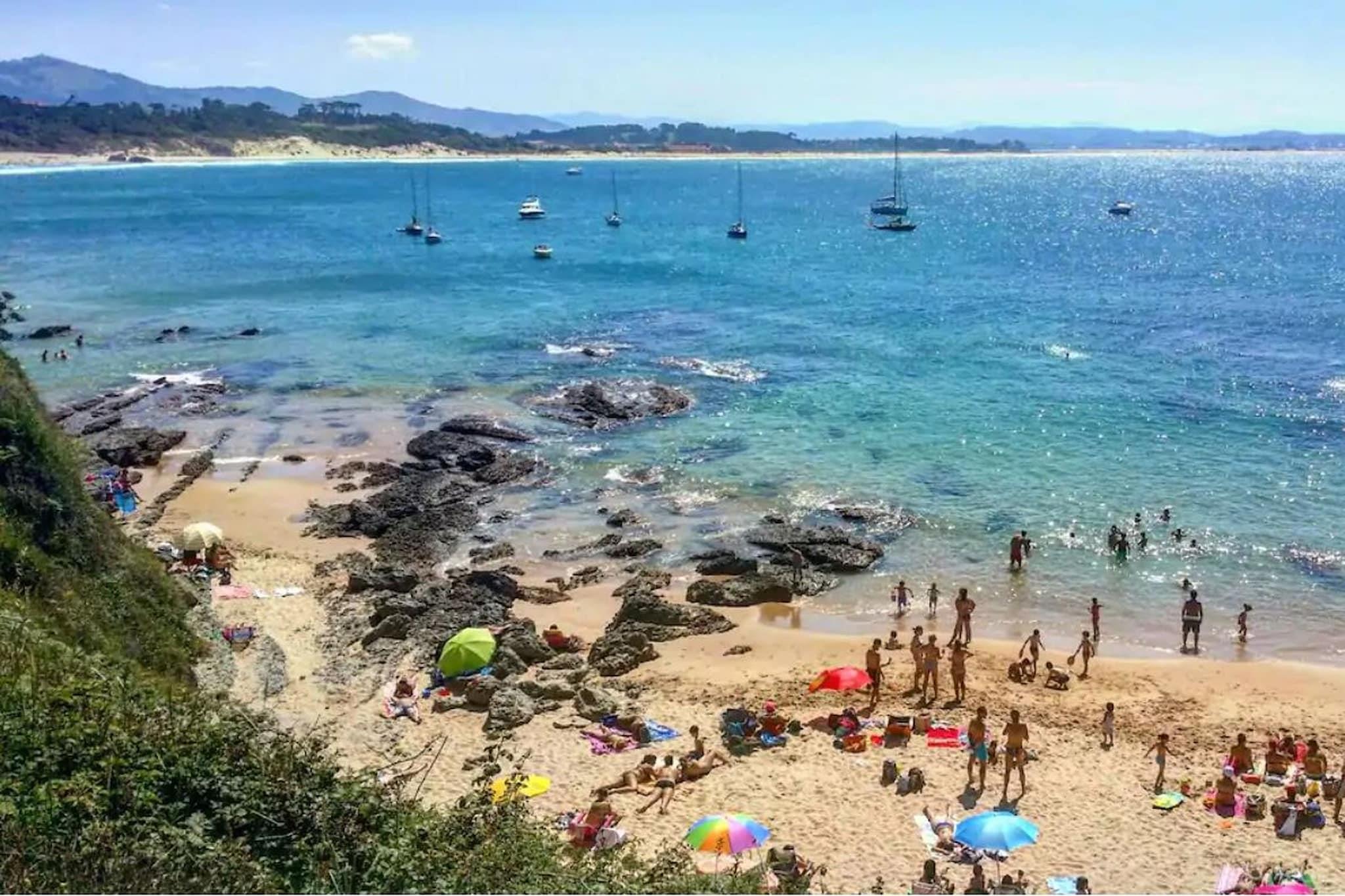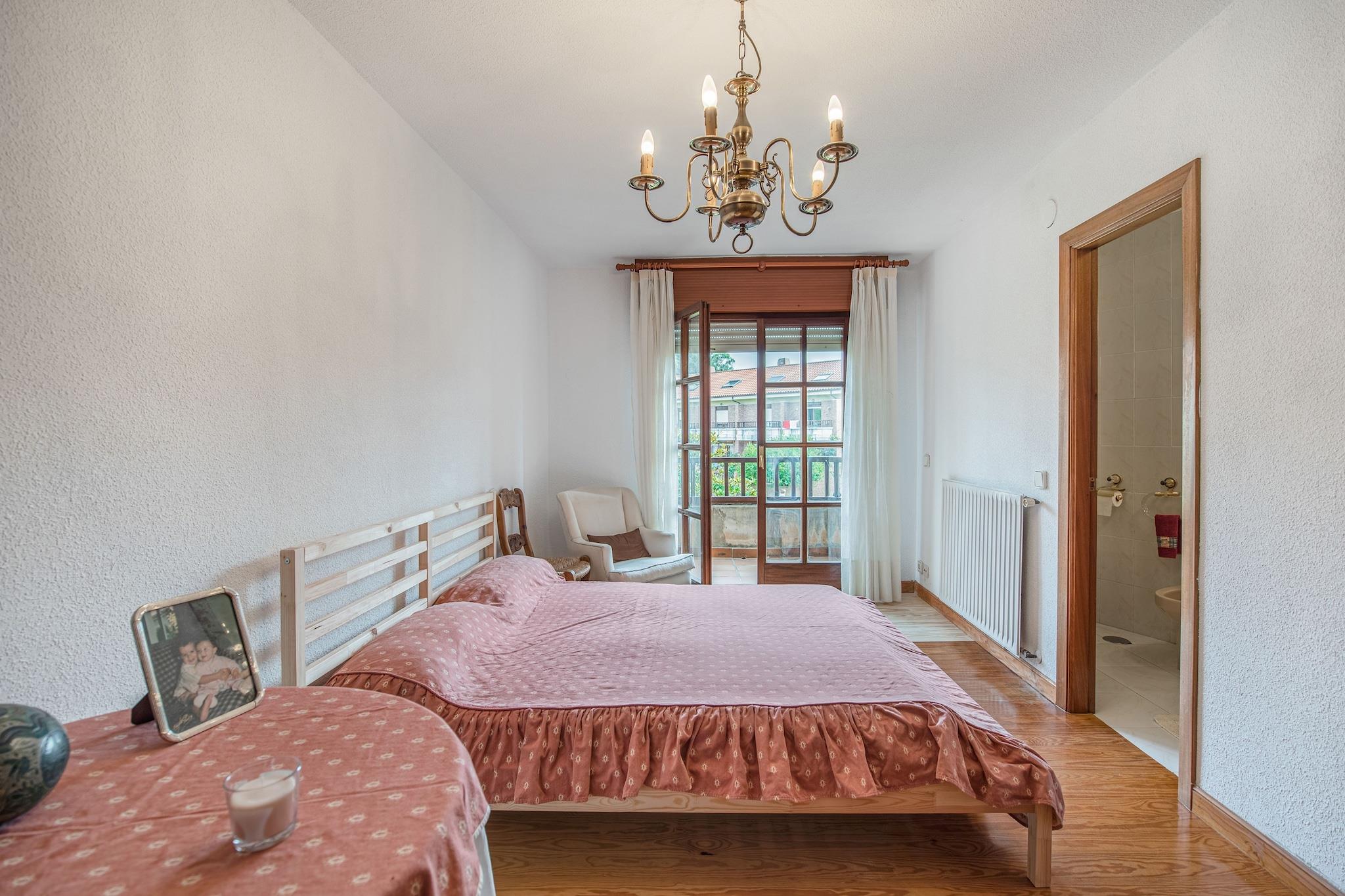 Afslapning ved poolen og terrasse Træd ind i dette rummelige Loredo-feriehus, hvor solfyldte dage venter på den private terrasse eller ved den store swimmingpool. Med en markise til at skærme mod middagssolen byder dette hjem på komfort med en stuepejs, flere balkoner og adgang til et anlagt haveområde. Kæledyr er velkomne, så dine lodne venner kan deltage i det sjove, udforske den sikre terrasse eller slappe af i den fælles have med opsyn. Strand og vandsport i nærheden Kun 200 meter fra den ikoniske Playa Loredo er ejendommen ideel til surfingentusiaster, paddleboarding eller blot slentre langs sandet. Lokale surfskoler, såsom Surf School Loredo, ligger kun en kort gåtur væk. Hunde kan nyde nærliggende kæledyrsvenlige strande, og vandrestierne langs kysten er perfekte til morgenløb med din ledsager. Med restauranter, barer og caféer mindre end fem minutter væk, kan du nyde lokale retter og tapas uden at gå langt fra din hjemmebase. Komfortabel stue og soveværelser Dette hus på flere niveauer har fire soveværelser og fire badeværelser, et fuldt udstyret køkken med opvaskemaskine og et opholds-/spiseområde i åbent plan. Hvert værelse har luft-til-luft varmepumper for komfort året rundt. Uanset om du slapper af indendørs med dit kæledyr på køligere dage eller nyder fælles haveområder, tilbyder dette hjem alle faciliteterne til en mindeværdig ferie. Fra Loredo kan du udforske nærliggende attraktioner som Acantilados de Loredo-klipperne, Parque de la Naturaleza de Cabárceno, eller tage en kort køretur til Santander eller Bilbao.