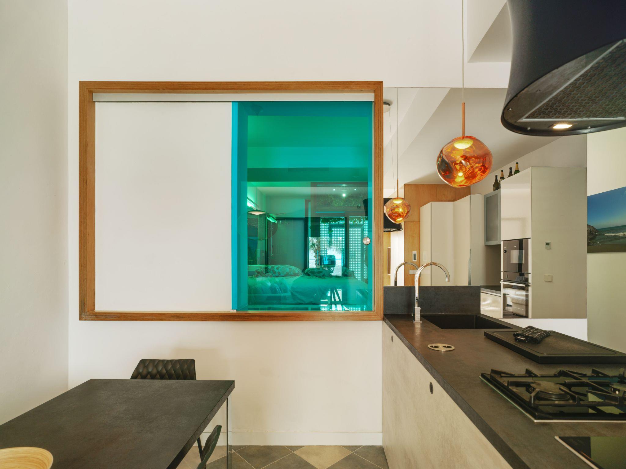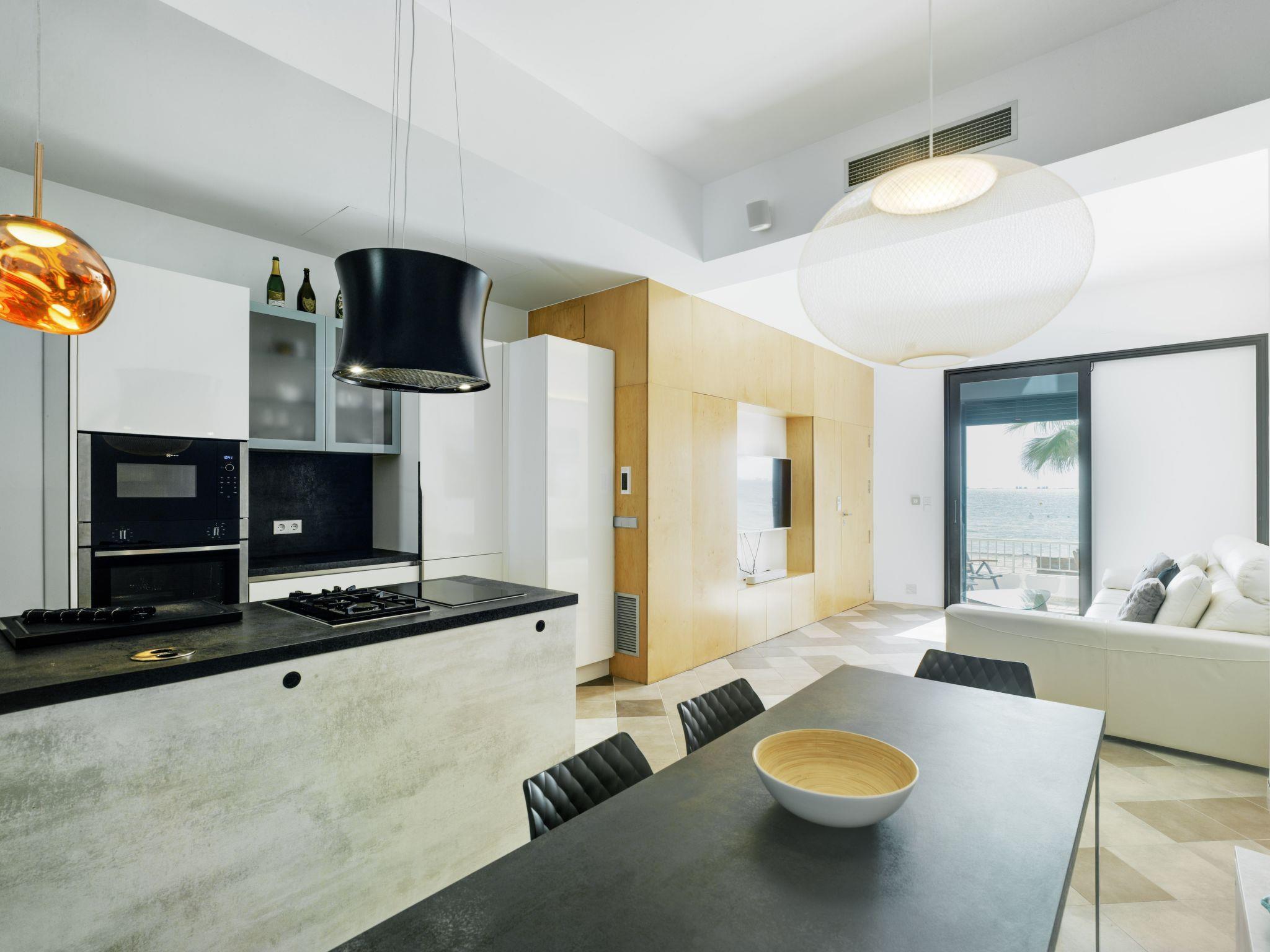 Our flat was designed by a Spanish star architect and has a high-quality design with a "Cape Town look". After the core refurbishment of the house in 2020, we have completely renovated it and made it very open, modern and luxurious. We have tried to avoid artificial air conditioning as far as possible and to allow natural "circulation" throughout the year. Naturally, a high-quality air conditioning system is still installed, which also serves as heating in winter. The open-plan concept means that the flat is flooded with light and offers you a breathtaking play of colours during the day.