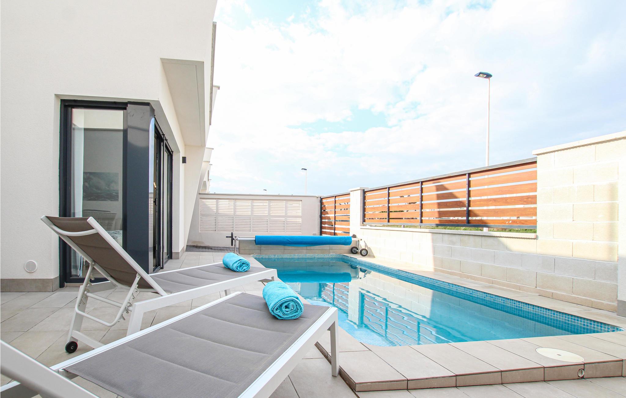 Denne spektakulære, nydesignede ferievilla ligger mindre end 200 m fra havet i Los Alcázares i Murcia-regionen. Los Alcázares ligger på Mar Menor og er med sin syv kilometer lange strand en ideel enklave for vandsportentusiaster.