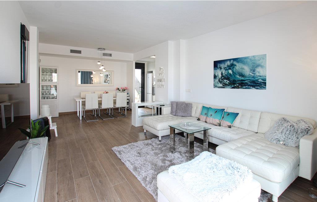 Huset har 3 rummelige, lyse soveværelser med smart tv'er, store skabe og sovepladser for maksimal komfort, 2 badeværelser med let tilgængelige brusere og en moderne stue i bløde farver, der inviterer dig til at slappe af i sofaen. Et fuldt udstyret køkken fuldender helhedsindtrykket.
