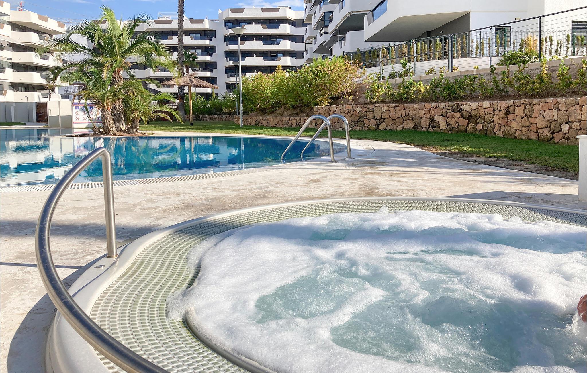 Denne indbydende lejlighed i Los Arenales del Sol ligger tæt på havet og passer perfekt til dem, der holder af strandlivet. Lejligheden er kendetegnet ved en meget moderne atmosfære og stilrene linjer, hvor I ikke vil mangle noget. Gulv-til-loft-vinduer lukker en masse dagslys ind og oplyser på skøn vis det store opholdsrum med næsten alt i ét. Hyggesnak i sofaen efter en lang dag og fremtryl lækre retter i køkkenet. Nyd de første solstråler på terrassen om morgenen, før I dykker ned i den fælles pool. Det er også det helt rigtige sted til et glas vin på en lun sommeraften. Gå en tur til stranden og slik sol i det varme, fine sand og forfrisk jer i det klare vand.