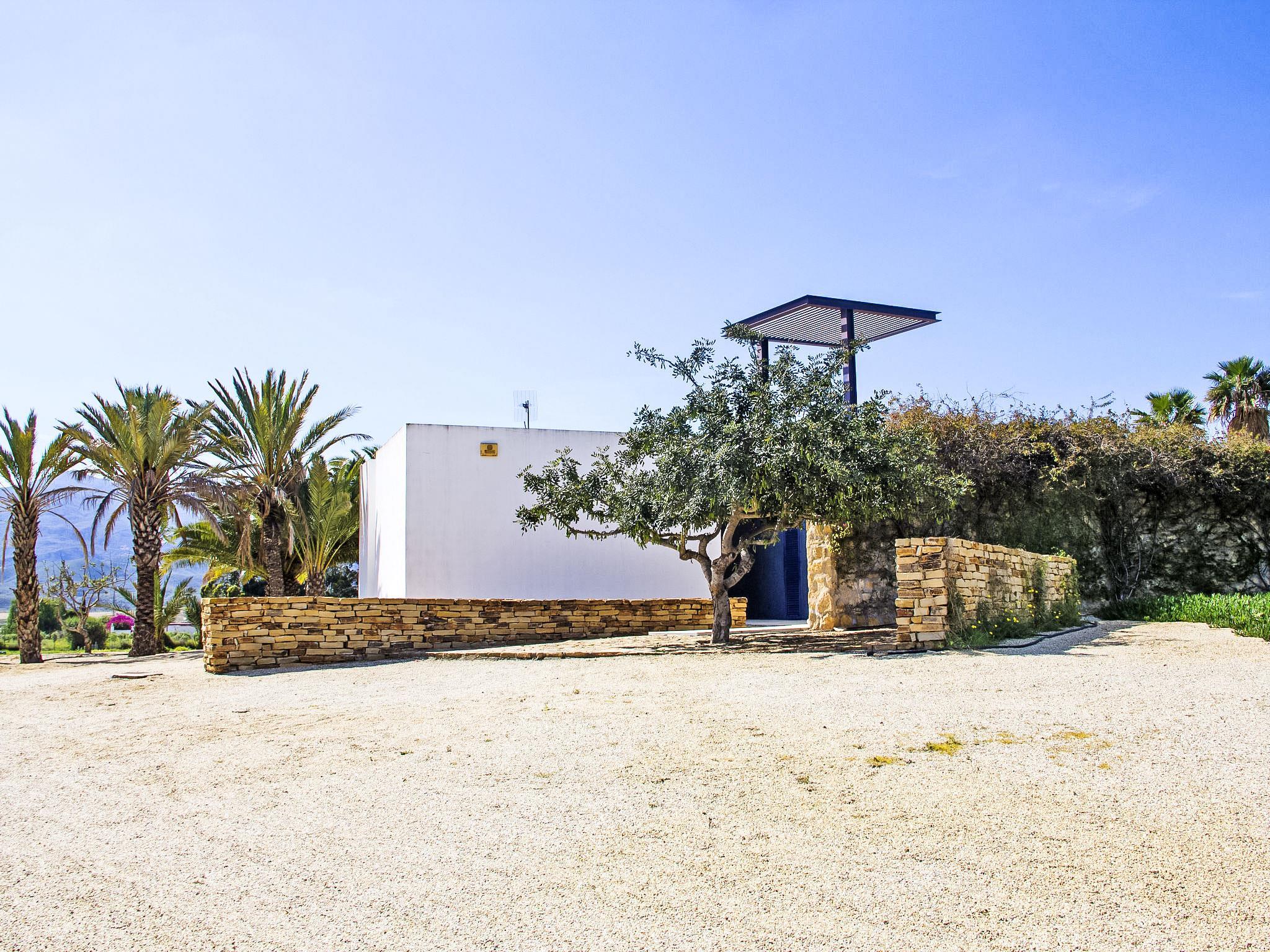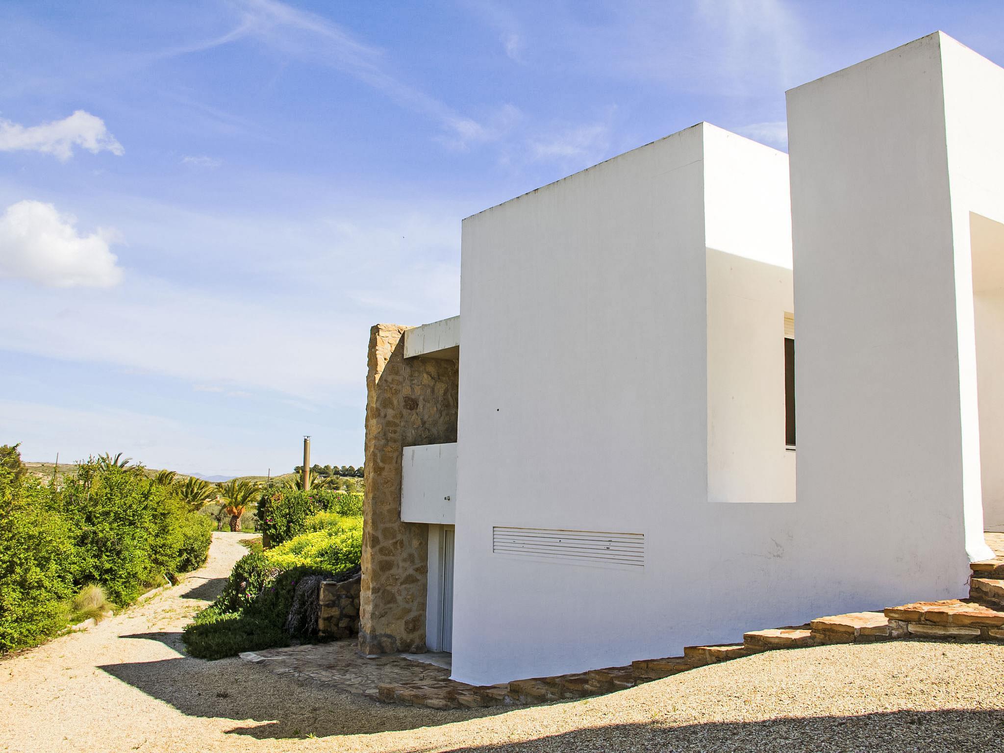 House "Finca La Veleta", built in 1999, surrounded by trees. 2 km from the centre of Los Gallardos, 12 km from the centre of Mojácar, in a secluded position, 12 km from the sea. Private: property 11 ha, garden (not fenced), swimming pool (8 x 3 m, seasonal availability: 01.May. - 30.Oct.). In the house: burglar alarm system. Single garage. Bus stop 1 km, sandy beach 12 km. Golf course (18 hole) 13 km. House surrounded by orange groves (6 hectares) and seasonal crops. Person responsible for the care of the farm. Farm is situated at the foot of the Sierra Cabrera, not far from Mojacar.
