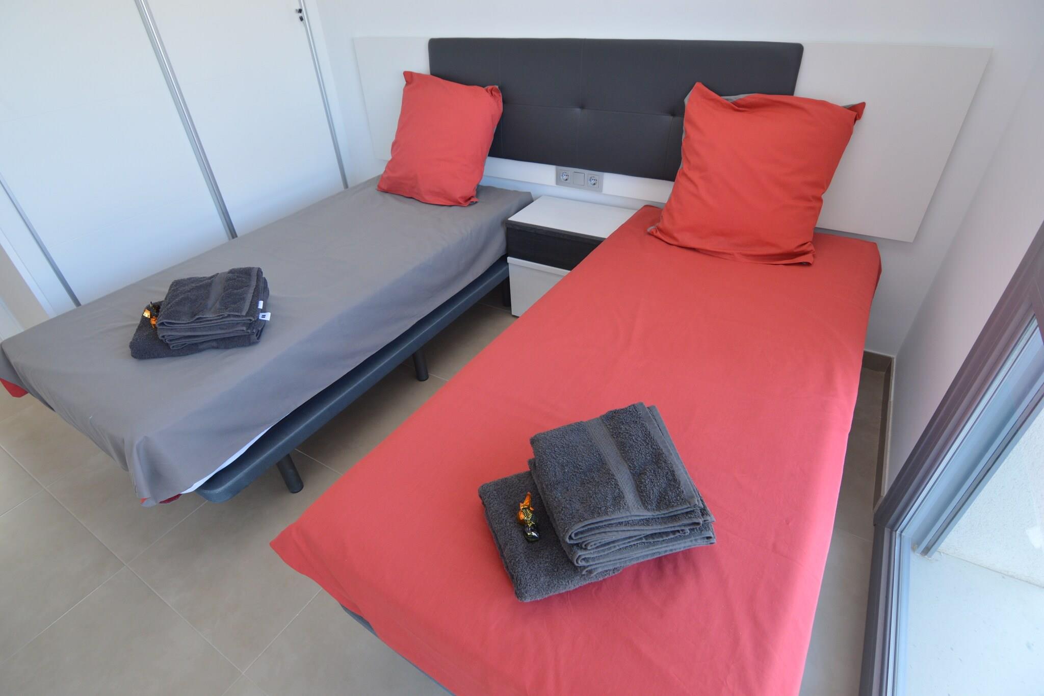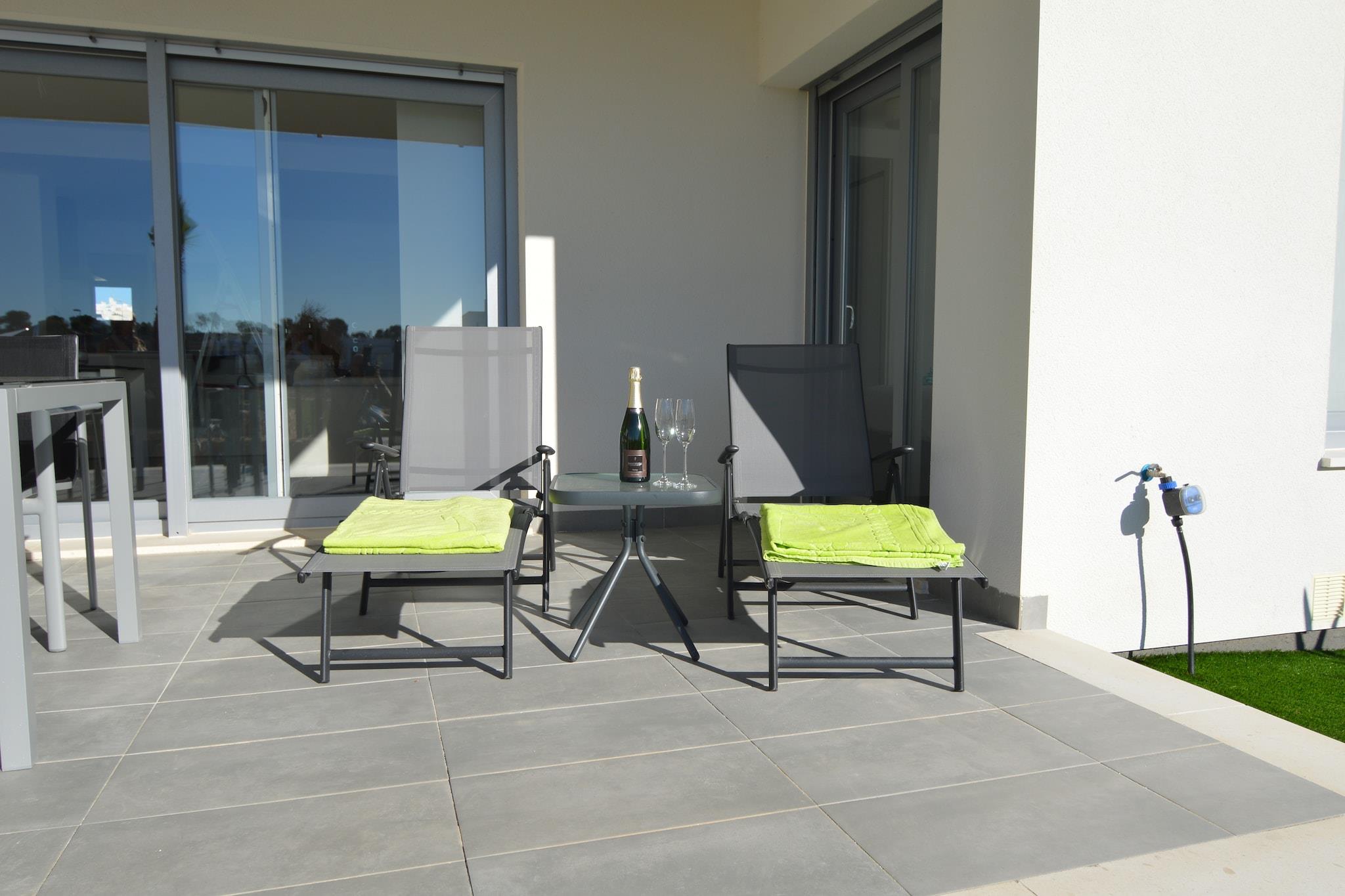 Afslappet familieflugt Beliggende i det fredelige område Los Montesinos tilbyder dette feriehus et indbydende tilflugtssted for familier eller små grupper. Med tre soveværelser med plads til op til seks gæster, er interiøret designet til både komfort og funktion. Stuen i åbent plan omfatter spiseplads, moderne køkken med alt nødvendigt og aircondition for et behageligt ophold året rundt. Store vinduer og en privat terrasse inviterer til naturligt lys, mens den fælles swimmingpool - komplet med en lavvandet sektion for børn - giver en forfriskende pause på solrige eftermiddage. Fritid og omgivelser Kun 500 meter væk ligger Vistabella Golf, hvilket gør dette hjem til et ideelt valg for golfentusiaster. Til hverdagens bekvemmelighed er der supermarkeder inden for gåafstand, mens Torreviejas livlige bymidte ligger 17 km derfra, og den byder på sandstrande, en travl lystbådehavn og aftenture langs promenaden. Gæsterne kan også nyde boulesbanen på stedet eller bruge den tilgængelige cykel til at udforske de omkringliggende kvarterer i et langsommere tempo. Spisning og lokale smagsoplevelser Området omkring Orihuela og Torrevieja byder på masser af spisemuligheder, fra traditionelle spanske tapasbarer til internationale restauranter ved havet. Gæsterne kan nyde frisk fisk og skaldyr, familiedrevne spisesteder i nærliggende landsbyer eller stilfulde strandlounger med udsigt over Middelhavet. Med Alicante Lufthavn kun 58 km væk, er boligen let tilgængelig for både korte ferier og længere ferier.