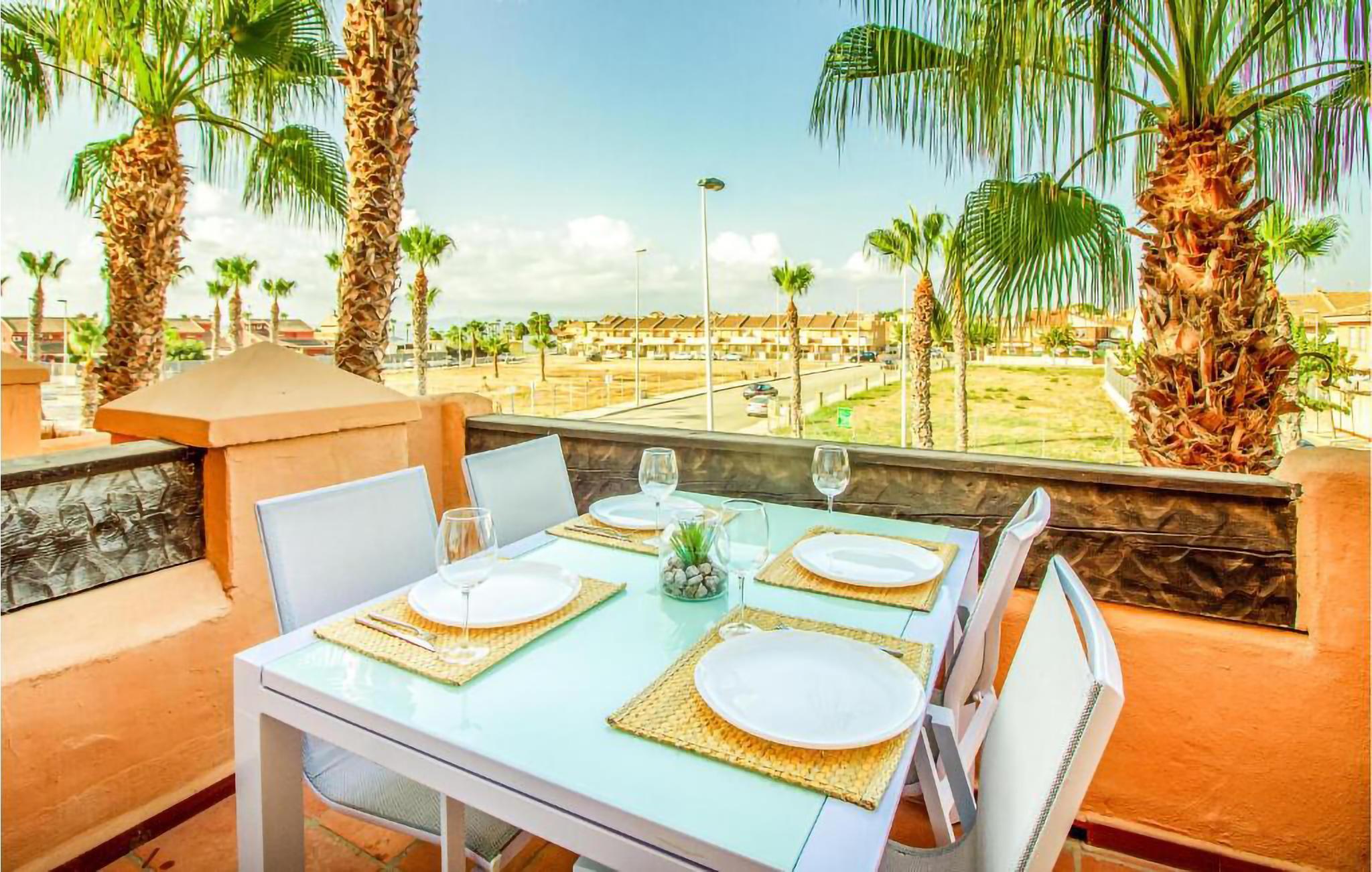Kun få skridt fra stranden finder I denne smukke ferielejlighed i Los Narejos. Lejlighedens boligareal fordeler sig på to soveværelser, et badeværelse, en spisestue og et opholdsområde med køkken - ideelt til fire personer. Det store soveværelse har en balkon, opholdsrummet fører til en terrasse med delvis havudsigt.