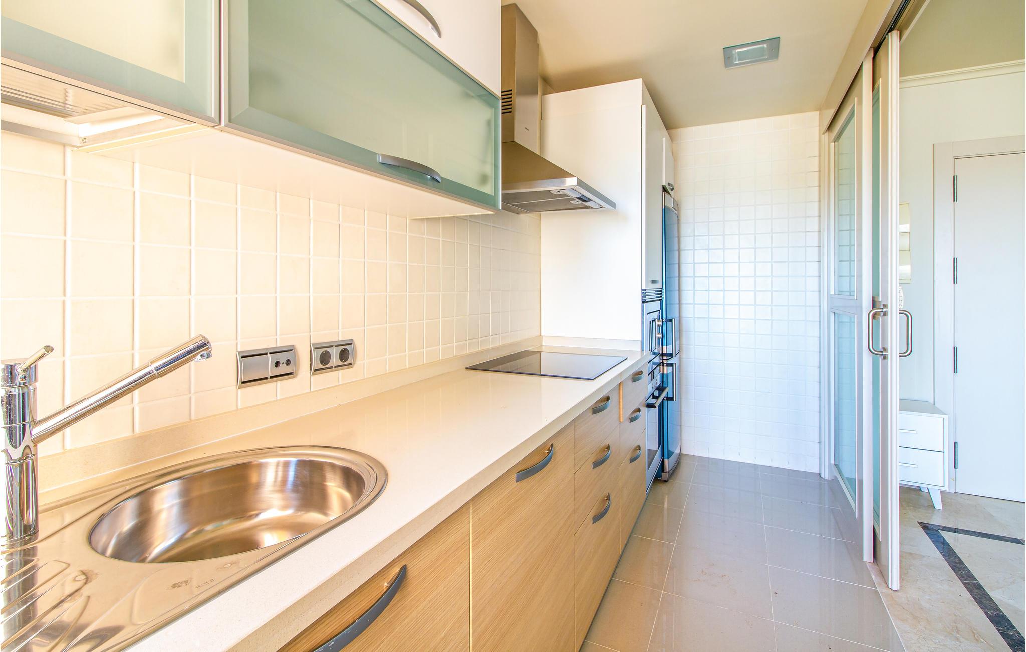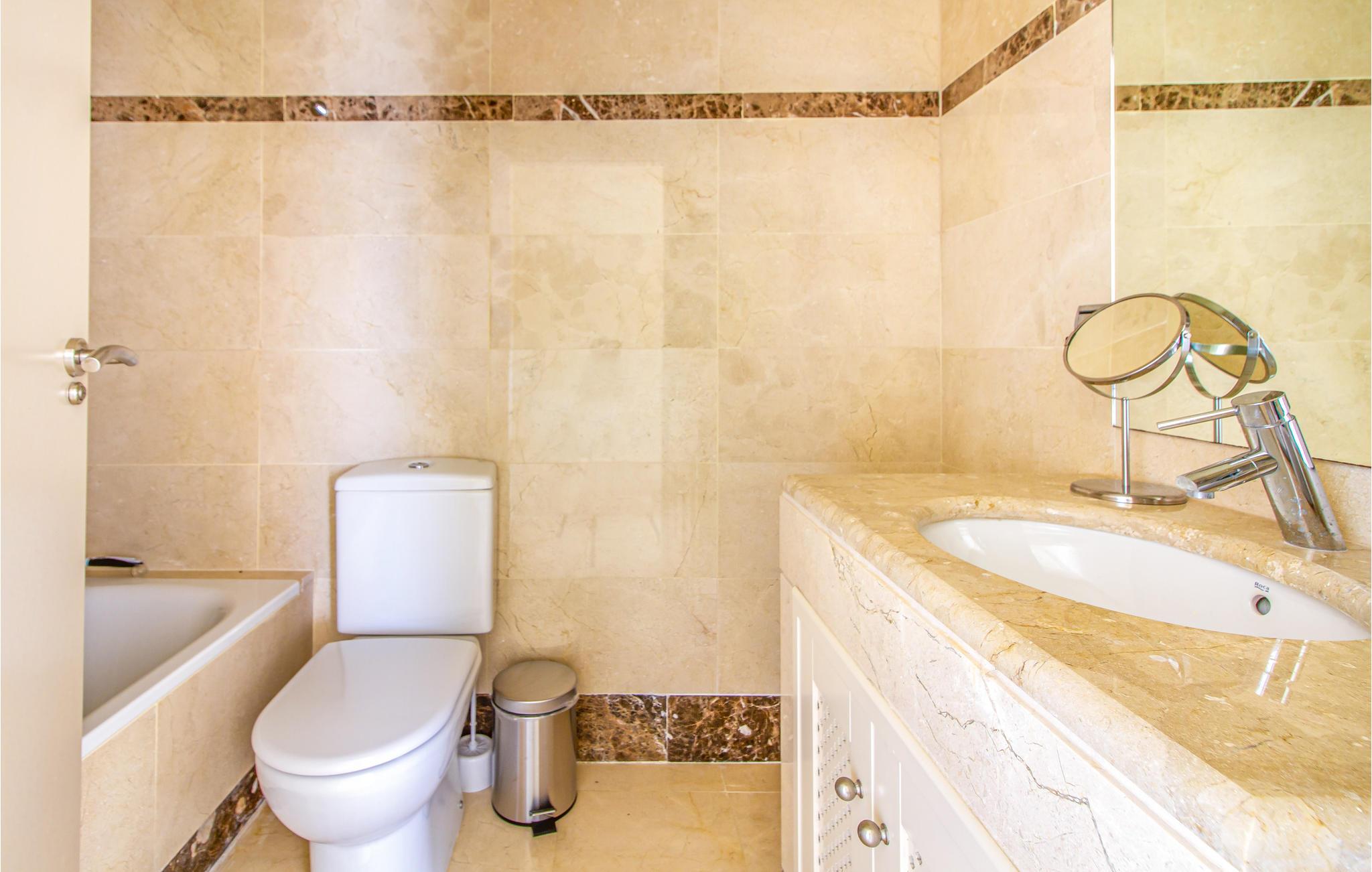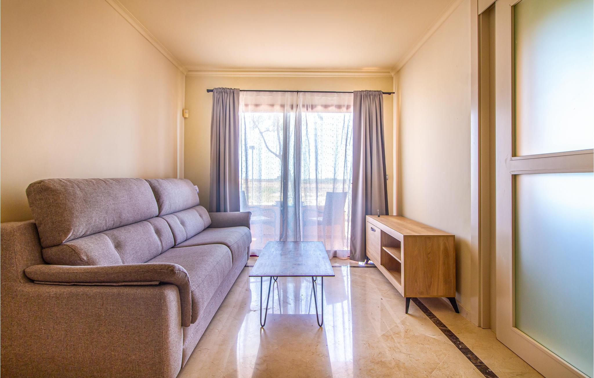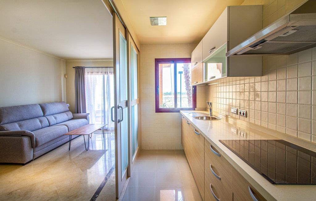 Lejligheden ligger i et kompleks, hvor I har adgang til den fælles udendørspool. Alternativt kan det anbefales med et besøg til havet, som kun ligger få meter fra lejligheden. I kan også gå ned til en restaurant og flere butikker. Golfbanen ligger kun få kilometer væk.
