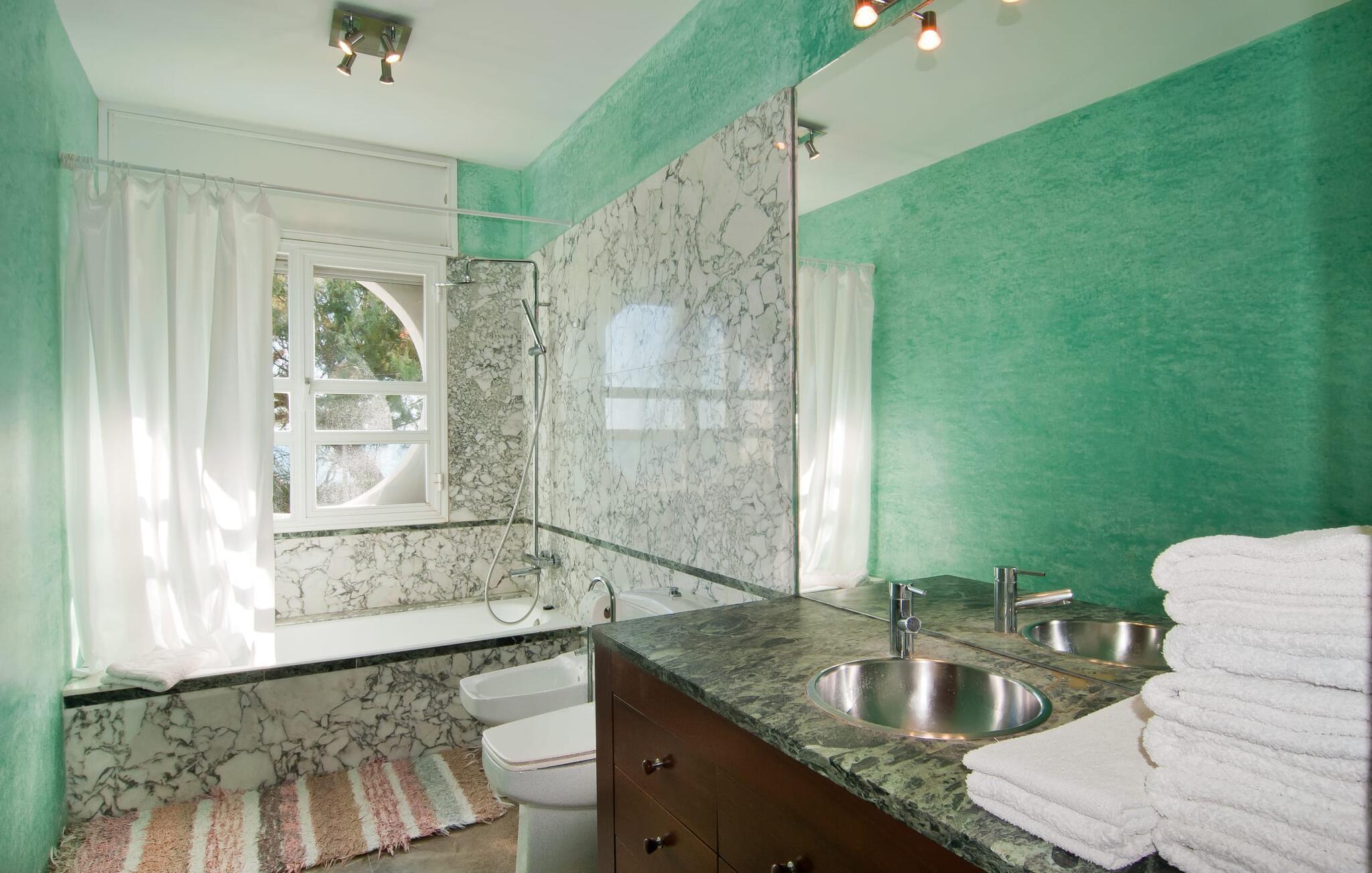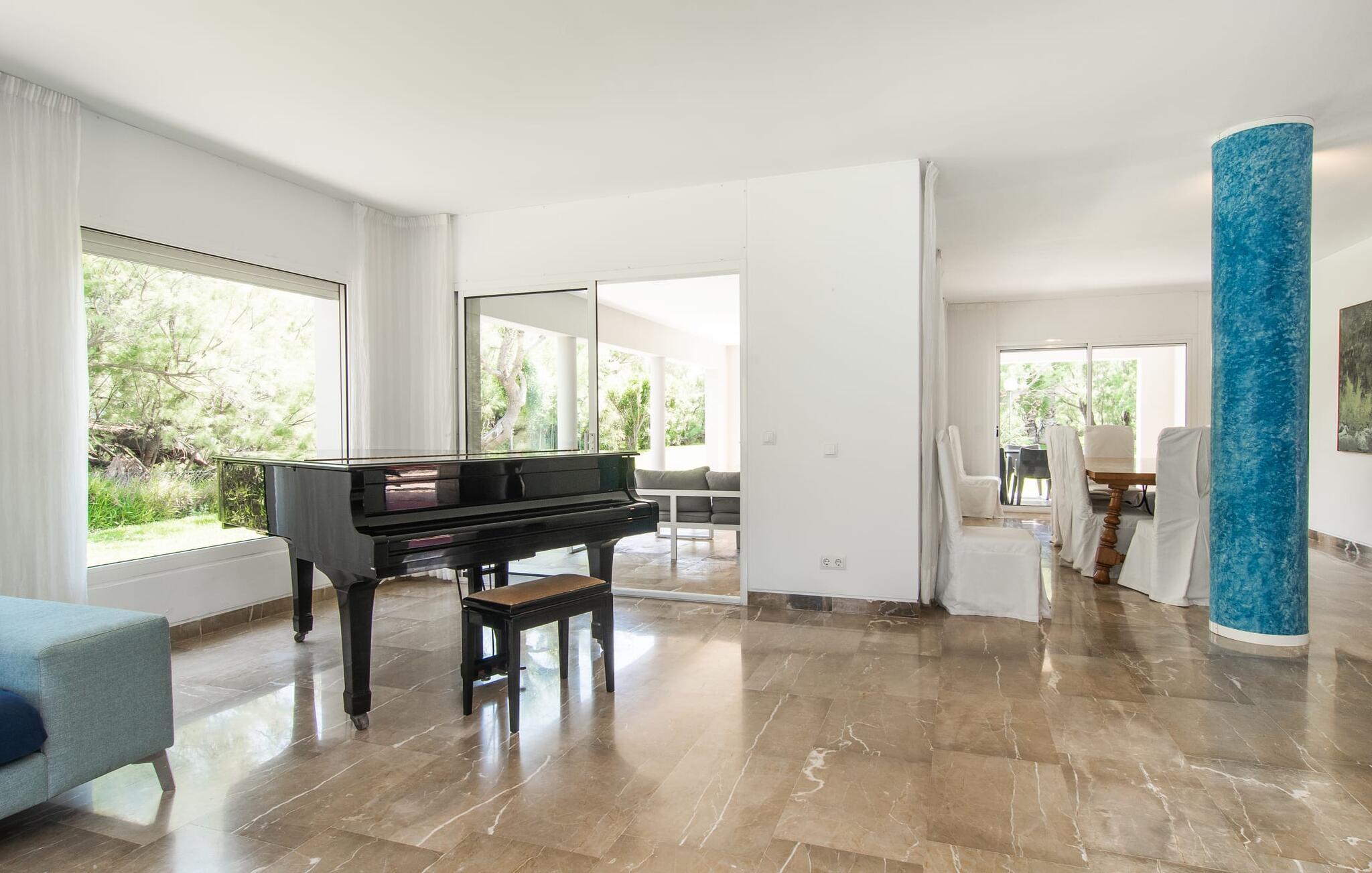 Villaen er ikke ny, men har et meget imødekommende moderne touch og er blevet omhyggeligt og nænsomt vedligeholdt. Det ligger direkte ved havet, på stranden og på vejen, der fører til Costa de los Pinos. Ejendommen er så stor, at du ikke kan se den nærmeste nabo, så du kan tilbringe din tid her i fuldstændig fred. Haven er præget af en kæmpe græsplæne, hvor de små kan løbe rundt og lege frit, og de voksne kan vælge de mest maleriske steder at slappe af. Her kan du lytte til bølgernes blide lyd og drømme dig langt væk fra hverdagen. Gennem porten i hegnet har du direkte adgang til stranden foran ejendommen; Du kan næsten ikke være tættere på havet! En utrolig stor infinity-pool inviterer dig til at tage en forfriskende svømmetur og kan nemt nås via trapper. Otte komfortable pool liggestole venter på, at du kan slappe af på, så længe du vil under middelhavshimlen. Er UV-strålingen for stærk til dig, kan du nemt finde et luftigt, skyggefuldt sted eller bruge din eksisterende parasol. Åbne, overdækkede terrasser giver fantastiske muligheder for at gøre tiden udendørs så behagelig som muligt. På den overdækkede terrasse foran stuen finder du en utrolig behagelig udendørs sofa, hvorfra du kan se ud til havet gennem den løse række af træer. Grundet ejendommens beliggenhed kan rejsestøj tydeligt høres, men vejen er heldigvis ikke særlig befærdet og ligger på bagsiden af huset, mens alle rum vender ud mod den anden side af huset. Bag huset er der indkørsel med automatiske døre og garage til op til to biler. Dette unikke feriehus er opdelt således: Der er et skønt indgangsparti med trapper, til højre er køkkenet med spisebord, forrest er der stue/spisestue. Til venstre for entréen er en lang gang med to badeværelser og fire soveværelser. Et rummeligt femte soveværelse og en stor terrasse (uden rækværk) med havudsigt udgør første sal. Hele huset er godt oplyst, har rummelige værelser og vinduer og er designet til at bruge masser af hvidt. Den moderne indretning imponerer med deres afmålte, men æstetiske møbler, som er harmonisk indrammet af lyse vægge og et elegant marmorgulv. Resultatet er en konsekvent subtil og individuel atmosfære i alle rum. I stuen kan du slappe af i en smagfuld atmosfære og fordrive tiden, som du har lyst, det være sig med en god bog, en lækker drink eller måske en underholdende film på TV. På køligere aftener har du mulighed for at trække dig tilbage og fortrylle den åbne ild med ekstra hygge, varme og atmosfære. De musikalsk indstillede blandt jer vil elske klaveret, som I kan spille i et rum med smuk akustik. Lige ved siden af står det rustikke spisebord, som er ideelt til indendørs måltider sammen. Køkkenet med spiseplads og pejs er fuldt møbleret og byder på alt hvad du behøver til dine daglige behov. Disse omfatter en kedel, en filterkaffemaskine og en Nespresso-maskine. Så intet står i vejen for at slappe af og nyde en aromatisk morgendrink på et af havudsigtsstederne i haven eller direkte på stranden. Soveværelserne er alle meget individuelt designet og tilbyder dig et vidunderligt grundlag for en afslappende søvn. Marmorgulvene fortsætter ind i badeværelserne og skaber et elegant design, der er unikt for hvert værelse. Strygejern og hårtørrer er tilgængelige og kan selvfølgelig bruges af gæster. Den en kilometer lange strand i Cala Millor har fint, hvidt sand og en blid skråning. Det blev tildelt Det Blå Flag for sin høje vandkvalitet. Stranden overvåges og rengøres dagligt, og du kan også leje liggestole og parasoller der. Farmers Market finder sted hver torsdag mellem klokken 16.00 og 16.00. og 20.00 Cala Millor er et turiststed, der er velegnet til turister og har en række restauranter, barer, supermarkeder, tennisbaner og minigolf. Et landmandsmarked finder sted hver fredag i Son Servera. Vigtig information: - Afbrænding uden for de udpegede områder: €500,00 bøde* for afbrænding uden for de udpegede områder. - Affald: 100,00 € bøde* hvis affald ikke deponeres i dens container *Told vil blive trukket fra depositum. Den moderne villa "Los Pinos" ligger direkte ved havet i den østlige del af øen, mellem Cala Bona og Costa de los Pinos. Det er knap 10 minutter i bil til Cala Millor. Et perfekt sted at handle dagligvarer eller løbe dagligdags ærinder. På denne kyststrækning er stranden både børnevenlig og familievenlig. Adgangen til havet er ofte lavvandet. Bemærk venligst, at denne ejendom ikke accepterer ungdomsgrupper eller polterabender. En ungdomsgruppe på denne ejendom består af personer under 30 år. Book ikke denne ejendom, hvis du er en ungdomsgruppe eller en polterabendgruppe, da din reservation vil blive afvist, når den er booket, hvilket også kan være tilfældet ved ankomst til ejendommen eller under dit ophold, og du vil ikke modtage en refusion. Dette er et Fincallorca feriehus.