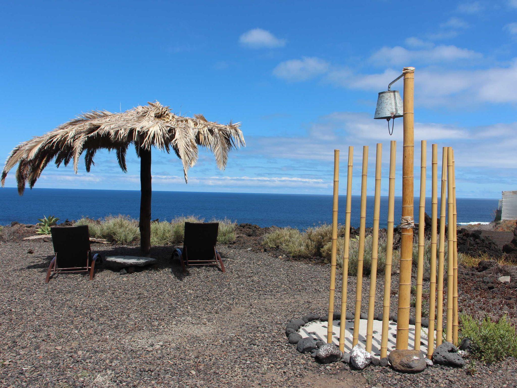 Ein Lieblingsplatz ihrer Gäste ist sicherlich die 20qm große, überdachte Terrasse direkt vorm Haus mit gemütlichen Sitzgelegenheiten und einem Grill. Hier gibt es ein Gemüsebeet, wo die Gäste sich gerne nach Herzenslust bedienen können. Hühnereier aus Freilandhaltung sowie selbst geflückte Papaya (je nach Jahreszeit) sind nur einige der Annehmlichkeiten, die Gäste hier erwartet. Ein weiterer Lieblingsplatz ist die kleine Ruheoase direkt über dem Meer, die die Eigentümer für Ihre Gäste mitten im Lavagestein angelegt haben. Er verfügt über eine originelle Außendusche, zwei Sonnenliegen und einen Bastschirm. Ein idealer Ort, um aufs Meer zu schauen, Bücher zu lesen oder einfach die Gedanken baumeln zu lassen.