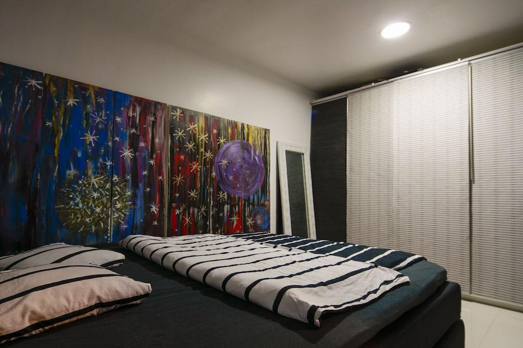 The apartment is newly renovated and modernly furnished. 66m² including the terrace offers ample space for two people. It features a bathroom with a spa shower, a living/dining area with an open-plan American-style kitchen. The sleeping area, elegantly separated with a box-spring bed, feels like a separate room. Access is via a private staircase; it's the top-floor apartment. The location is quiet, and ample parking is available.