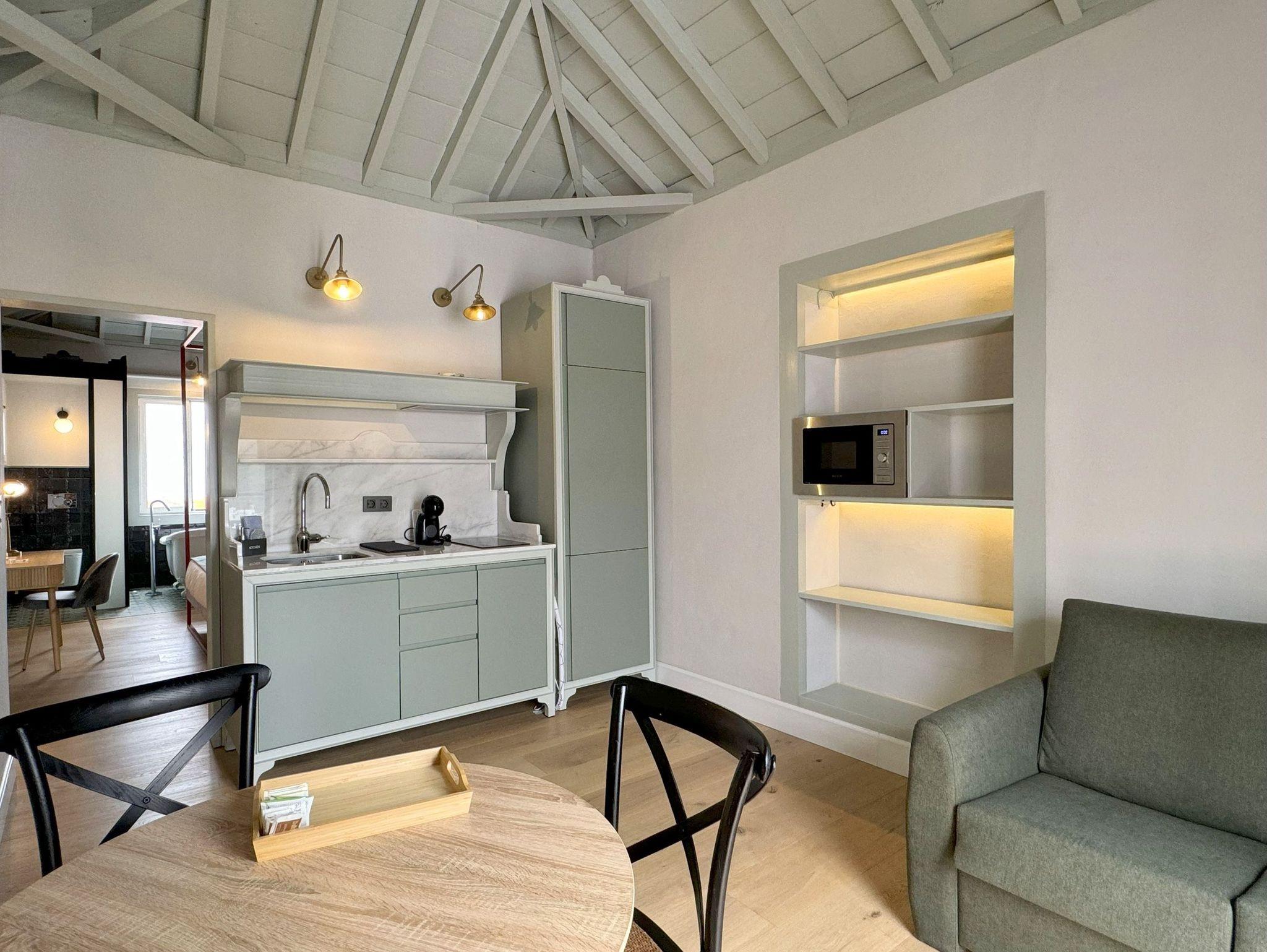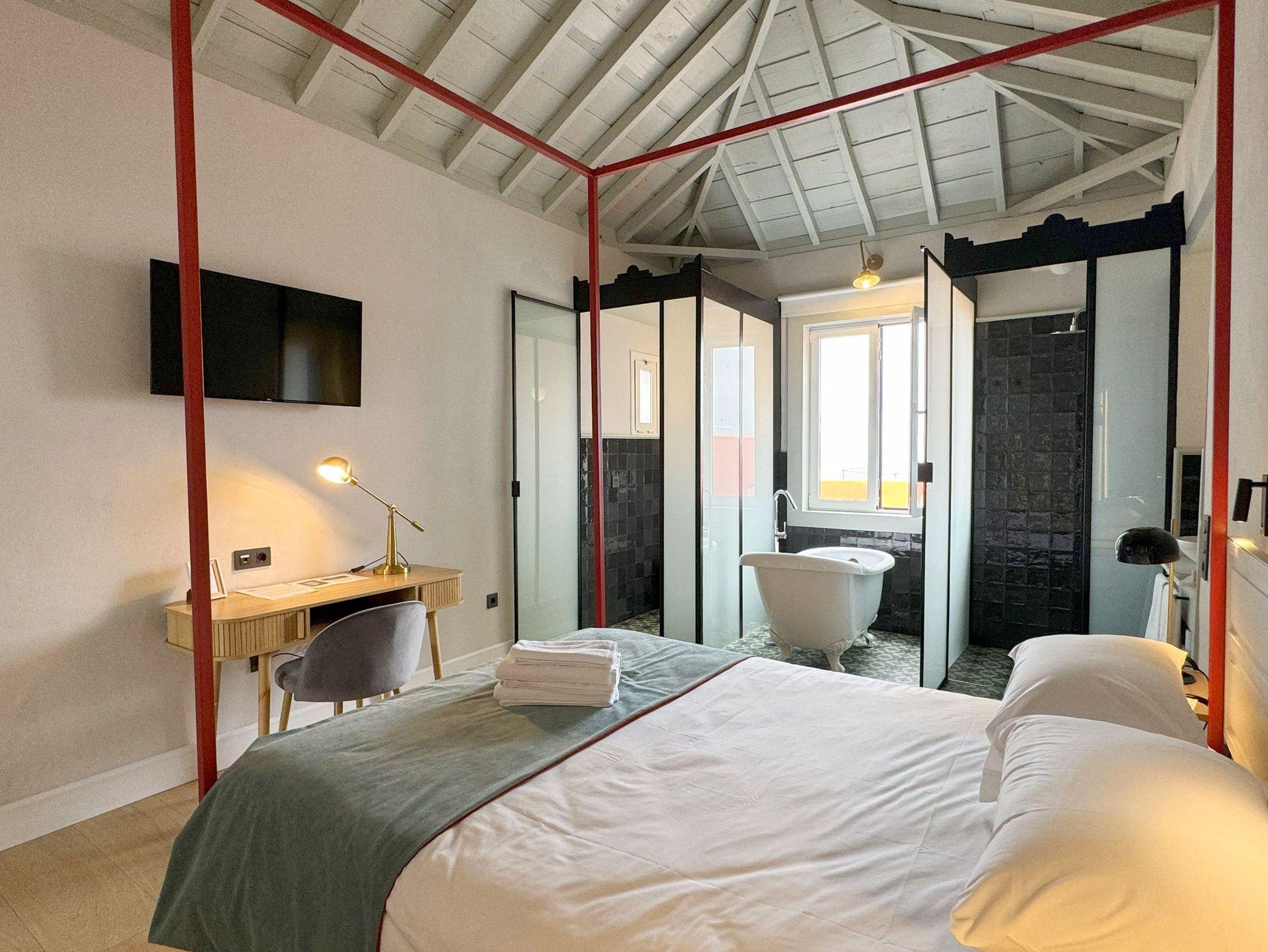 Die Vivendas vacacionales LorPalma wurden mit viel Fingerspitzengefühl restauriert: die originalen Decken aus Teaholz und die Holztreppe erzählen die Geschichte des Hauses moderne Elemente wie offene Grundrisse, stilvolle Lichtkonzepte und markante Baldachinbetten setzen einen spannenden Kontrast. Besonders eindrucksvoll: In Studio 5 lädt eine freistehende Badewanne mit Meerblick zum Träumen ein.