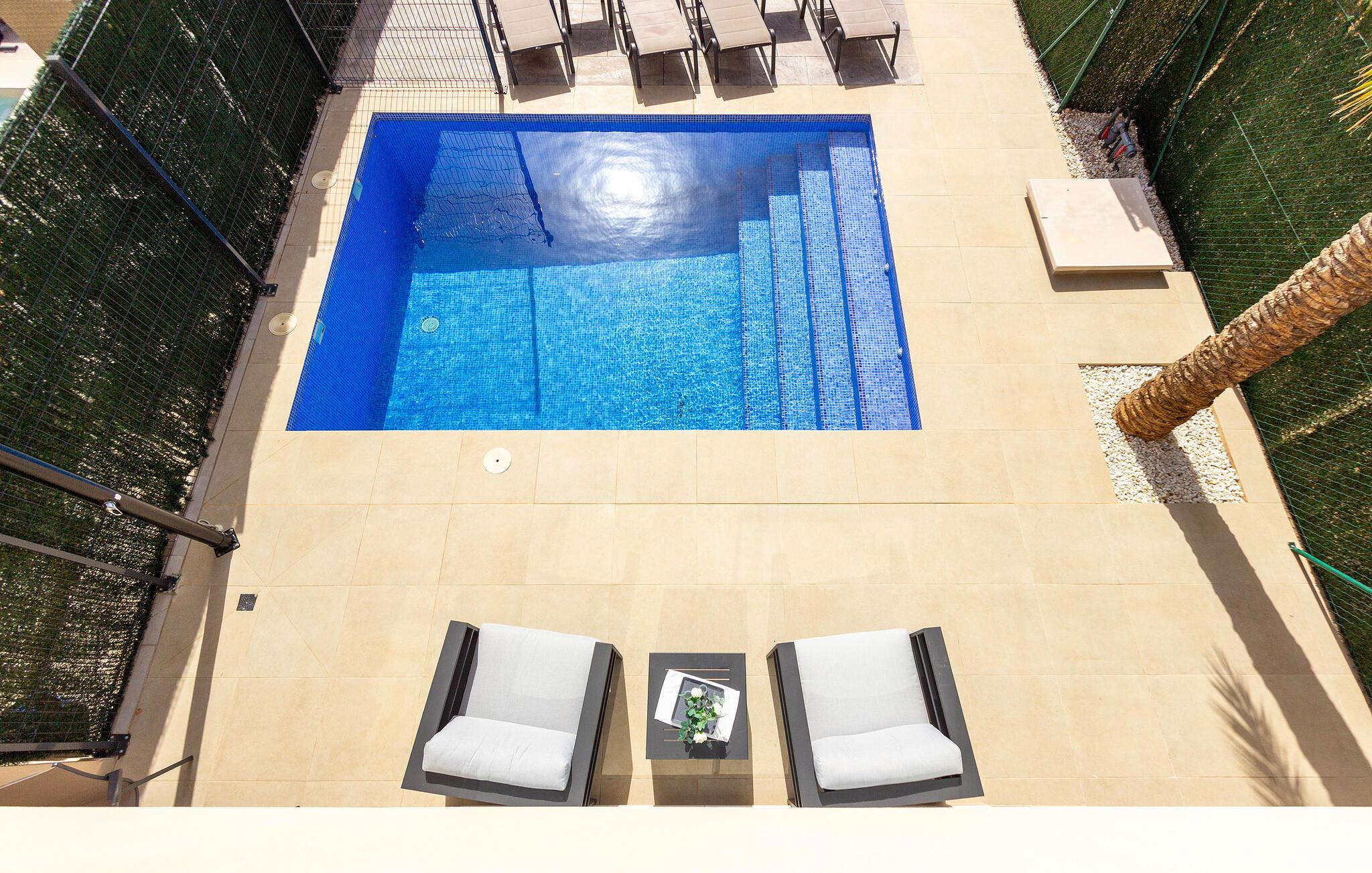 Gør jer klar til årets bedste uger i dette moderne og komfortable feriehus med pool på Mar Menor.