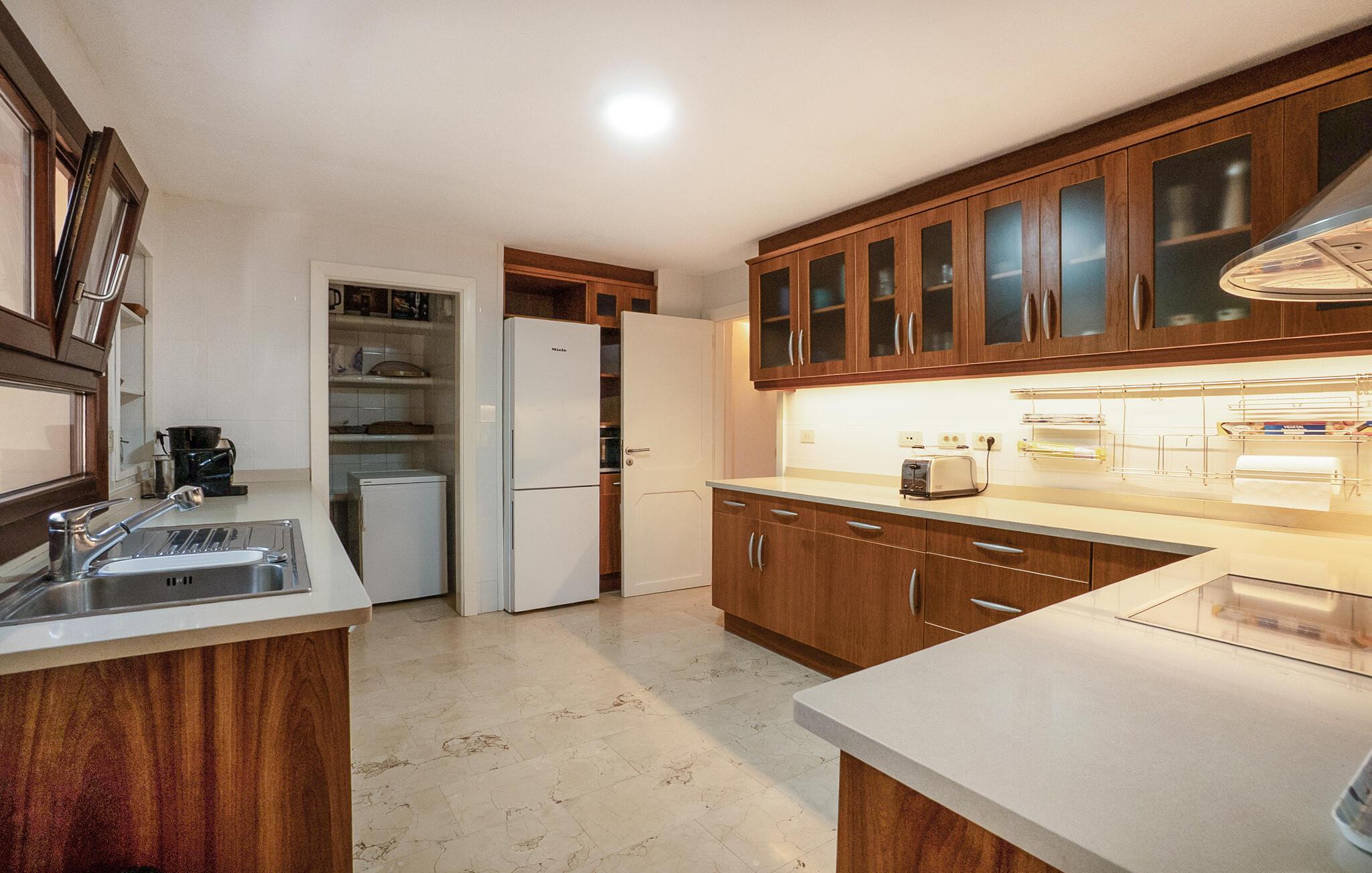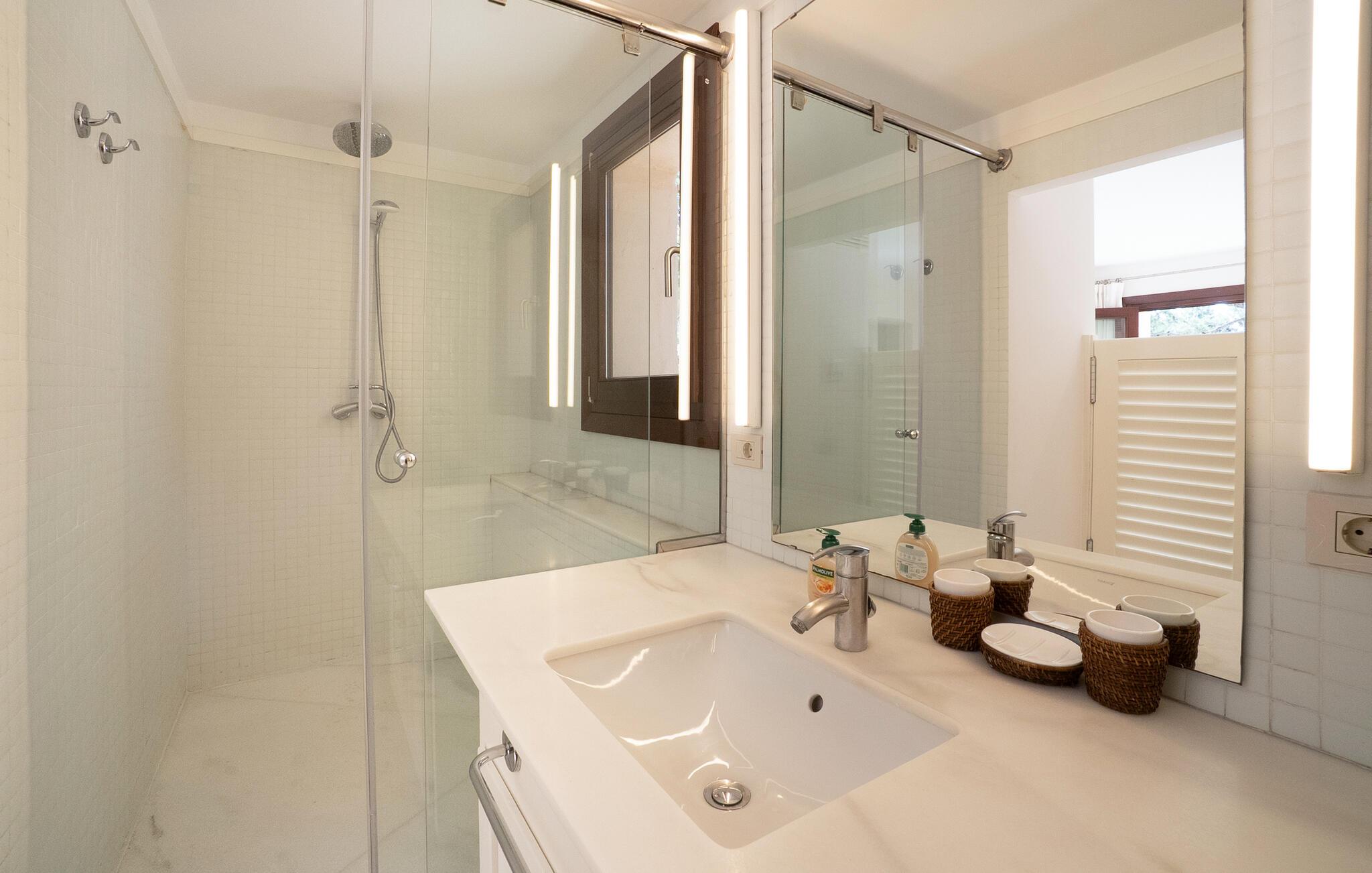 Villa "Lumb" tilbyder et betagende tilflugtssted, perfekt placeret over den turkise bugt nær Cala Ratjada. Med en betagende udsigt fra terrassen, legemliggør denne villa essensen af Mallorcas charme gennem sine traditionelle stenvægge. Start jeres dag med en solid morgenmad på den rummelige overdækkede terrasse eller tag en forfriskende dukkert i poolen, ideel til svømning eller blot afslapning. Panoramaterrassen er perfekt til afslapning eller yoga, mens liggestole er et roligt sted at solbade. Villaen kan ikke overses og sikrer dermed privatlivets fred, beliggende på en unik beliggenhed på den nordøstlige del af øen, med smukke vandrestier lige uden for døren. Indvendigt skaber den stilfulde og moderne indretning med marmor af høj kvalitet en imponerende entré. De lyse, luftige rum suppleres af et veludstyret køkken, perfekt til at tilberede lækre spanske retter. Den åbne planløsning og spisestue med brede terrassedøre tilbyder en betagende udsigt. I stueetagen er der tre soveværelser, hver med eget badeværelse, mens der på første sal er yderligere et soveværelse med dobbeltseng med eget badeværelse. Med sin rolige beliggenhed er Villa "Lumb" et uforglemmeligt tilflugtssted, der inviterer jer til at komme tilbage. Villa "Lumb" har en utrolig beliggenhed på en bakke over havet i det smukke landskab nær Cala Ratjada. Feriestedet, der er populært blandt unge og gamle, ligger kun en kort gåtur væk. I kan gøre jeres daglige indkøb hurtigt og nemt - enten i supermarkedet eller på det traditionelle ugentlige marked i Capdepera. Stranden Platja de Son Moll ligger cirka 2,5 km væk. Den nærmeste golfbane ligger ca. 8 km væk.