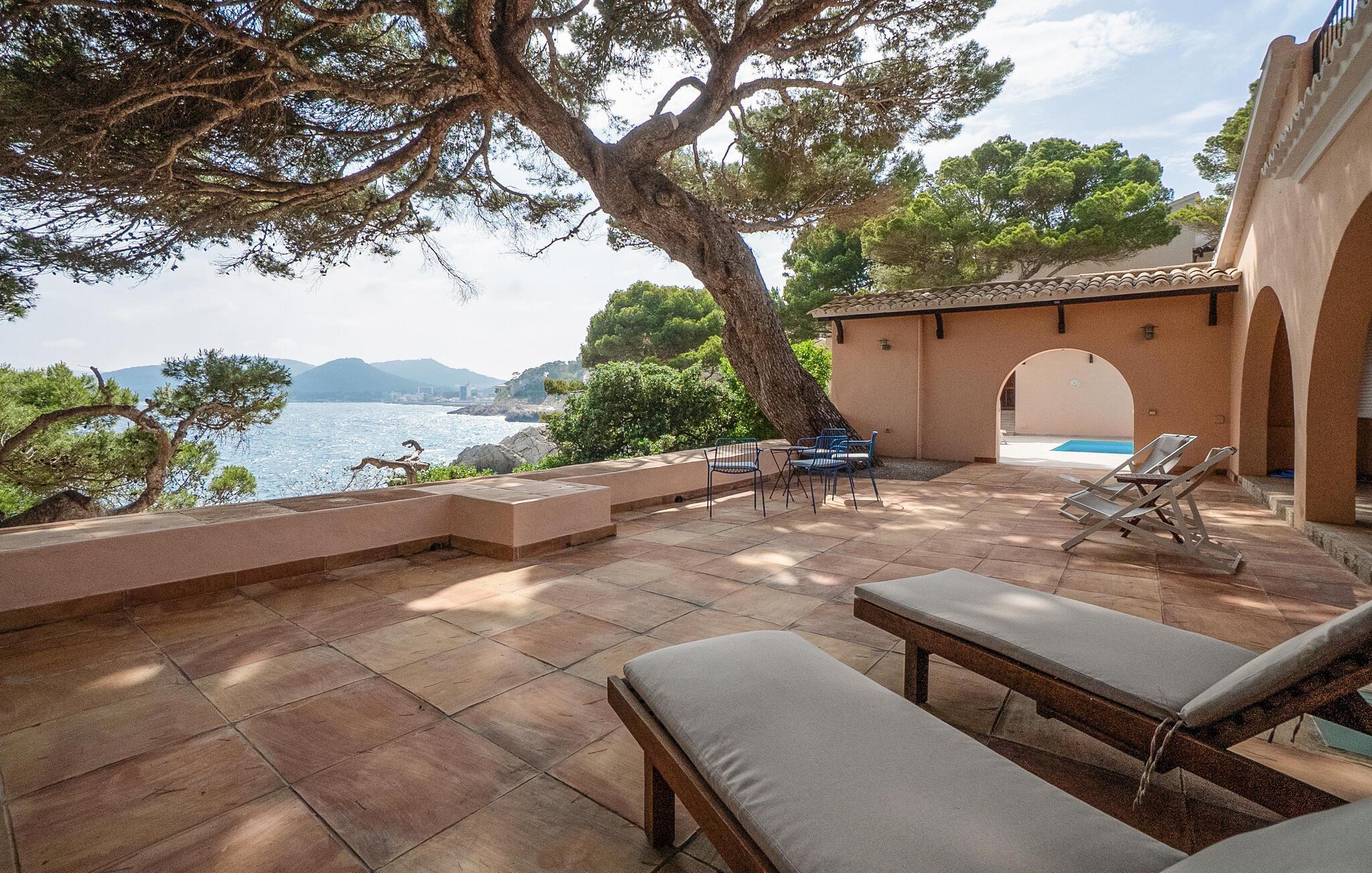 Villa "Lumb" tilbyder et betagende tilflugtssted, perfekt placeret over den turkise bugt nær Cala Ratjada. Med en betagende udsigt fra terrassen, legemliggør denne villa essensen af Mallorcas charme gennem sine traditionelle stenvægge. Dette er et Fincallorca feriehus. Start din dag med en solid morgenmad på den rummelige overdækkede terrasse eller tag en forfriskende dukkert i poolen, ideel til svømning eller blot afslapning. Panoramaterrassen er perfekt til afslapning eller yoga, mens liggestole er et roligt sted at solbade. Villaen kan ikke overses og sikrer dermed privatlivets fred, beliggende på en unik beliggenhed på den nordøstlige del af øen, med smukke vandrestier lige uden for døren. Indvendigt skaber den stilfulde og moderne indretning med marmor af høj kvalitet en imponerende entré. De lyse, luftige rum suppleres af et veludstyret køkken, perfekt til at tilberede lækre spanske retter. Den åbne planløsning og spisestue med brede terrassedøre tilbyder en betagende udsigt. I stueetagen er der tre soveværelser, hver med eget badeværelse, mens der på første sal er yderligere et soveværelse med dobbeltseng med eget badeværelse. Med sin rolige beliggenhed er Villa "Lumb" et uforglemmeligt tilflugtssted, der inviterer dig til at komme tilbage. Villa "Lumb" har en utrolig beliggenhed på en bakke over havet i det smukke landskab nær Cala Ratjada. Feriestedet, der er populært blandt unge og gamle, ligger kun en kort gåtur væk. Du kan gøre dine daglige indkøb hurtigt og nemt - enten i supermarkedet eller på det traditionelle ugentlige marked i Capdepera. Stranden Platja de Son Moll ligger cirka 2,5 km væk. Den nærmeste golfbane ligger ca. 8 km væk.