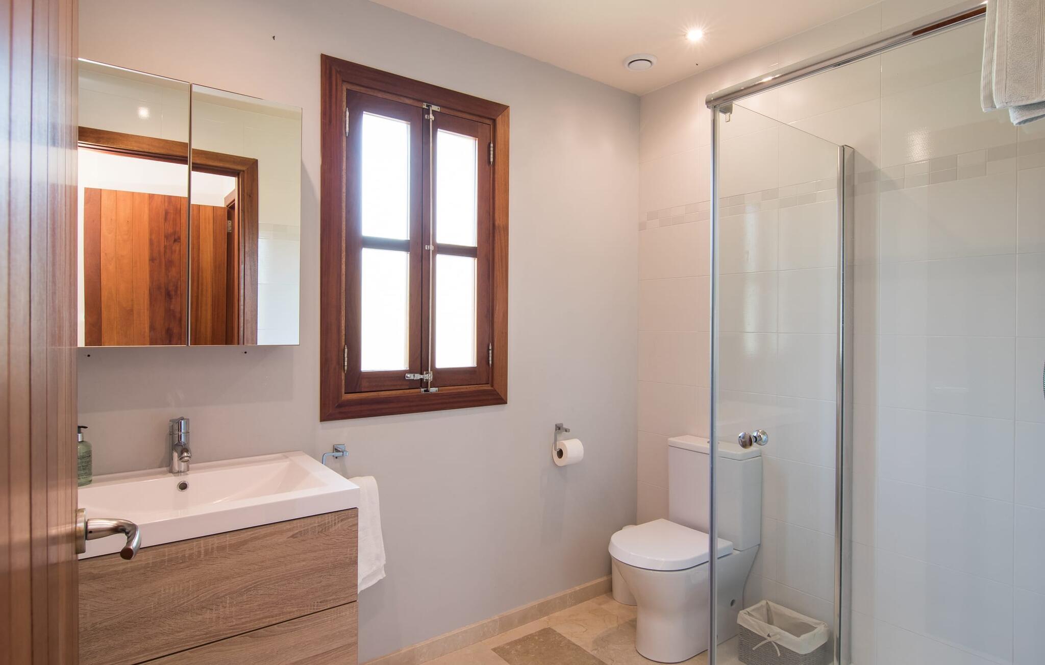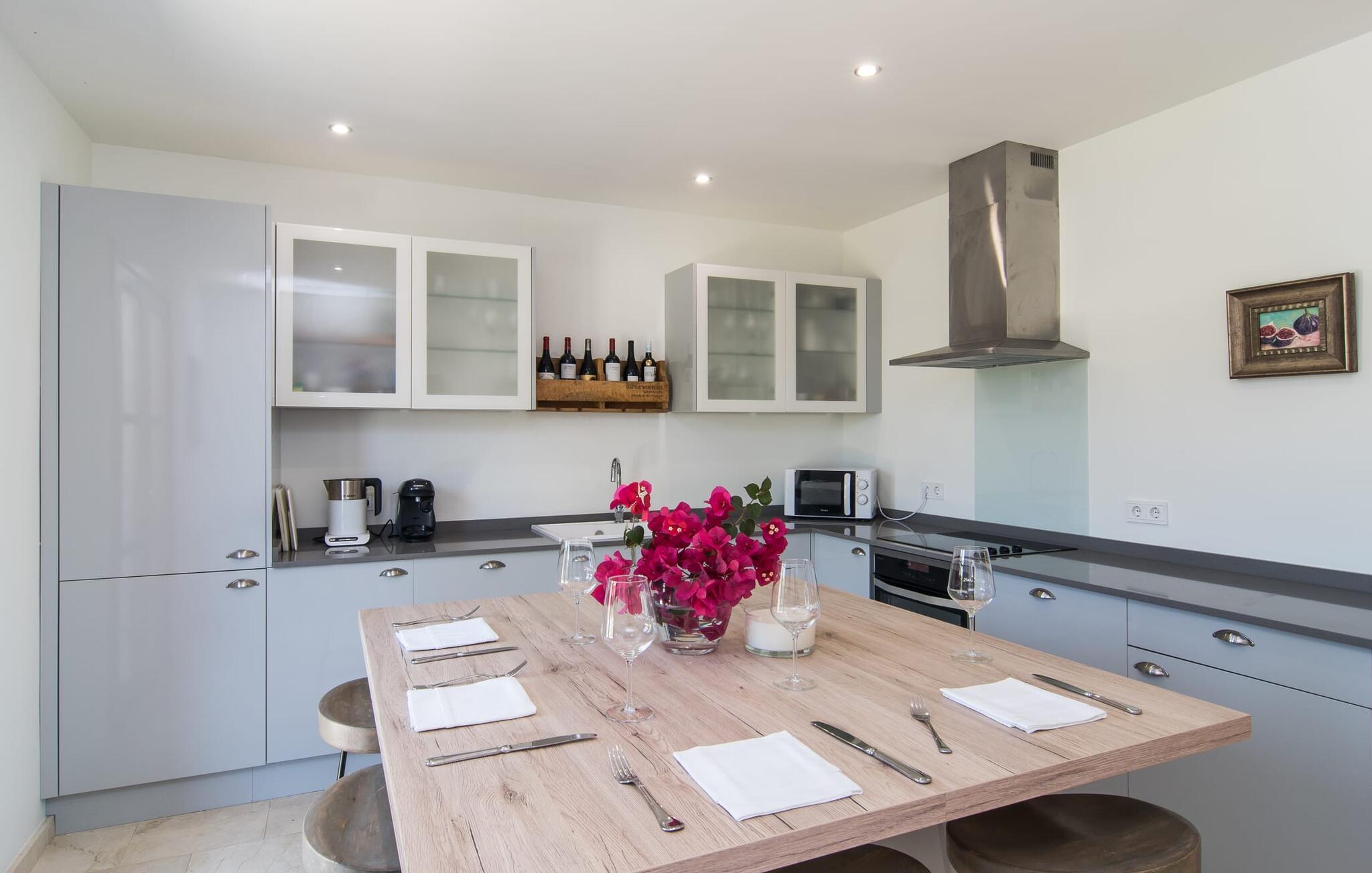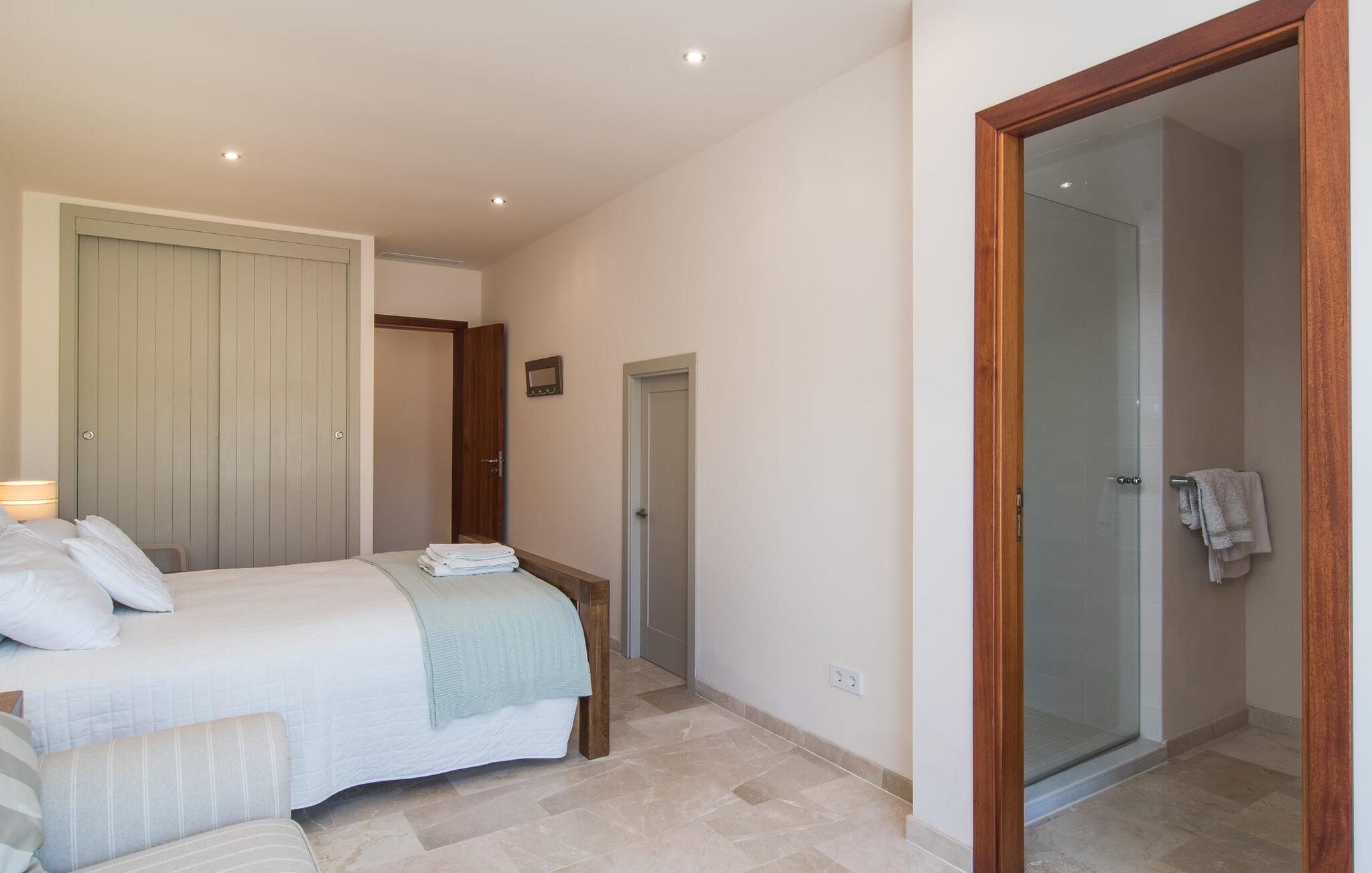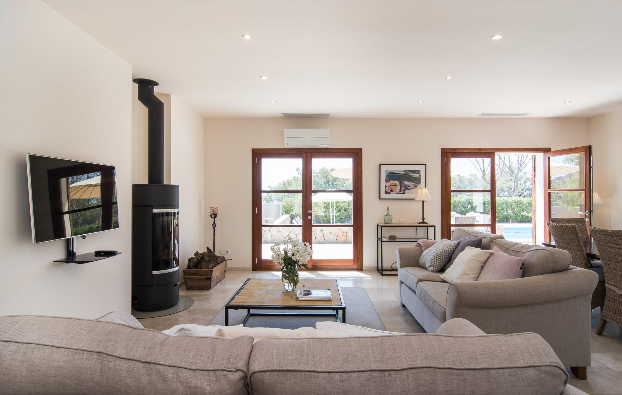 Beliggende på en 1.200 m² stor grund i den eksklusive Costa dels Pins-bebyggelse i den østlige del af øen, er villaen "Luz del Sol" - som kan oversættes som "sollys" - ikke kun lige ud til havet, men tilbyder også en fantastisk udsigt over grønne bjerge på den anden side. Smagfuldt indrettet i traditionel villastil er huset med brune træskodder næsten helt omgivet af brolagte terrassearealer - talrige siddepladser med skyggefulde parasoller inviterer til et par velfortjente pauser. Vil I nyde hver eneste solstråle, kan I trække jer tilbage til den rummelige tagterrasse og nyde udsigten til det glitrende blå vand i fred og ro. Ikke kun det nærliggende hav er ideelt til at svømme og plaske rundt i, men også den rummelige, skrånende pool, omgivet af imponerende høje palmer og duftende lavendelbuske: Takket være poolens betydelige længde kan I svømme vidunderligt her eller bare slappe af i Lilo med en cocktail i hånden. En stærk sans for stil kendetegner både det ydre og indre af villaen, som bedst kan beskrives som moderne og elegant og alligevel utrolig komfortabel. Sammen med møbler af høj kvalitet fremtryller cremefarver og naturlige toner en vidunderlig landstedsstemning. Spotlights indlejret i loftet giver et behageligt lys. De fleste værelser er i stueetagen; Der er kun endnu en stue på øverste etage. I stueetagen finder I indgangspartiet, som byder jer velkommen med et venligt "Hola", et badeværelse, en lille stue og den rummelige, kombinerede opholds- og spisestue med to komfortable sofaer. Herfra kan I enten se tv eller blive fortryllet ved pejsen, mens det smarte spisebord med komfortable kurvestole indbyder til at nyde lange måltider sammen. Apropos mad: Lige ved siden af ligger det fremragende udstyrede designerkøkken med praktisk kogeø og barstole. Alle fire soveværelser med hvert sit badeværelse er indrettet i en behagelig underfundig stil med nøje udvalgt boligtilbehør - værelser, hvor I straks kan føle jer hjemme. Costa dels Pins, bygden som jeres sommerhus ligger i, betragtes som et særligt populært og ganske eksklusivt boligområde på Mallorca. Landsbyen byder på et smukt landskab med mange små bugter og smukke strande, men også fred og afslapning væk fra turistmasserne. Langs vejen, der kan høres fra villaen, når I det livlige feriested Cala Millor. Smukt hus i en smuk beliggenhed: Kun 60 m i luftlinje adskiller villaen "Luz del Sol" fra det glitrende Middelhav - stranden er kun få skridt væk. Den rolige, eksklusive udvikling af Costa dels Pins i det østlige Mallorca byder på en vidunderlig afslappet, naturlig atmosfære samt et par hyggelige caféer og restauranter. I finder i alt fire golfbaner i nærheden, og de smukke byer Son Servera og Canyamel ligger kun få kilometer fra jeres feriehus.