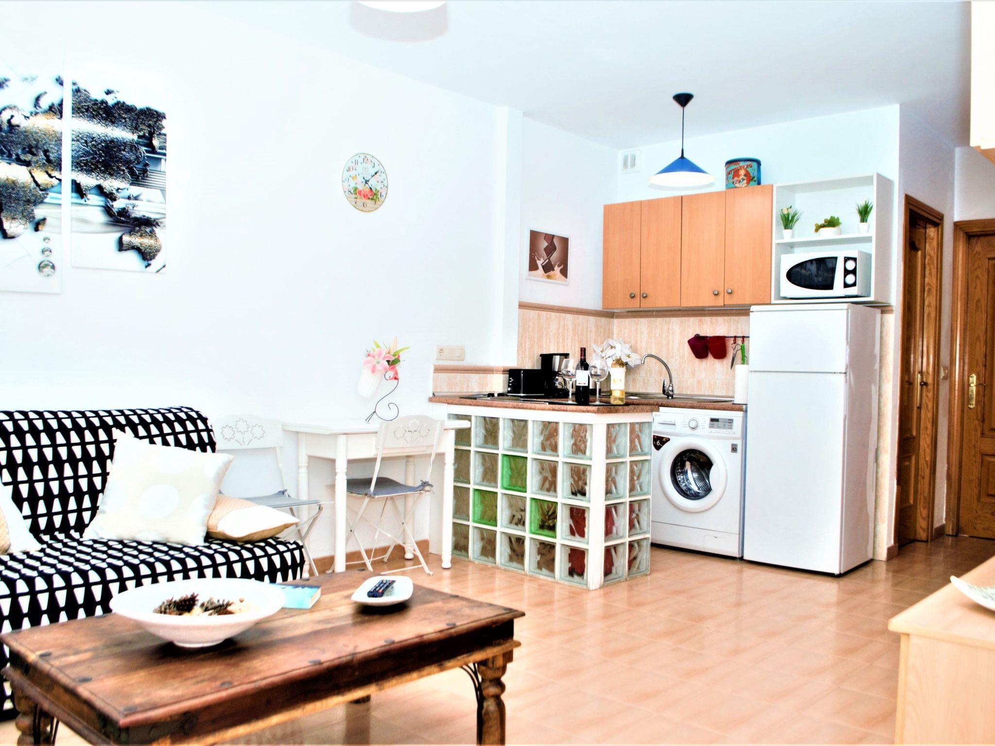 2 bedroom apartment 1 bedroom with a bed of 140 (sheets, blankets )- 1 bedroom with 2 beds of 90 (sheets, blankets )- Fully equipped kitchen: microwave, fridge, freezer , washing machine-Living room with sofa - TV DVD- Bathroom with shower and linen-Outdoor patio in the apartment. Air conditionné et chauffage dans toutes les chambres et le salon. Number Registro Turismo Andalucia:VFT/MA/01112