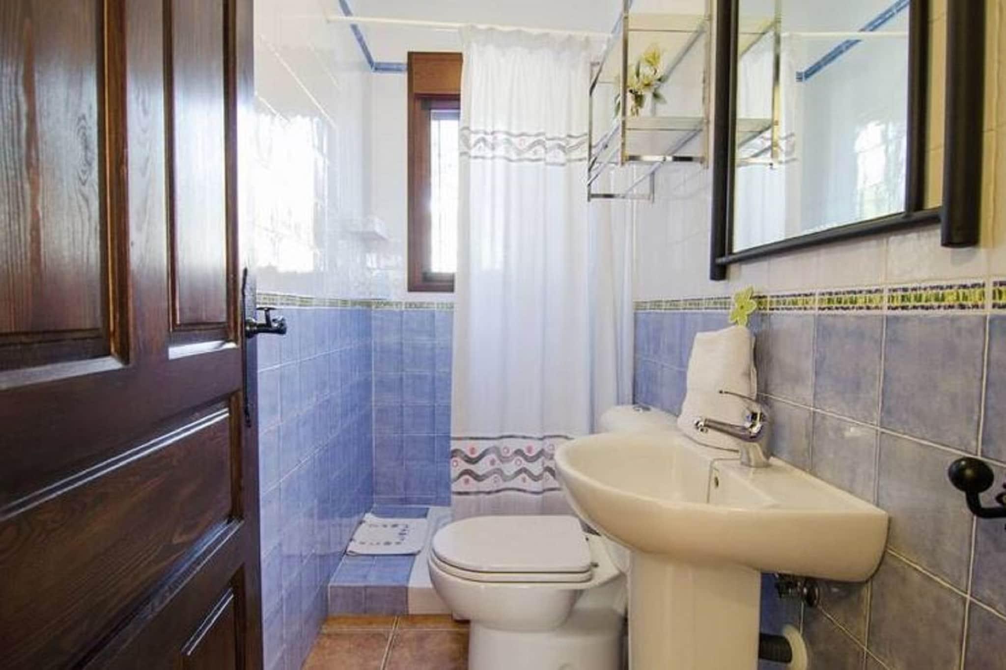 Hyggeligt familiehytte Denne hytte ligger i Viñuela og rummer familier eller små grupper med 2 soveværelser og 2 badeværelser. Det åbne køkken er fuldt udstyret med moderne apparater, mens stue/spisestue har pejs, tv og aircondition. Udendørs kan gæsterne nyde en privat terrasse og adgang til en fælles indhegnet swimmingpool (12x6 m), havemøbler og et grillområde. Der tilbydes legeredskaber og en børneseng, og der er parkering på stedet. Kæledyr er ikke tilladt, hvilket sikrer et roligt miljø for alle gæster. Udforsk og nyd naturen Hytten er omgivet af det andalusiske landskab og tilbyder nem adgang til vandrestier, naturskønne vandreture og cykelruter. Gæster kan besøge den nærliggende Viñuela-sø for vandsport, fiskeri eller afslapning ved søen. Costa del Sol-kysten er en kort køretur væk for strandudflugter, mens kulturelle dagsture til Málaga, Nerja eller Frigiliana byder på museer, historiske steder og charmerende gamle byer at udforske. Spisning og lokale bekvemmeligheder Landsbyen Viñuela byder på vigtige butikker og små caféer inden for gåafstand, mens større supermarkeder og restauranter er tilgængelige i nærliggende byer. Området byder på lokale markeder, boder med friske råvarer og traditionelle spanske spisesteder til tapas og regionale retter. Málaga Lufthavn ligger 69 km væk, og offentlige transportmuligheder er inden for rækkevidde, hvilket gør hytten til en tilgængelig og fredelig base for at udforske Costa del Sol, mens du nyder familievenlige bekvemmeligheder.