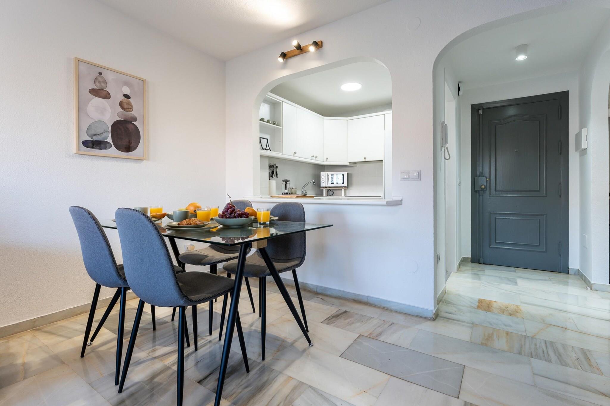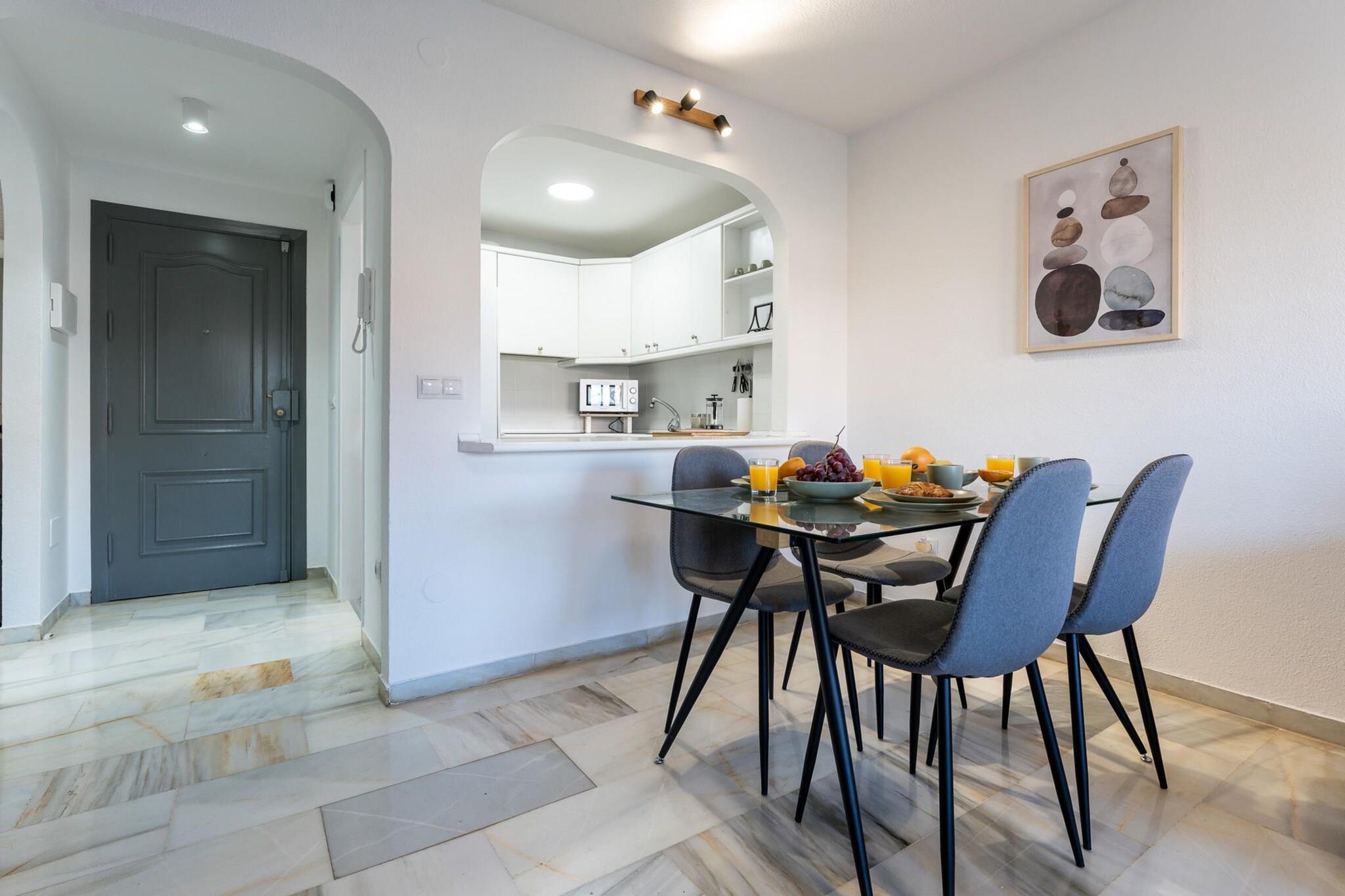 Træd ind i denne lyse og indbydende lejlighed i Arroyo de la Miel, Benalmádena, der tilbyder et komfortabelt tilflugtssted for din Costa del Sol-ferie. Denne bolig har et hyggeligt soveværelse med en dobbeltseng, et veludstyret badeværelse med badekar og et fuldt udstyret køkken. Den rummelige stue-spisestue åbner ud til en charmerende lukket terrasse med et stort vindue, der giver rigeligt naturligt lys og et behageligt sted at slappe af efter en dag med udforskning. Denne lejlighed er designet til moderne bekvemmelighed og sikrer et problemfrit og behageligt ophold. Du vil drage fordel af højhastighedsinternetadgang, perfekt til at holde forbindelsen eller for digitale nomader. Komforten er garanteret med aircondition, der giver en kølig flugt fra sommervarmen, og bygningen har en elevator for nem adgang. Det fuldt udstyrede køkken har alt, hvad du behøver til selvforplejning, hvilket giver fleksibilitet under dit ophold. Ud over lejligheden kan du fordybe dig i den pulserende energi i Benalmádena, kendt for sine forskellige fritidsmuligheder, lækker gastronomi og fantastiske strande. Nyd et bredt udvalg af vandaktiviteter, lej en båd fra Puerto Marina, eller glæd de små i de berømte vandlande. Oplev fascinerende dyr i Selwo Marina, eller tag en naturskøn tur med svævebanen for at opleve en betagende udsigt over området. For en bredere udforskning er dynamiske byer som Málaga, Fuengirola, Marbella og Mijas bekvemt placeret inden for 20-30 km, hvilket tilbyder uendelige muligheder for kulturelle udflugter og yderligere eventyr på den smukke Costa del Sol.