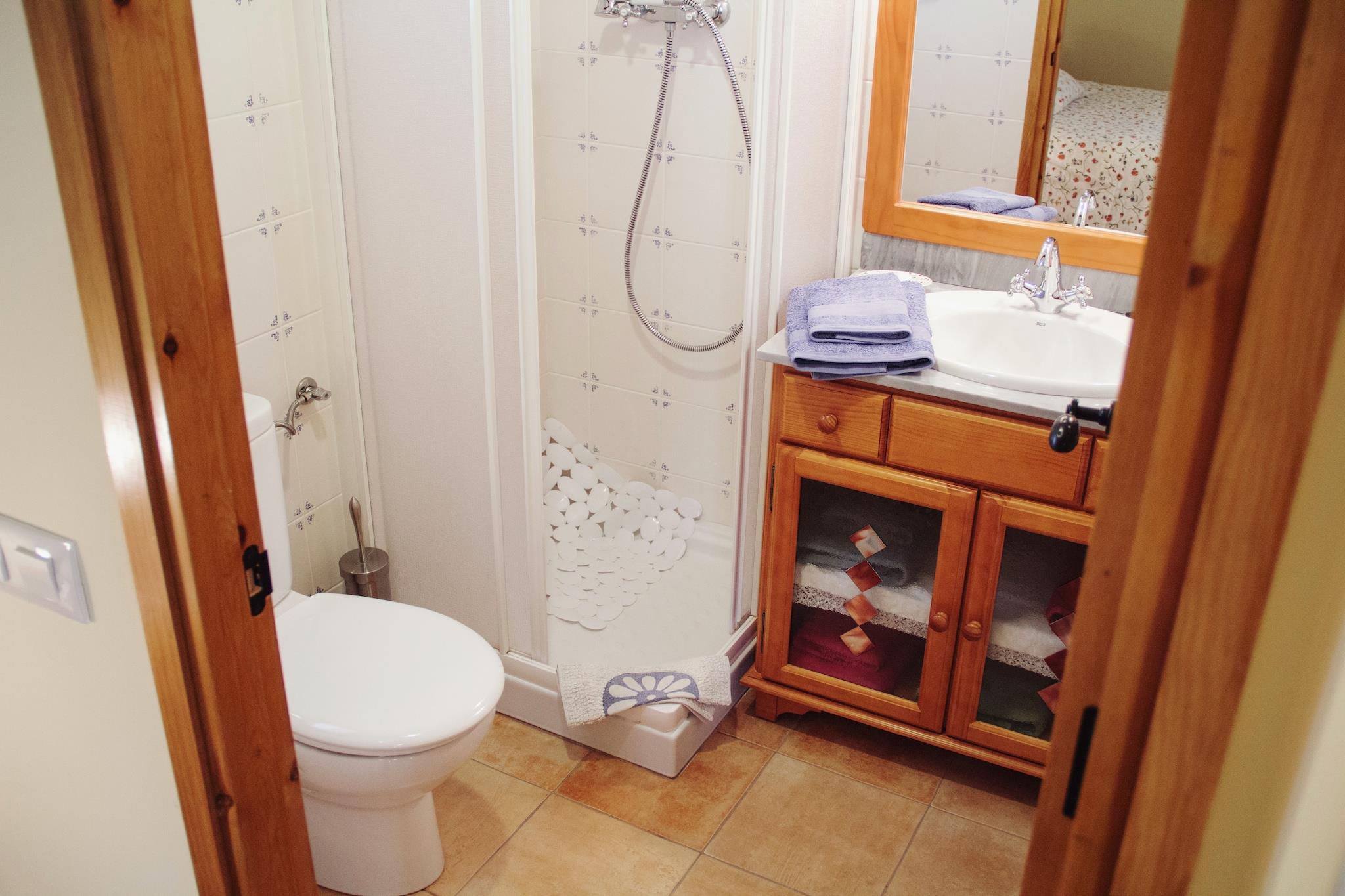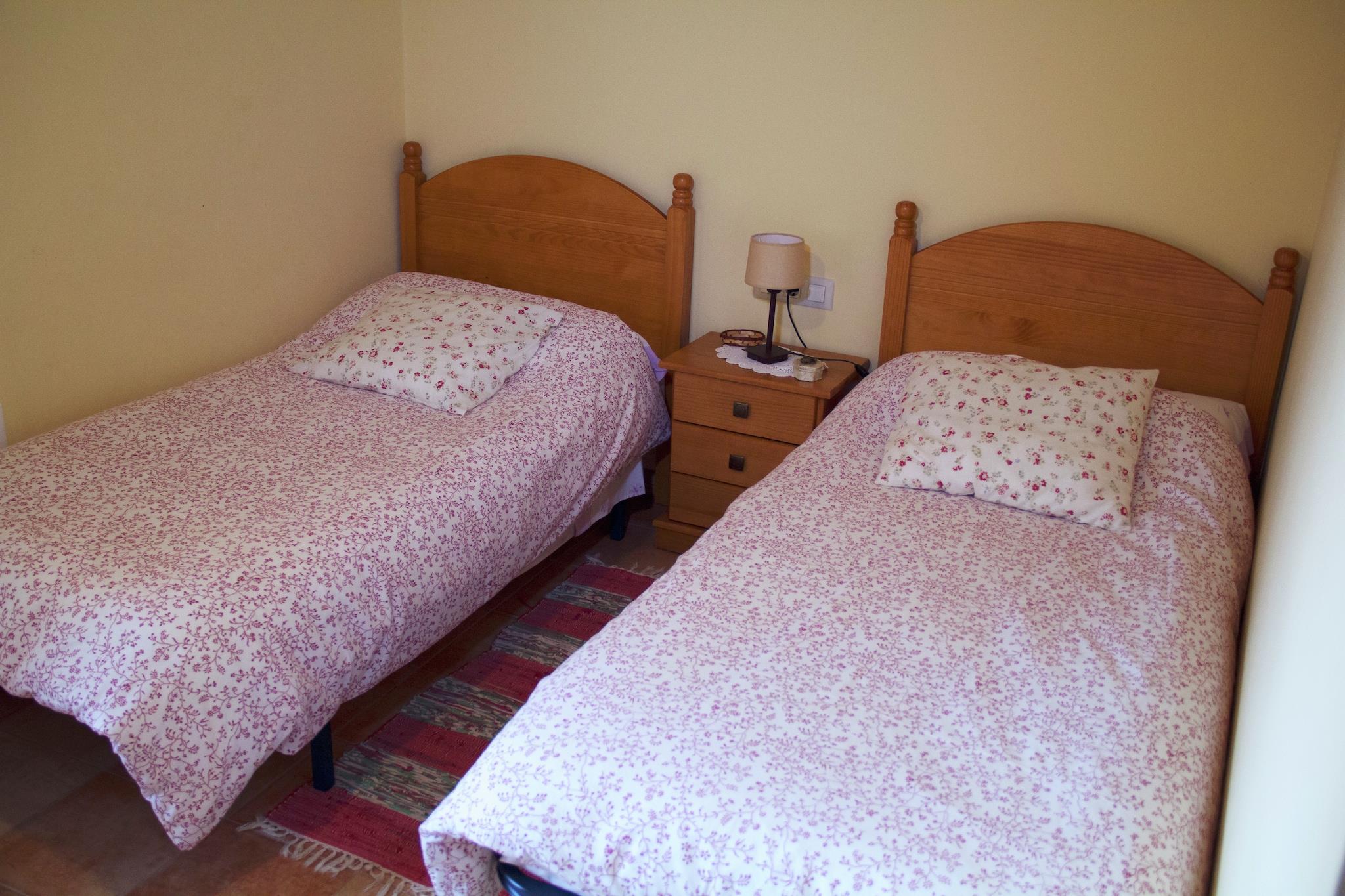 På 1. etage: (åbent køkken(komfur(glaskeramisk), ovn, mikrobølgeovn, opvaskemaskine ), stue / spisestue(Fjernsyn, pejs), Soveværelse med badeværelse(halvandenmandsseng, bruser, håndvask, toilet), Soveværelse med badeværelse(2x enkeltseng, badekar, håndvask, toilet), toilet(håndvask, toilet)) enkeltfoldeseng, vaskemaskine(deles med andre gæster), varme(central), baggård(deles med andre gæster), havemøbler, swimmingpool(deles med andre gæster, 6 x 5 m.), bordtennisbord, barneseng(på anmodning), barnestol(på anmodning)
